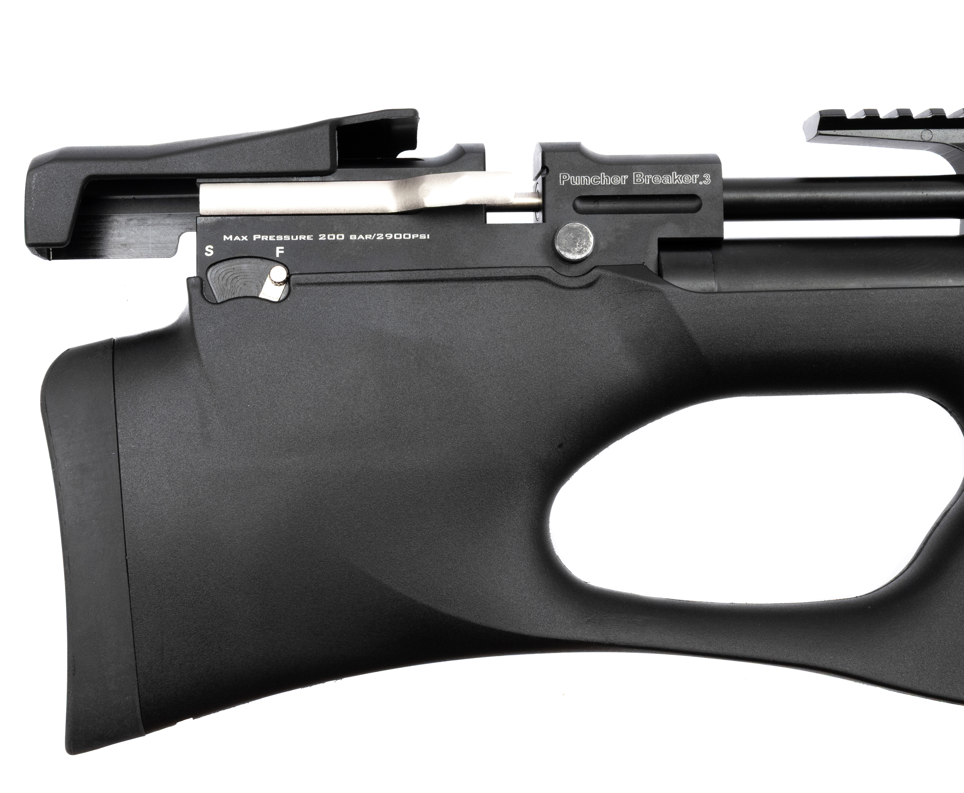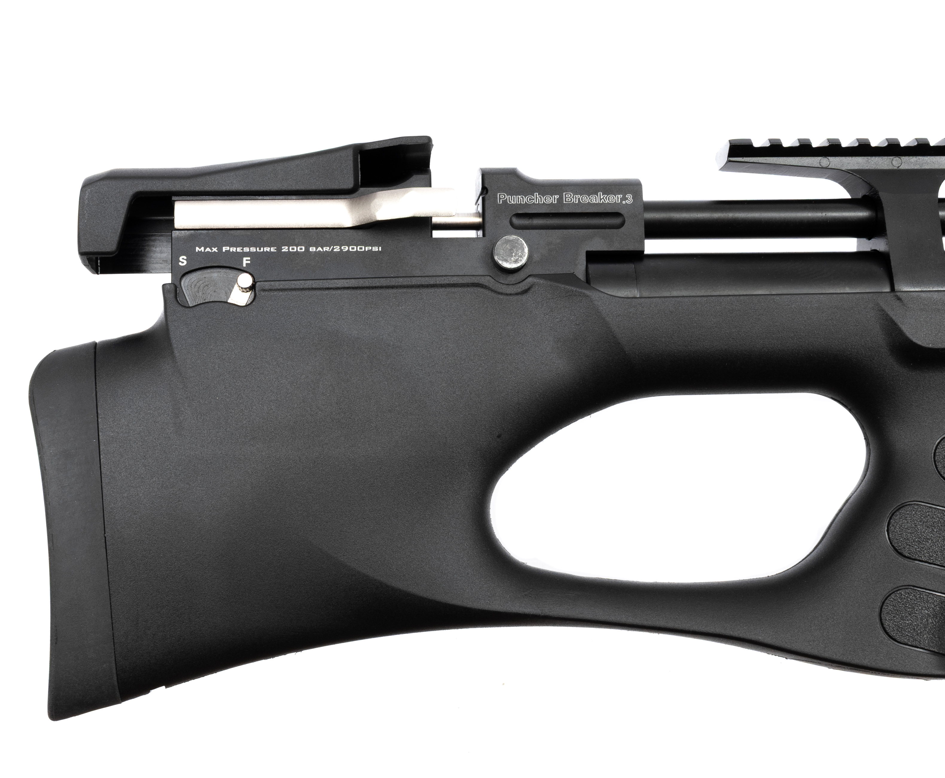Корпус и механизмы Kral Puncher Breaker 3S 6 35 мм выполнены из оружейной стали, что значительно повышает устойчивость изделия к физическим нагрузкам при активной эксплуатации. При этом вес винтовки составляет 3.46 килограмма, добиться чего изготовителю удалось за счет обращение к легкому полимерному составу, выступающему материалом для изготовления ложа пневматики.