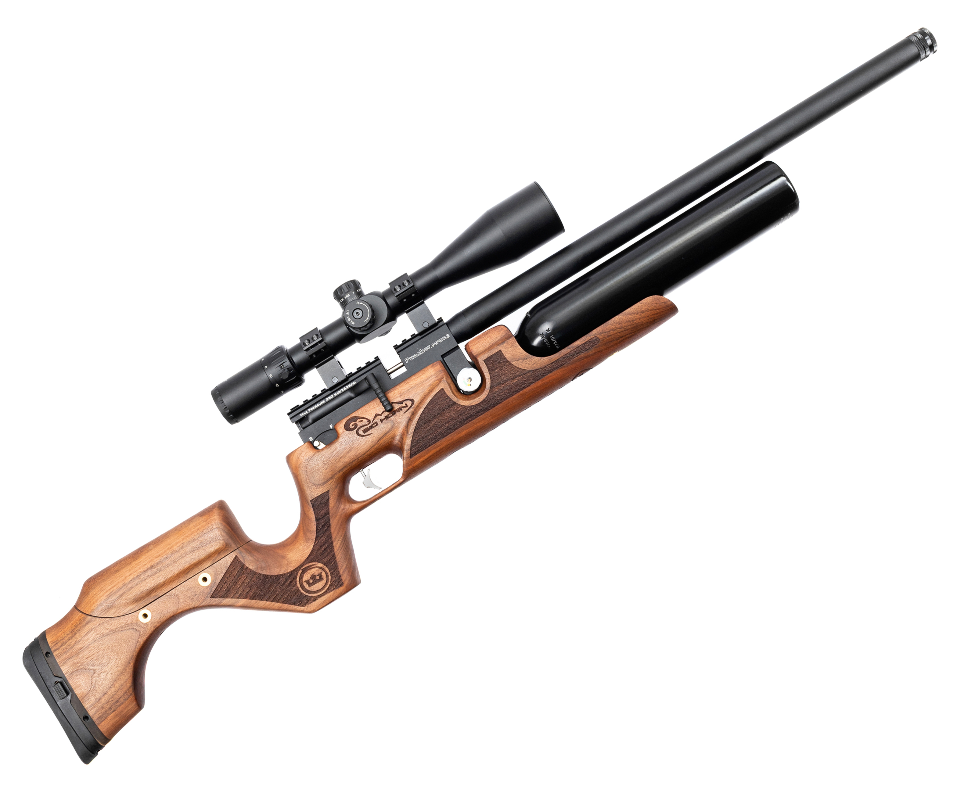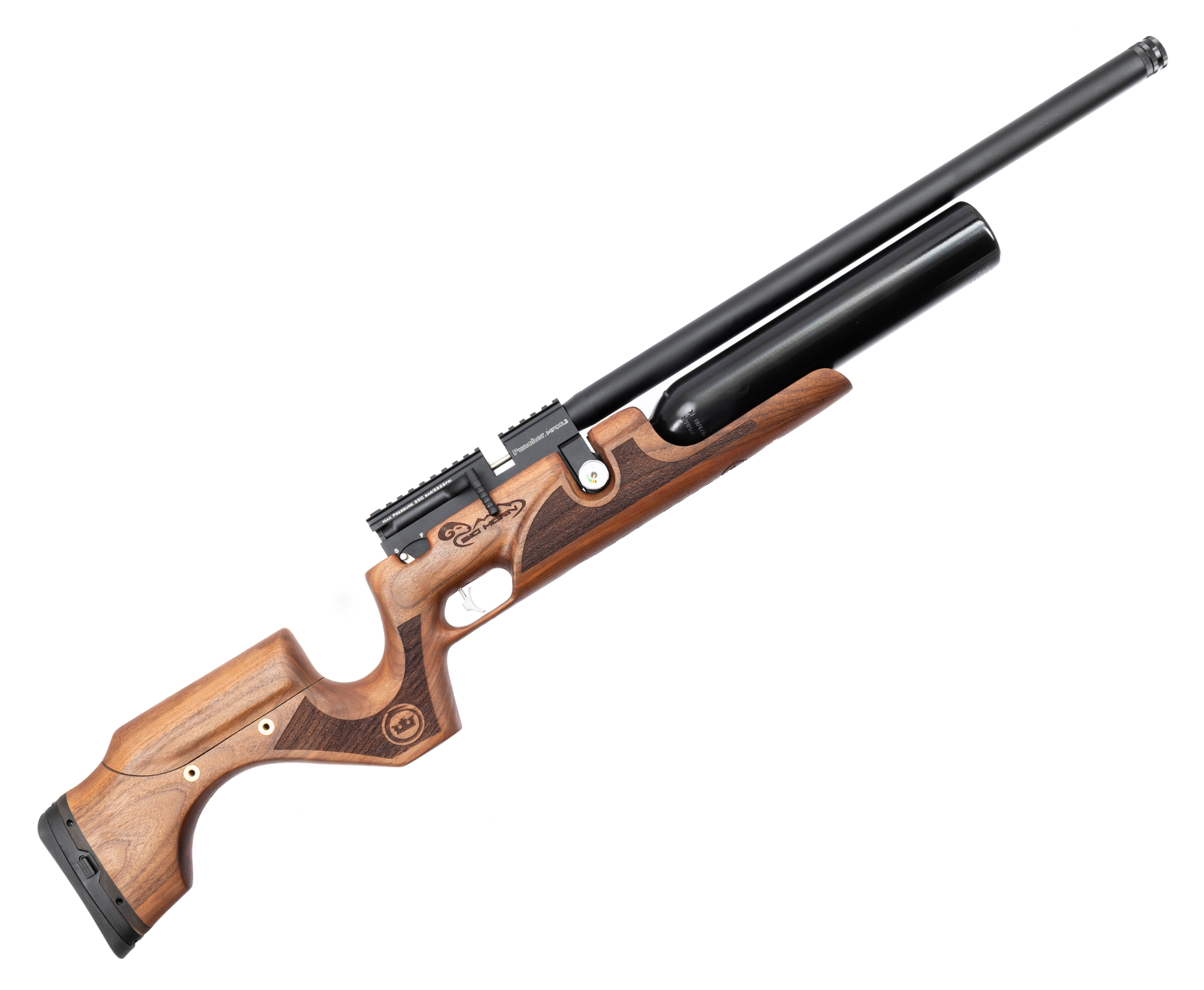 В качестве боеприпаса обозреваемая PCP винтовка применяет свинцовые снаряды в формате «воланчика» калибра 5.5 миллиметров. В комплекте с изделием производитель поставляет барабанчиковый магазин, вмещающий до 12 пуль, стрельба которыми ведется в одиночном режиме с предварительным взводом рычага затвора на левой стороне ствольной коробки.