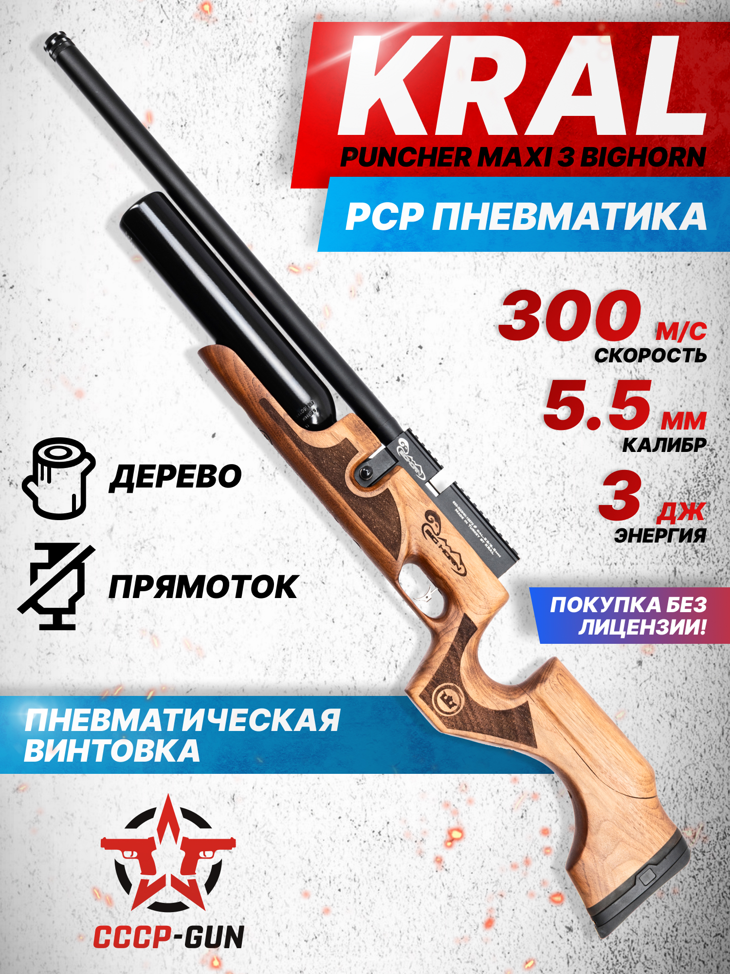 Классифицируется пневматика Крал Бигхорн 5.5 мм как конструктивно схожее с оружием изделие, о чем свидетельствует сертификационный показатель дульной энергии, не превышающий отметки в три Джоуля. Усиленные модели описываемой винтовки, а также образцы, предназначенные для зарубежного рынка, способны демонстрировать скорость полета снаряда при выстреле больше трехсот метров в секунду.