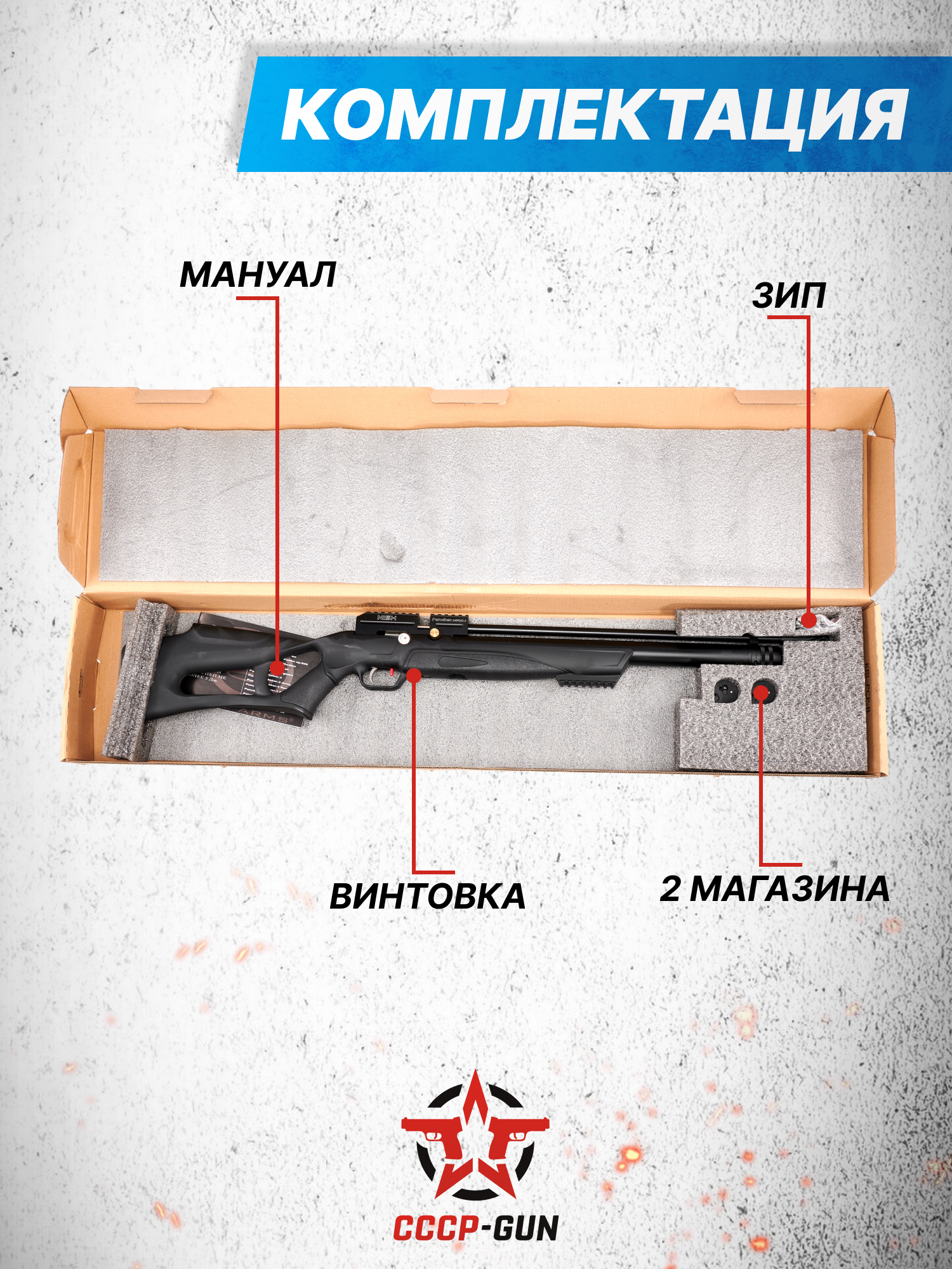 Комплект поставки Винтовка, упаковка, заправочный штуцер, магазин 2 шт, краткая документация, копия сертификата (по запросу покупателя)