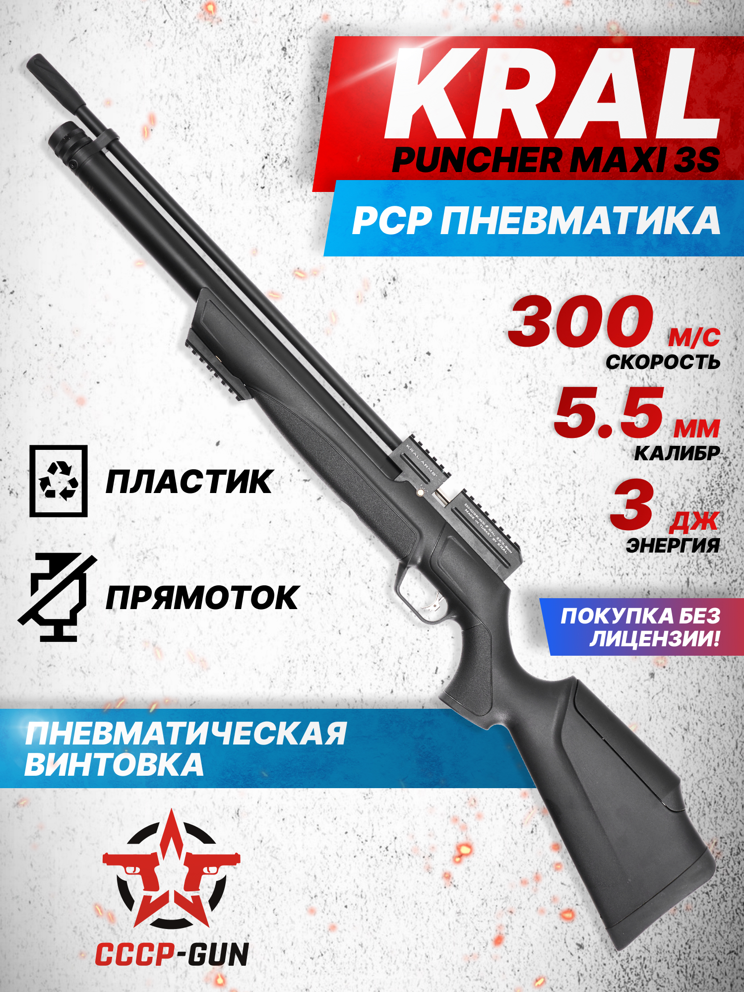 Kral Puncher Maxi 3S - это винтовка, которая функционирует по принципу предварительной накачки воздуха. Перед стрельбой, в резервуар рассчитанный на 280 кубический сантиметров, закачивается газ, с помощью насоса или компрессора. Ресивер способен выдерживать высокое давление, но производитель не советует превышать метку в 200 бар. Для контроля этого значения спроектирован манометр, который поможет сохранить ресурс оружия на долгий период.