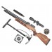 Основой рассматриваемого комплекта товаров стала пневматическая PCP винтовка Крал Макси 3 турецкого производства, принцип работы которой основан на высвобождении сжатой под давлением воздушной массы, содержащейся в специализированном цилиндрическом резервуаре под стволом. Стандартный трубчатый баллон способен вместить объем до 280 кубических сантиметров газа, для заправки которого в наборе Хантер предусмотрен ручной насос.