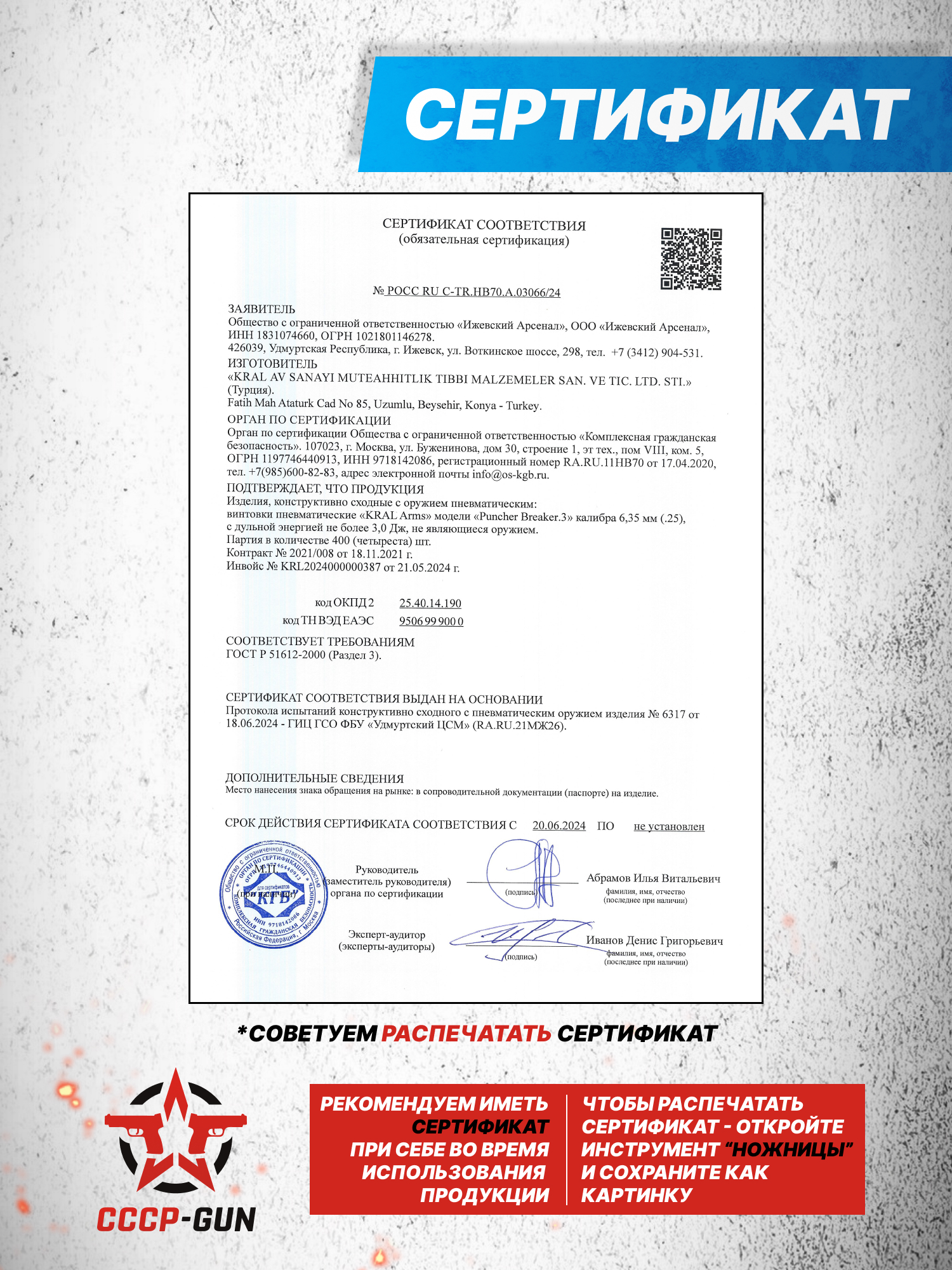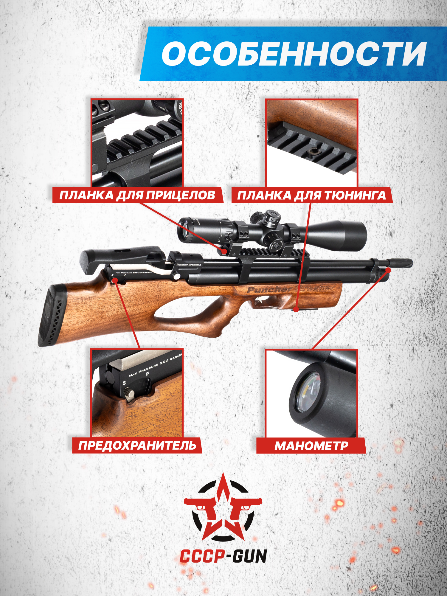 Внимание! Данная модель поставляется в разрешенной мощности для свободного приобретения на территории Российской Федерации. При этом в модели имеется возможность увеличения мощности путем замены части деталей или настройки конструкции, однако не стоит забывать о Федеральном законе «Об оружии» № 150 - ФЗ. В случае необходимости, опираясь на данный закон и руководствуясь им, возможно, потребуется получить разрешение от ЛЛР ГУ МВД России после вмешательства в конструкцию.