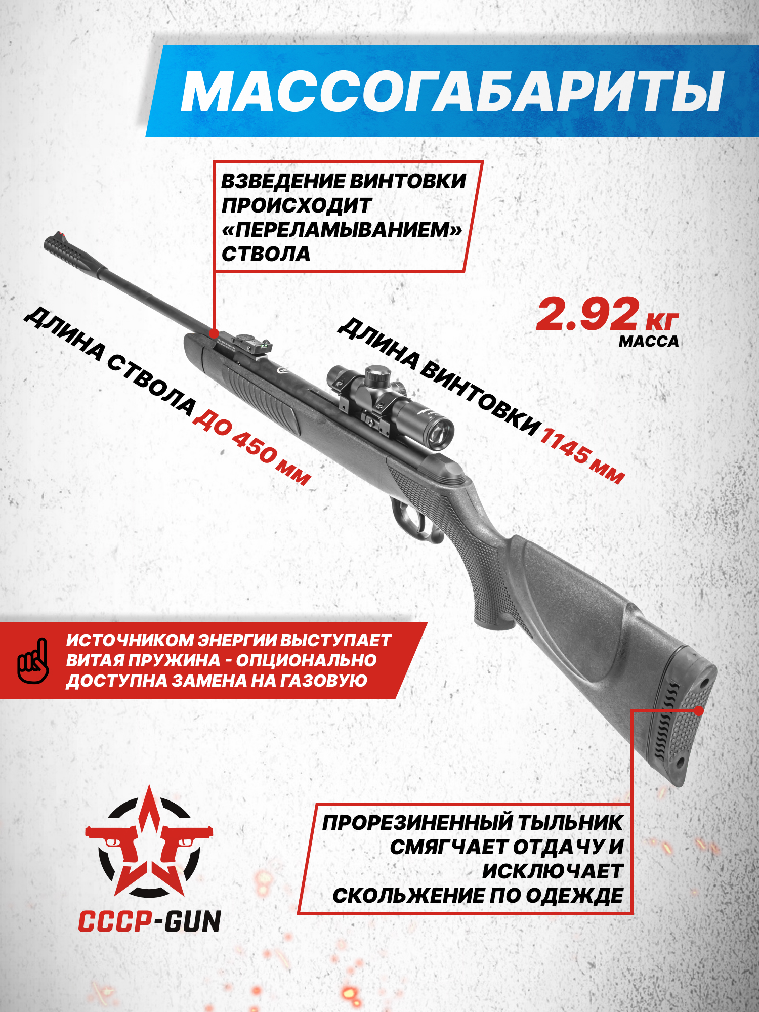 Важно подчеркнуть, что начальная скорость полета свинцовых снарядов на фоне заложенного потенциала способна доходить до 300 метров в секунду. Однако винтовки этой линейки поставляются в строгом соответствии с разрешенным пределом дульной энергии до 3 Дж. Упомянутая особенность позволяет приобретать изделия торговой марки гражданам, достигшим восемнадцатилетнего возраста, без обязательной процедуры получения специального разрешения.