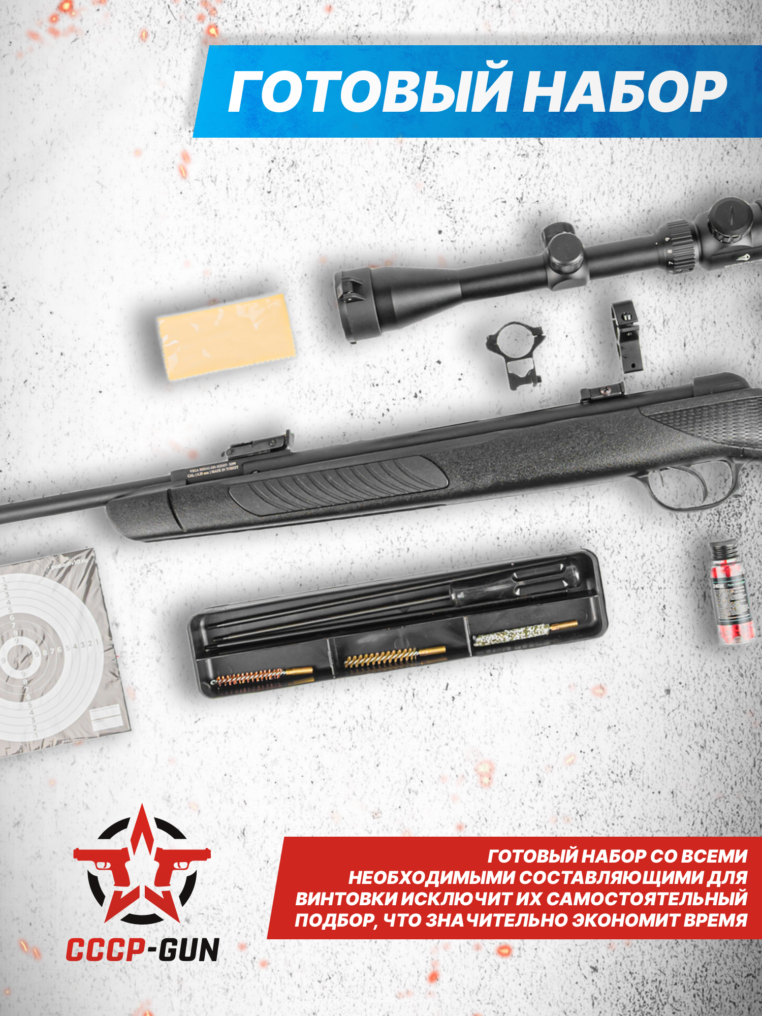 Рассматриваемая винтовка входит в подборку Хантер номер 3 - кроме самой пневматики присутствуют принадлежности, которые помогут привести систему в готовность к эксплуатации и оперативно отправиться на практику. Комплектация включает оптику с кронштейнами для установки на направляющую типа «Ластохвост», комплект для технического ухода, мишени и 50 единиц пуль от Zark. Заряды изготавливаются из полимерного материала, в связи с чем их рекомендуется использовать только в экземплярах с дульной энергией до 3 Дж.