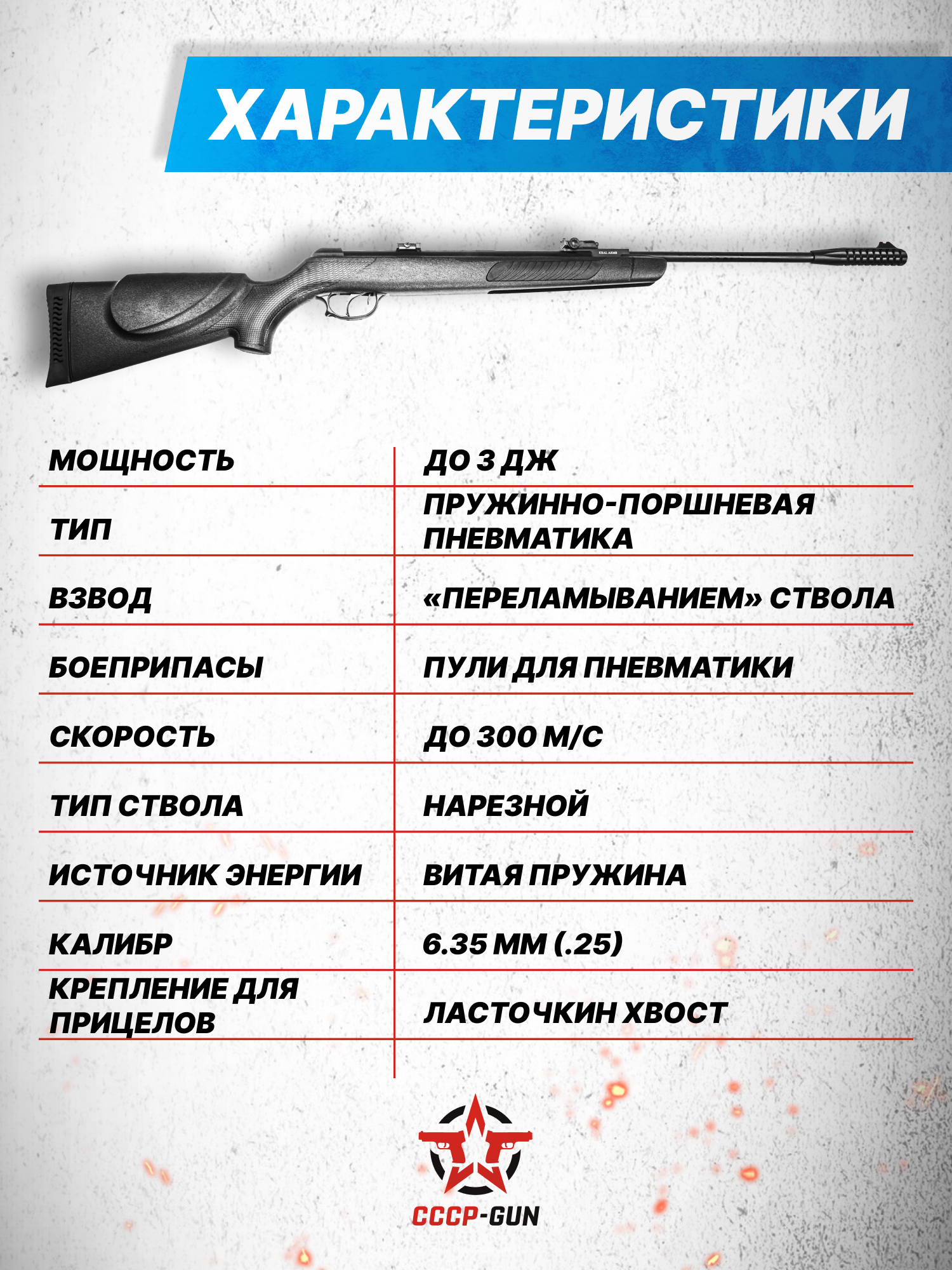 Пневматика Kral Vega V-01 6.35 мм способна разогнать боеприпасы до 300 м в сек. При этом важно выделить, что конкретный вариант изготавливается с уже ограниченной мощностью выстрела до 3 Джоулей. Такое решение сформировано на фоне законодательных норм России и, как результат, предоставляет право свободного приобретения образца без надобности оформления специальных документов.