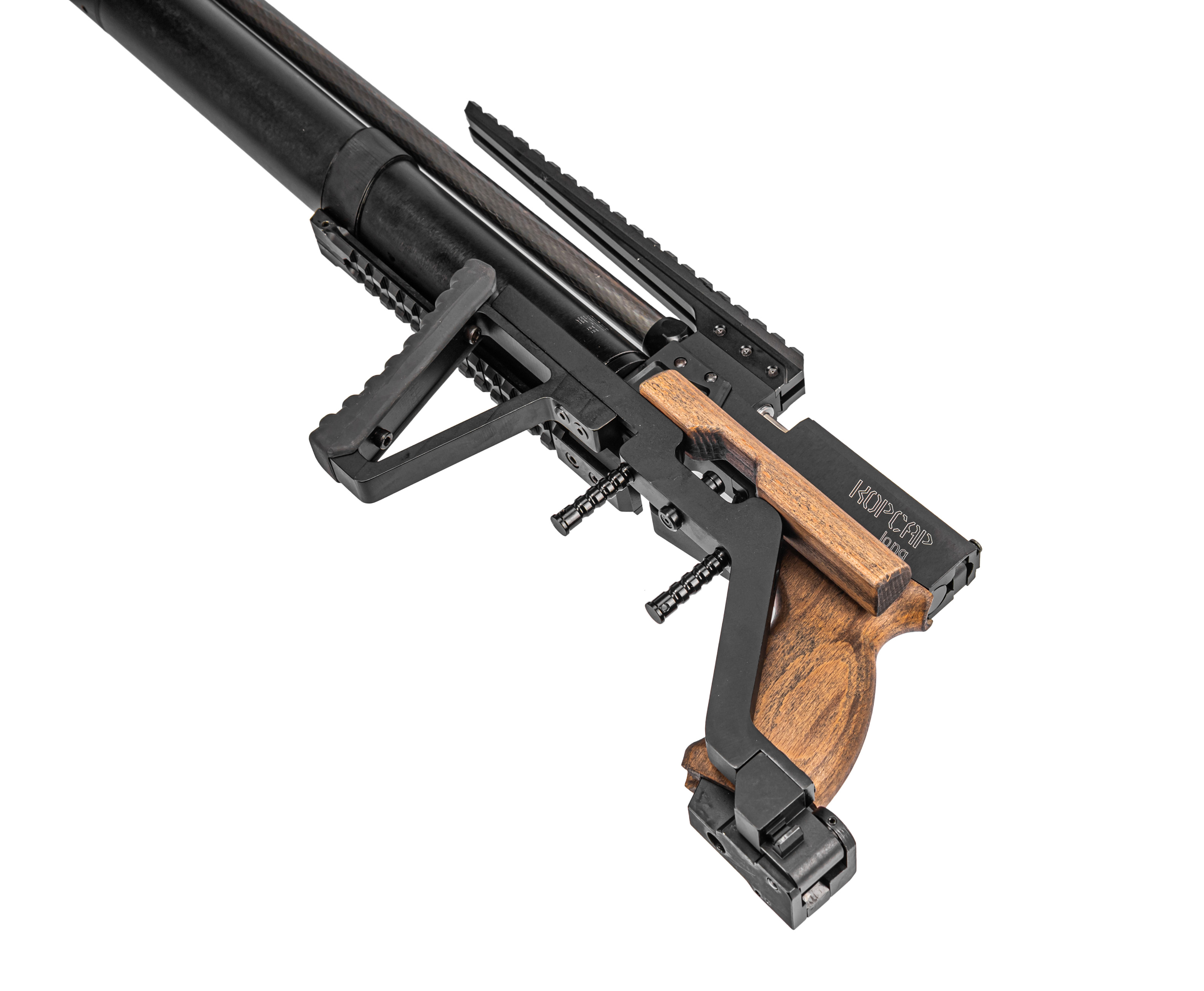 В основе конструкции ствольной группы пневматической винтовки стоит бланк с нарезным каналом длиной 42 сантиметра, применяемый для стрельбы воланчиковыми пулями калибра 5.5 миллиметров из свинца. Питание указанным типом боеприпасов осуществляется при помощи комплектного барабанного магазина с автоматической прокруткой при взводе, вмещающего десять снарядов. Требуемый уровень безопасности при работе с Корсаром обеспечивается классическим флажковым двухпозиционным предохранителем.