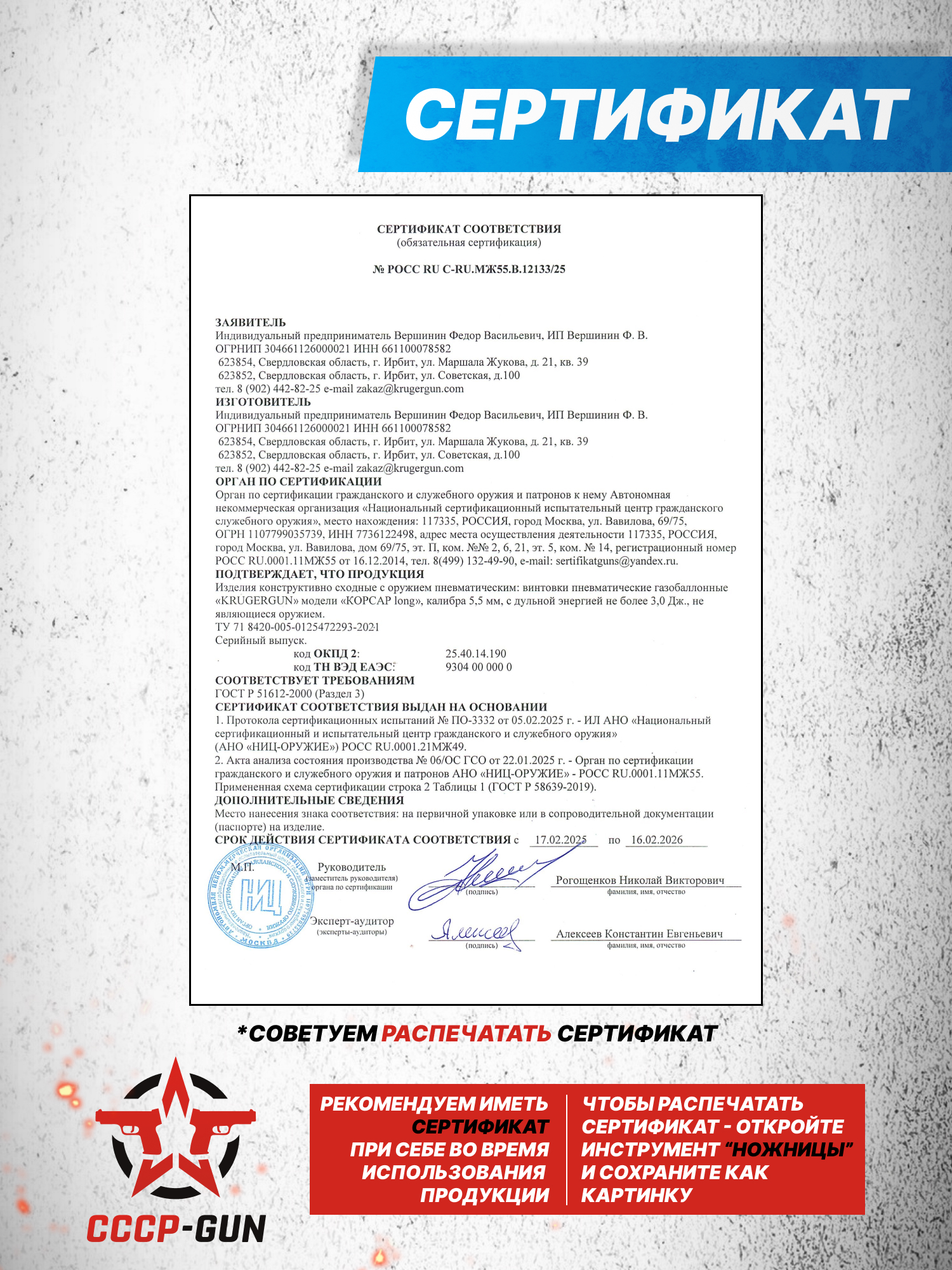 Современное пневматическое оружие, вопреки некоторым стереотипам, часто используется в профессиональных спортивных дисциплинах и даже охоте, а не только для развлекательных задач. К числу производителей подобной продукции относится российская фирма КрюгерГан, базирующаяся в городе Ирбит. Расширяя ассортимент своих товаров, компания представила новую мощную «воздушку» в категории PCP винтовок.