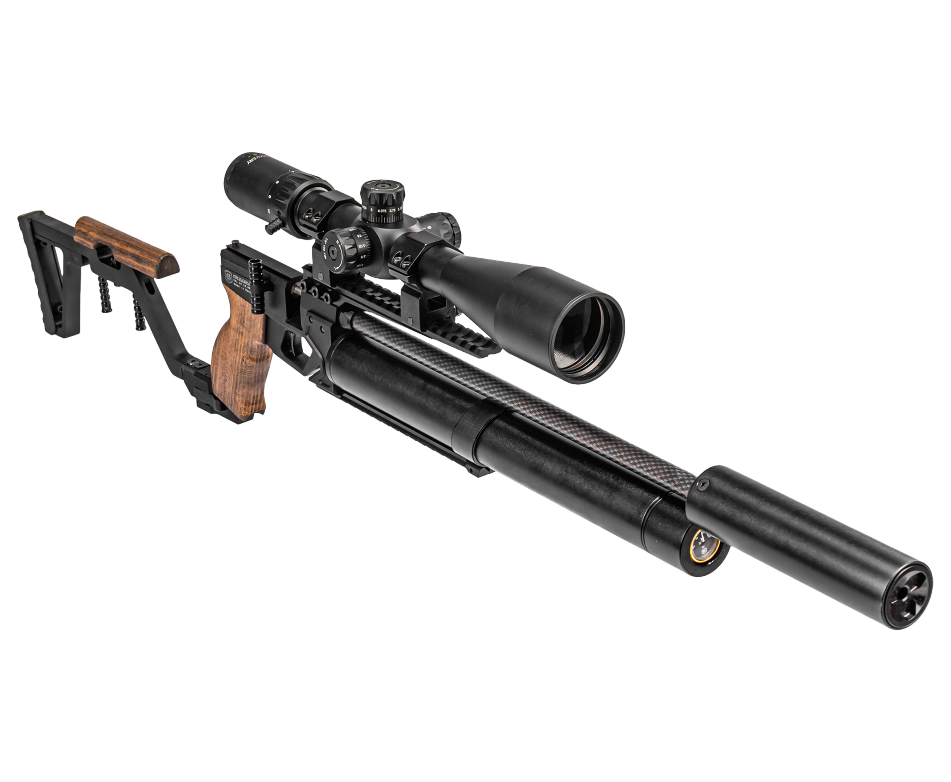 В модельный ряд продукции бренда входит обозреваемая модель винтовки, которая классифицируется как пневматика с системой предварительной закачки воздуха посредством специализированных ручных или электрических насосных станций. В штатном варианте исполнения рассматриваемый образец пневматики оснащается трубчатым ресивером высокого давления, который расположен под стволом и способен вмещать до 277 кубических сантиметров газа, нагнетая при этом давление в 250 Бар.