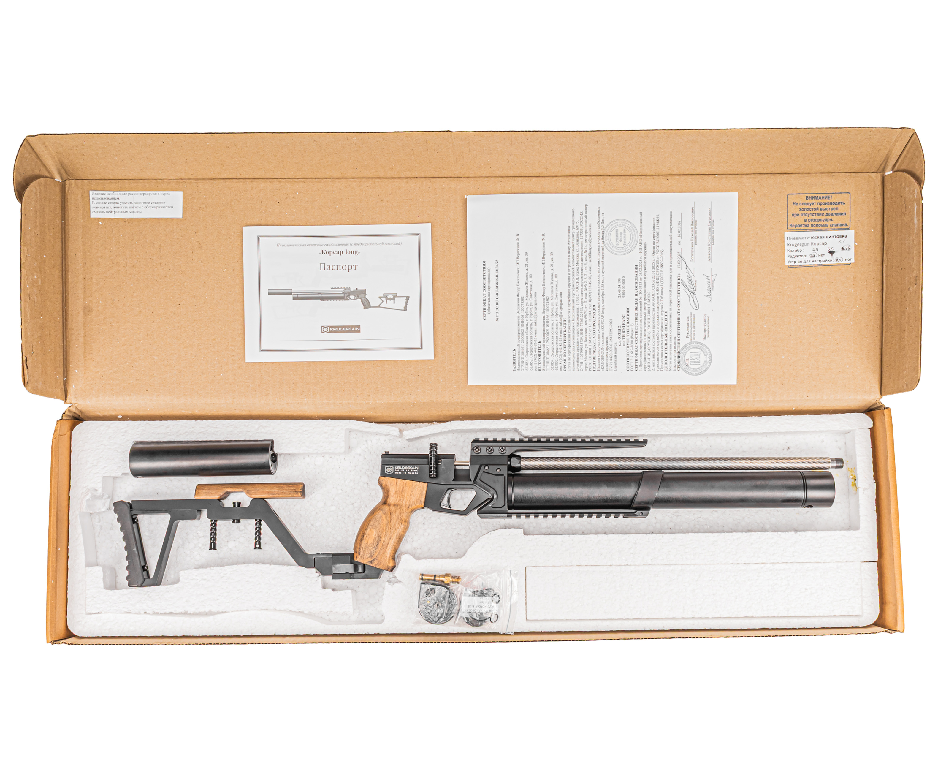 Одной из самых популярных модельных линеек фирмы являются винтовки Корсар Крюгер Long, которые классифицируются как пневматика, работающая по принципу предварительной закачки сжатой газообразной массы в интегрированный баллон. Стандартный ресивер, применяемый производителем в представленном исполнении, рассчитан на заправку до 203 кубических сантиметров воздуха, который при этом нагнетает внутри цилиндра давление в 300 Атмосфер. Производитель акцентирует внимание стрелков на то, что отмеченный показатель рекомендуется не превышать, чтобы сохранить работоспособность и мощностные характеристики изделия даже после нескольких лет постоянной эксплуатации.
