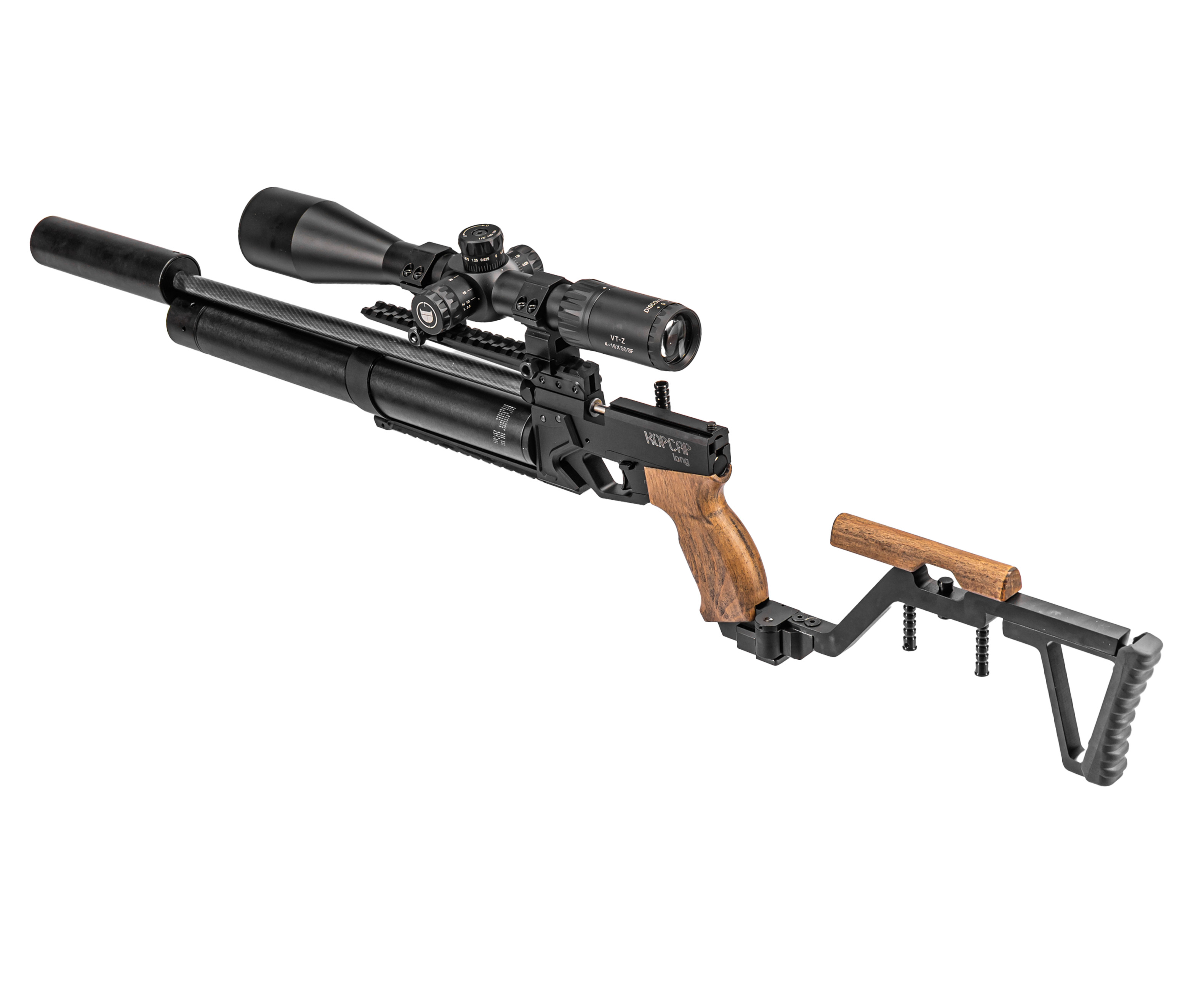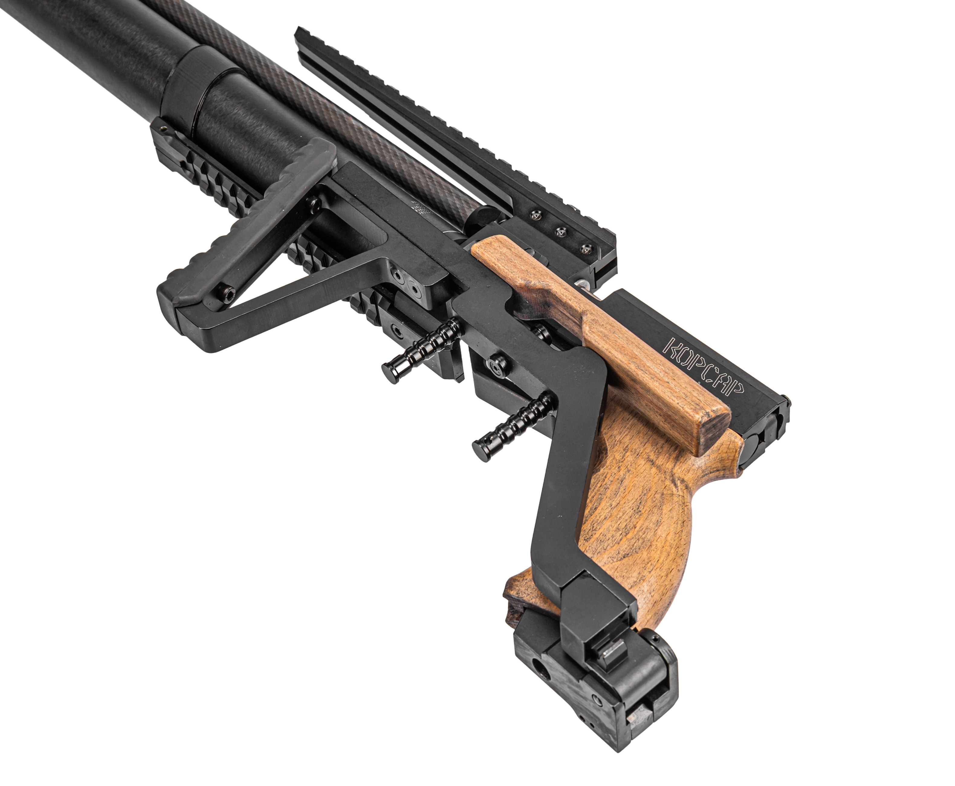 Нарезной .22 Cal ствол от Alfa Precision позволяет стрелку применять свинцовые воланчиковые пули калибра 6.35 миллиметров, для питания которыми в комплекте с изделием поставляется барабанный магазин на 11 мест. Для произведения выстрела требуется осуществлять взвод бокового рычага на ствольной коробке пневматики.