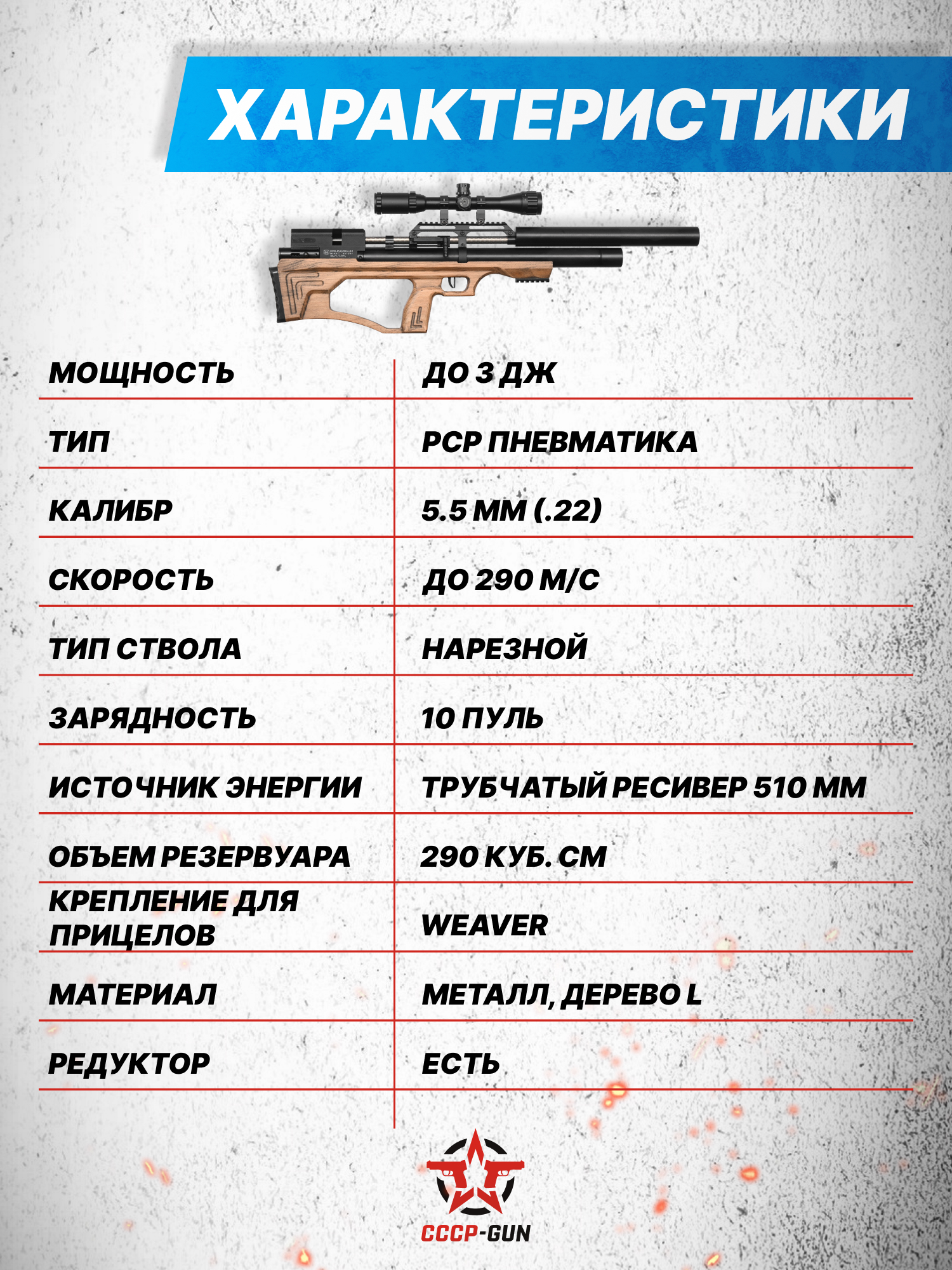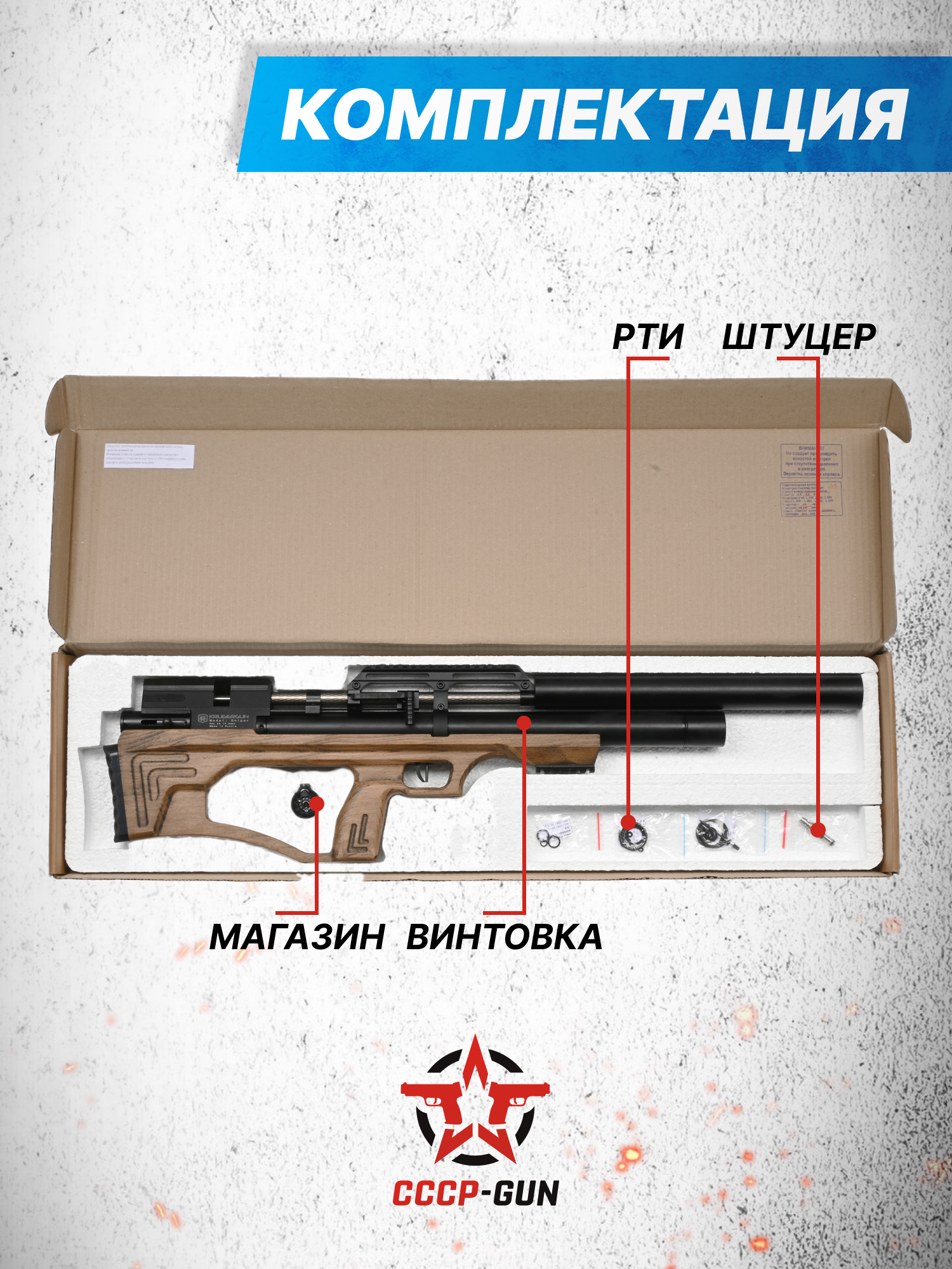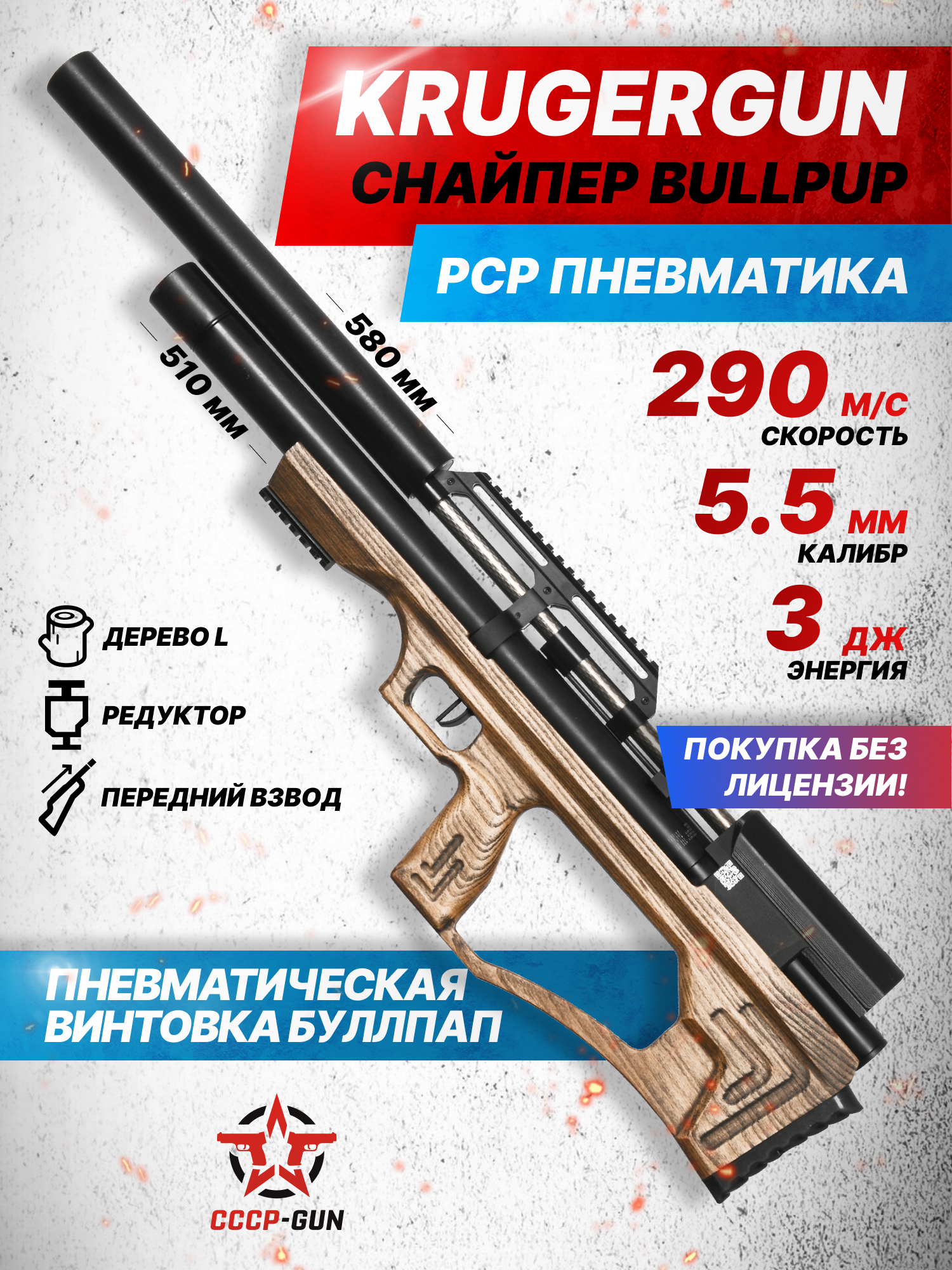 Пневматическая винтовка KrugerGun Снайпер BullPup 5.5 мм (прямоток, дерево, 580 мм, резервуар 510)