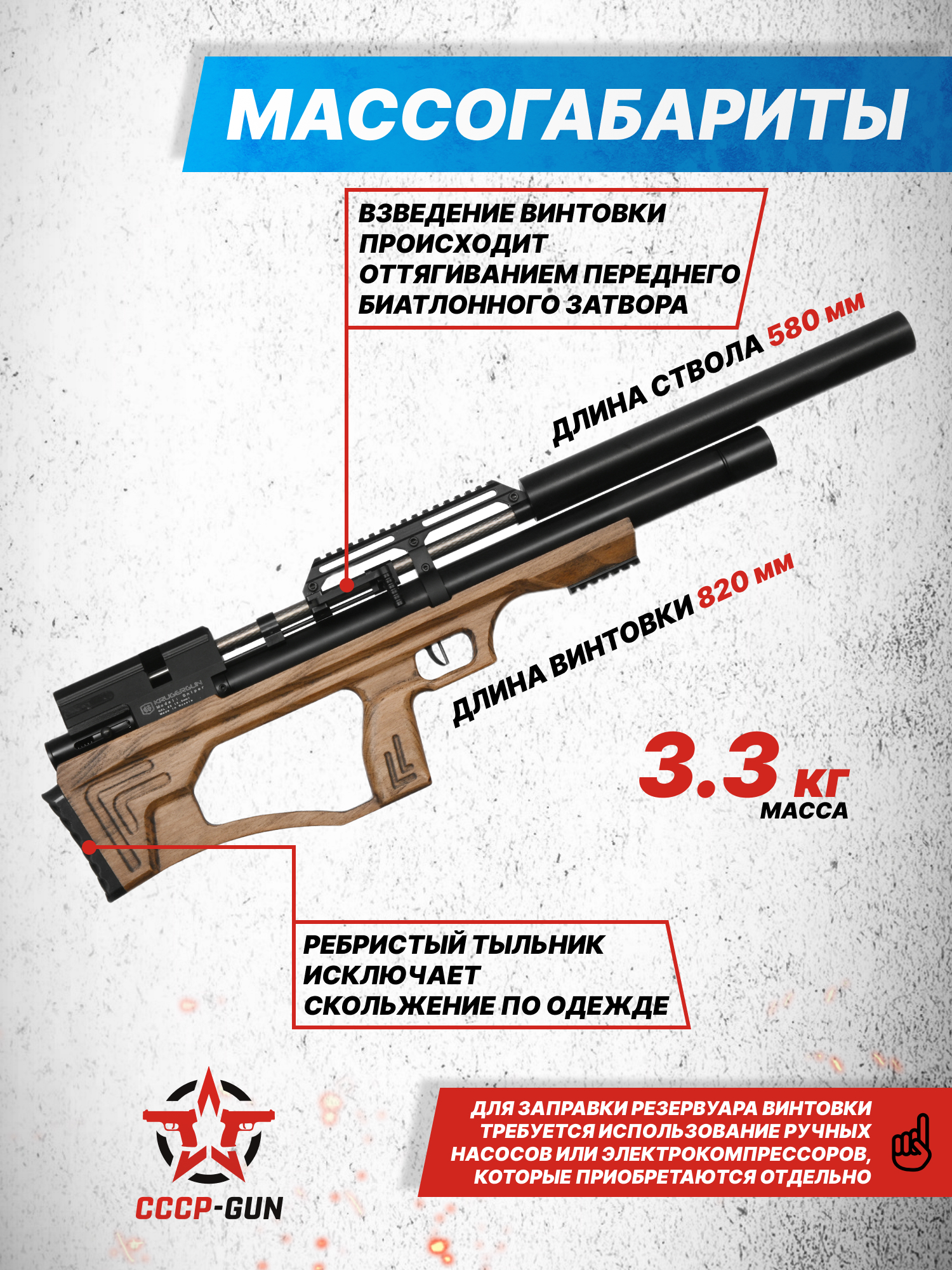 Пневматическая винтовка KrugerGun Снайпер BullPup 5.5 мм (580 мм, 510 резервуар, передний взвод, пластик, редуктор)