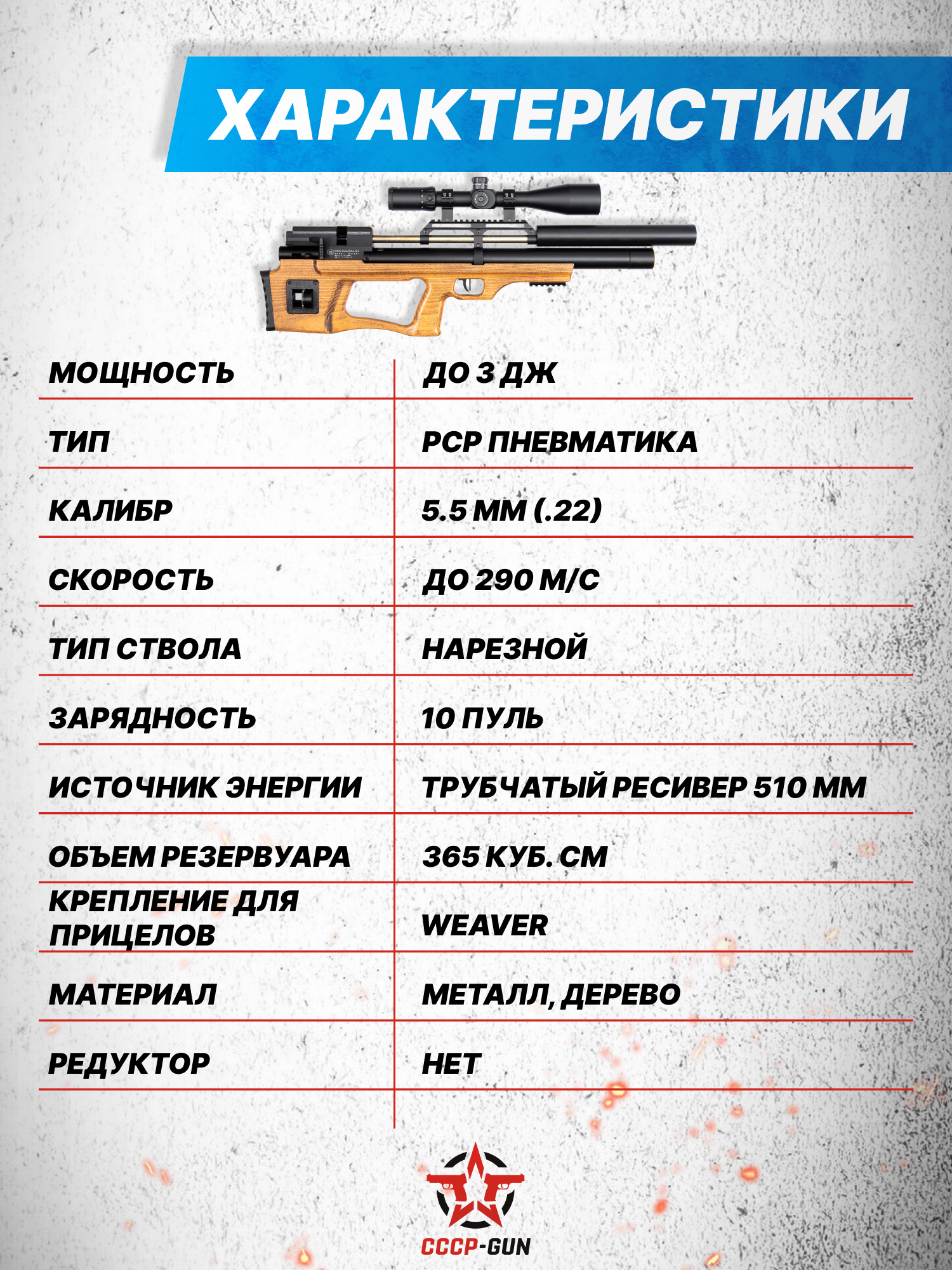 Потенциал тактико-технических характеристик позволяет стрелку поражать цели не только на короткой дистанции, но и на большом отдалении, о чем свидетельствует показатель скорости полета пули при выстреле, достигающий 290 метров в секунду. Важно акцентировать внимание на том, что на российском рынке изделие представлено в исполнении с ограниченным значением дульной энергии, которое не превышает трех Джоулей. Указанная особенность дает классифицировать винтовку как КСОИ и приобретать ее свободно, без оформления специализированных разрешительных лицензий.
