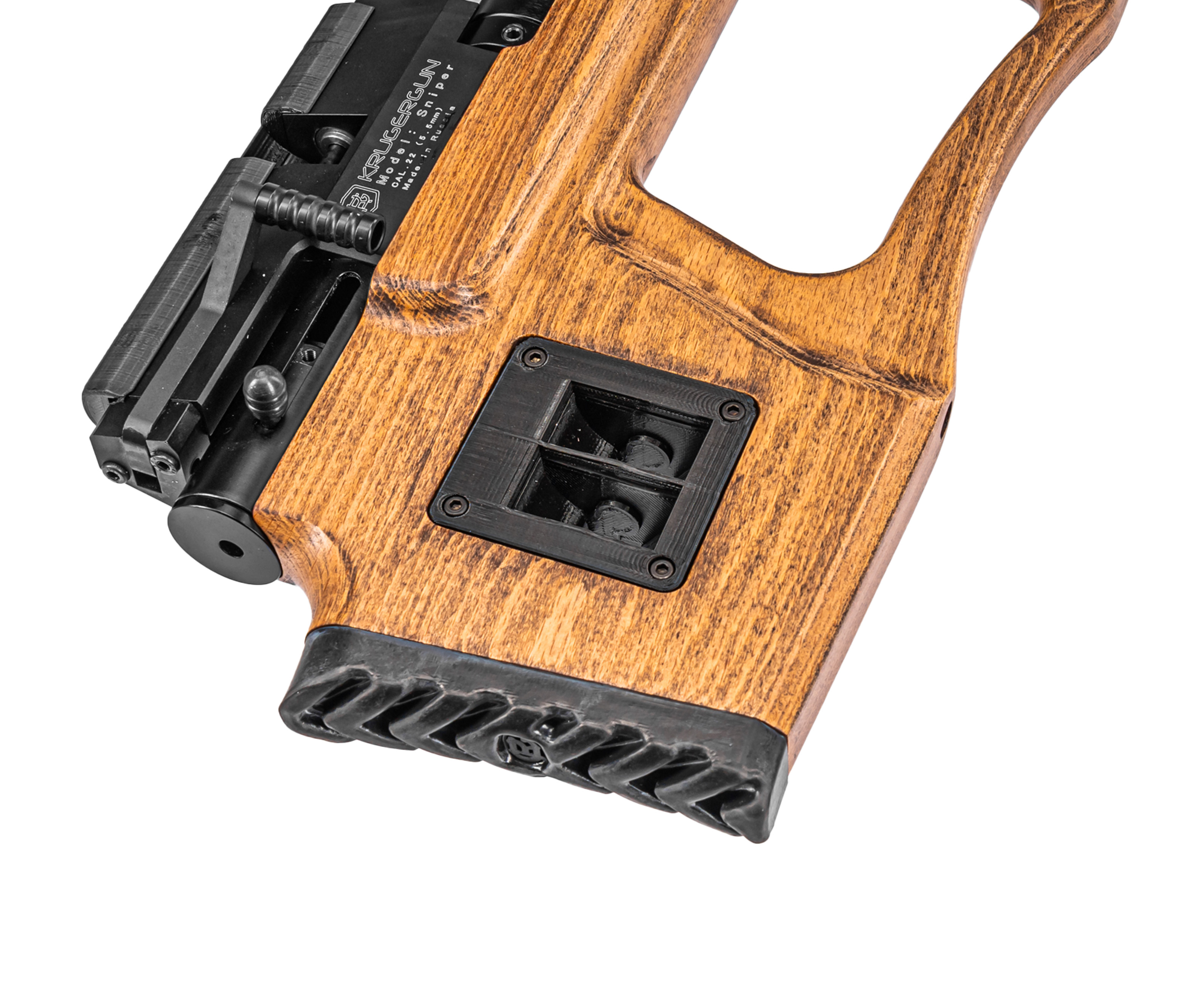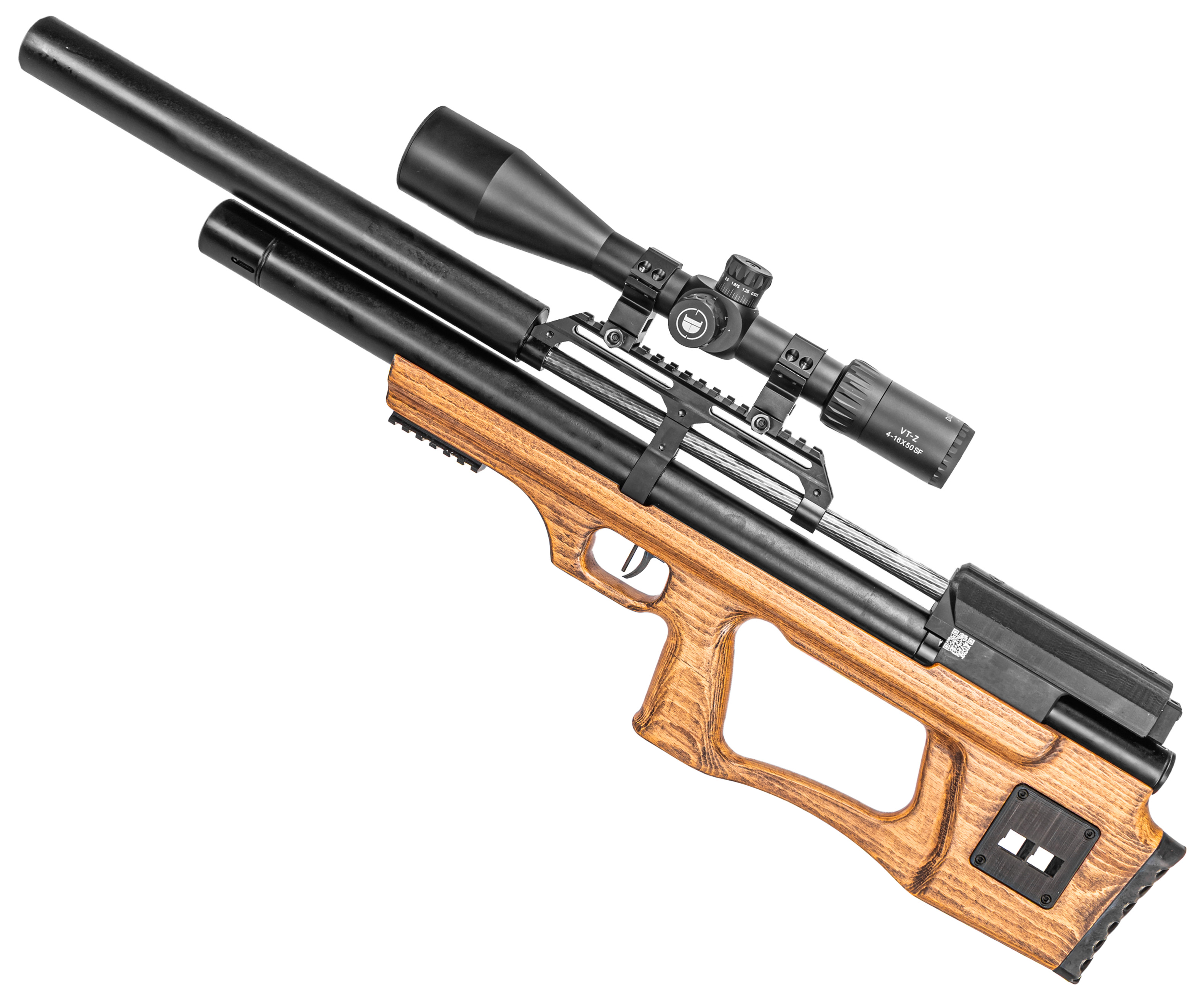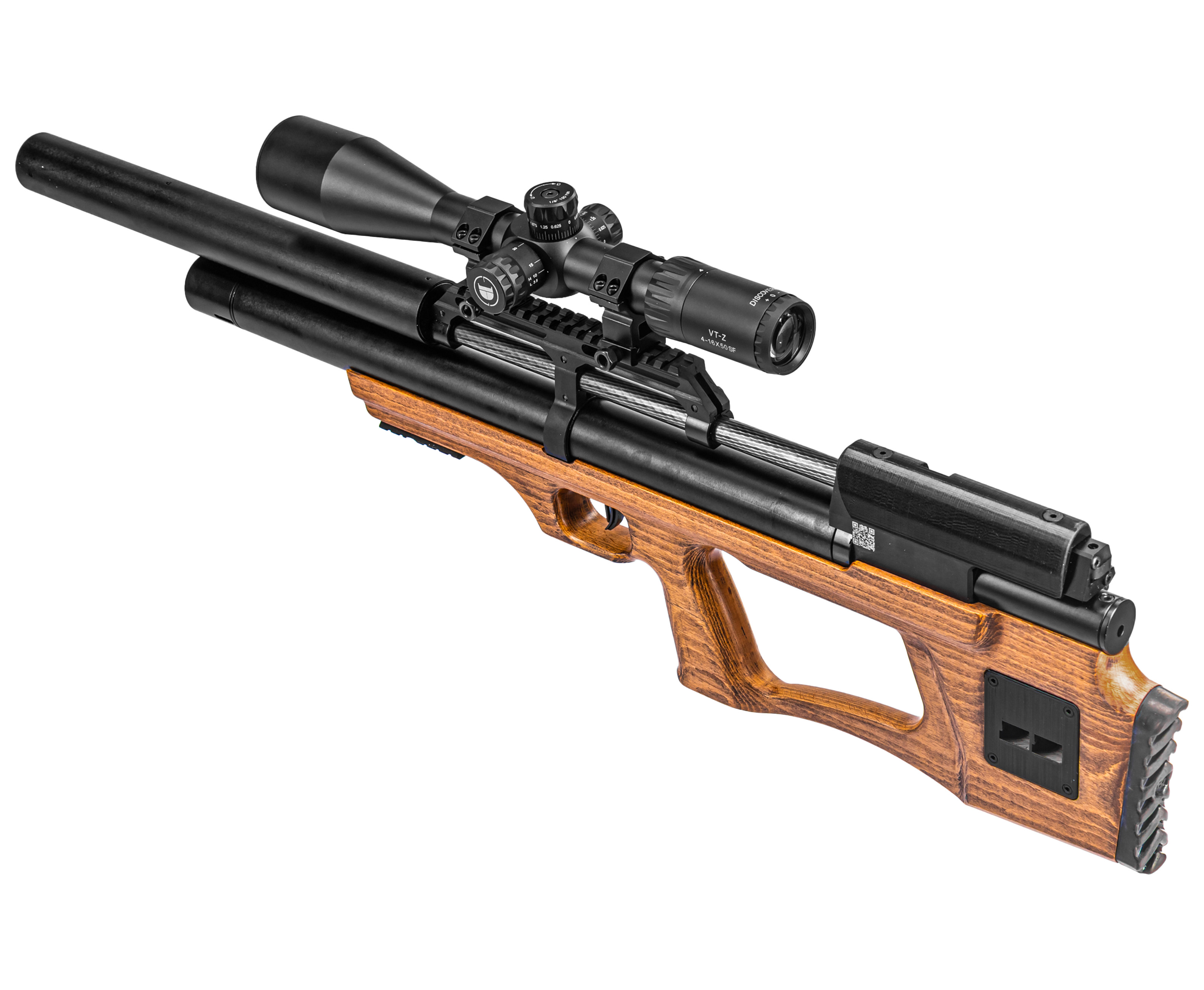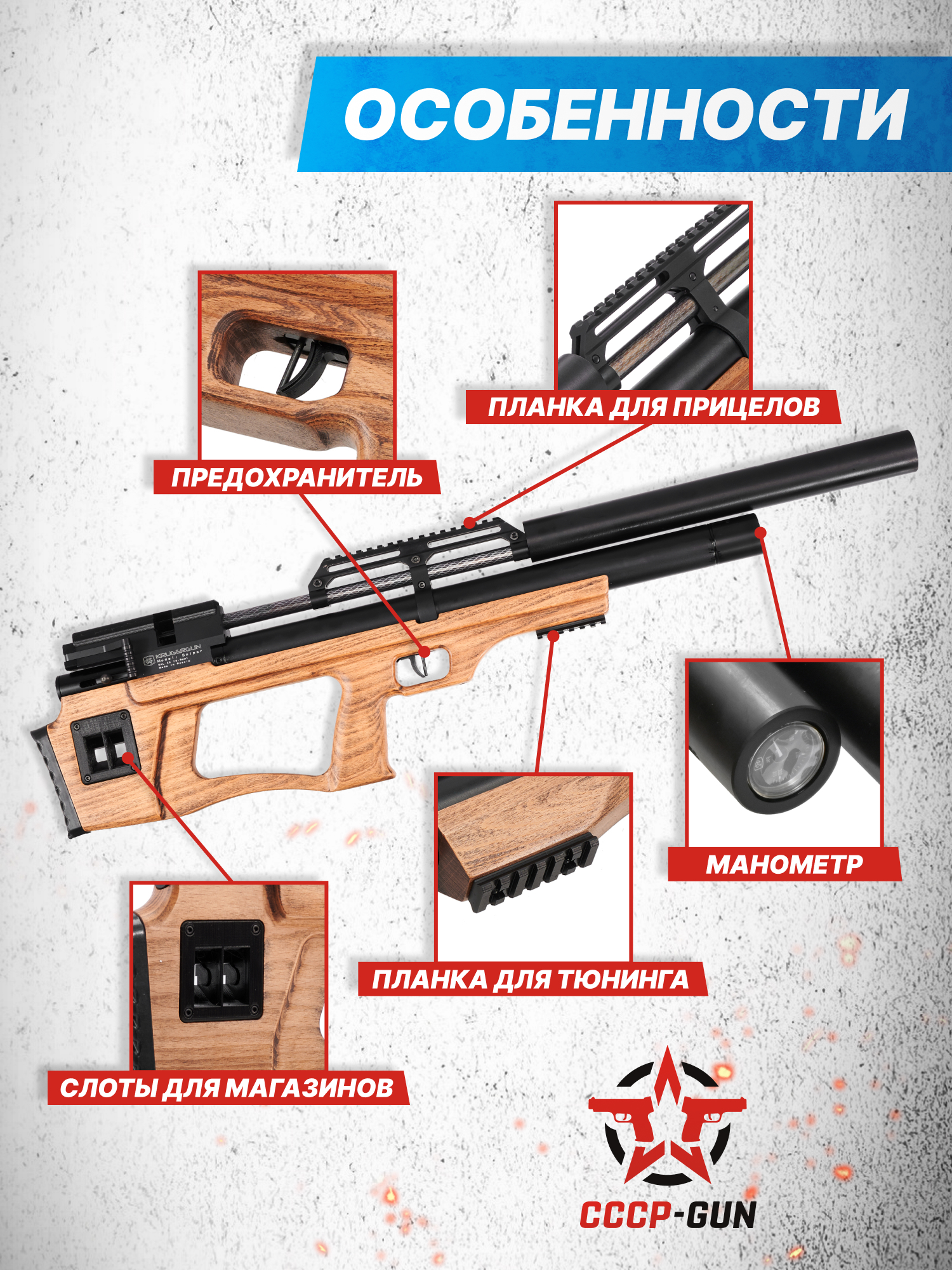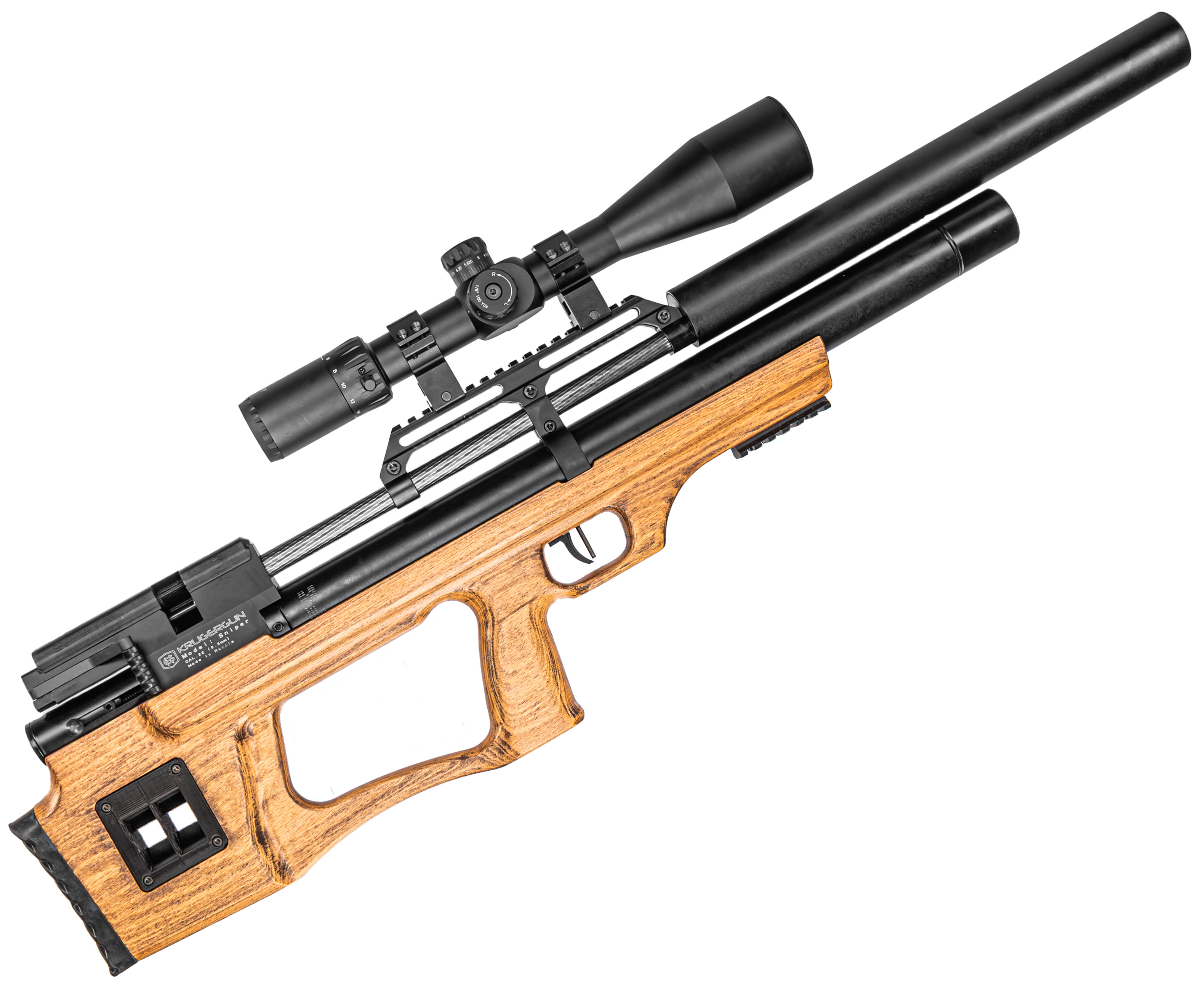 Активное распространение пневматического оружия на российском гражданском рынке объясняется не только возможностью его свободного приобретения, но и высокими показателями мощности современных моделей пистолетов и винтовок, позволяющими работать с целями даже на больших дистанциях. Подобные изделия активно применяются как в развлекательной стрельбе, так и в профессиональных спортивных дисциплинах, а также охоте. Выпуском таких образцов продукции занимается фирма KrugerGun, которая представила рассматриваемую PCP БуллПап «воздушку».