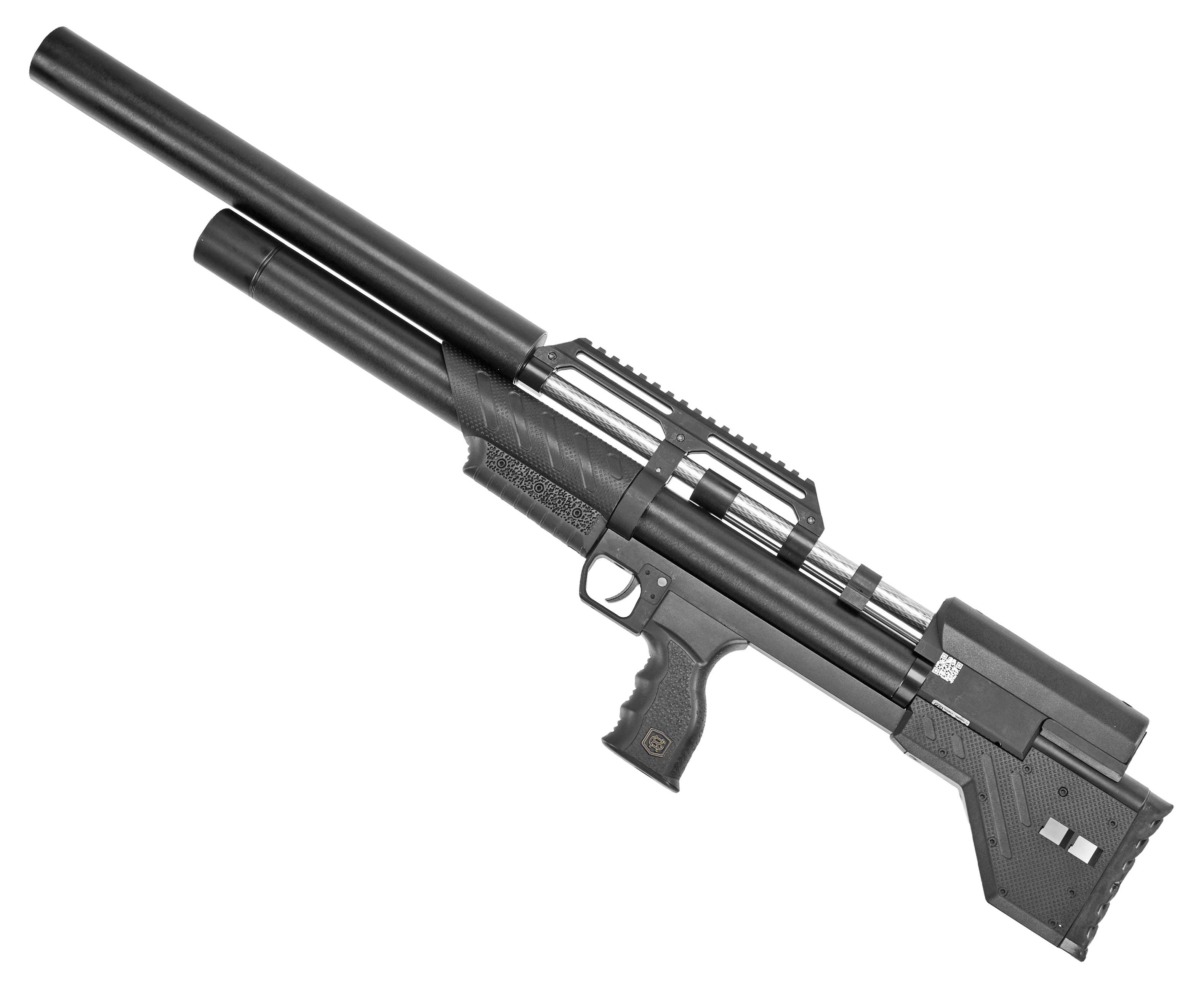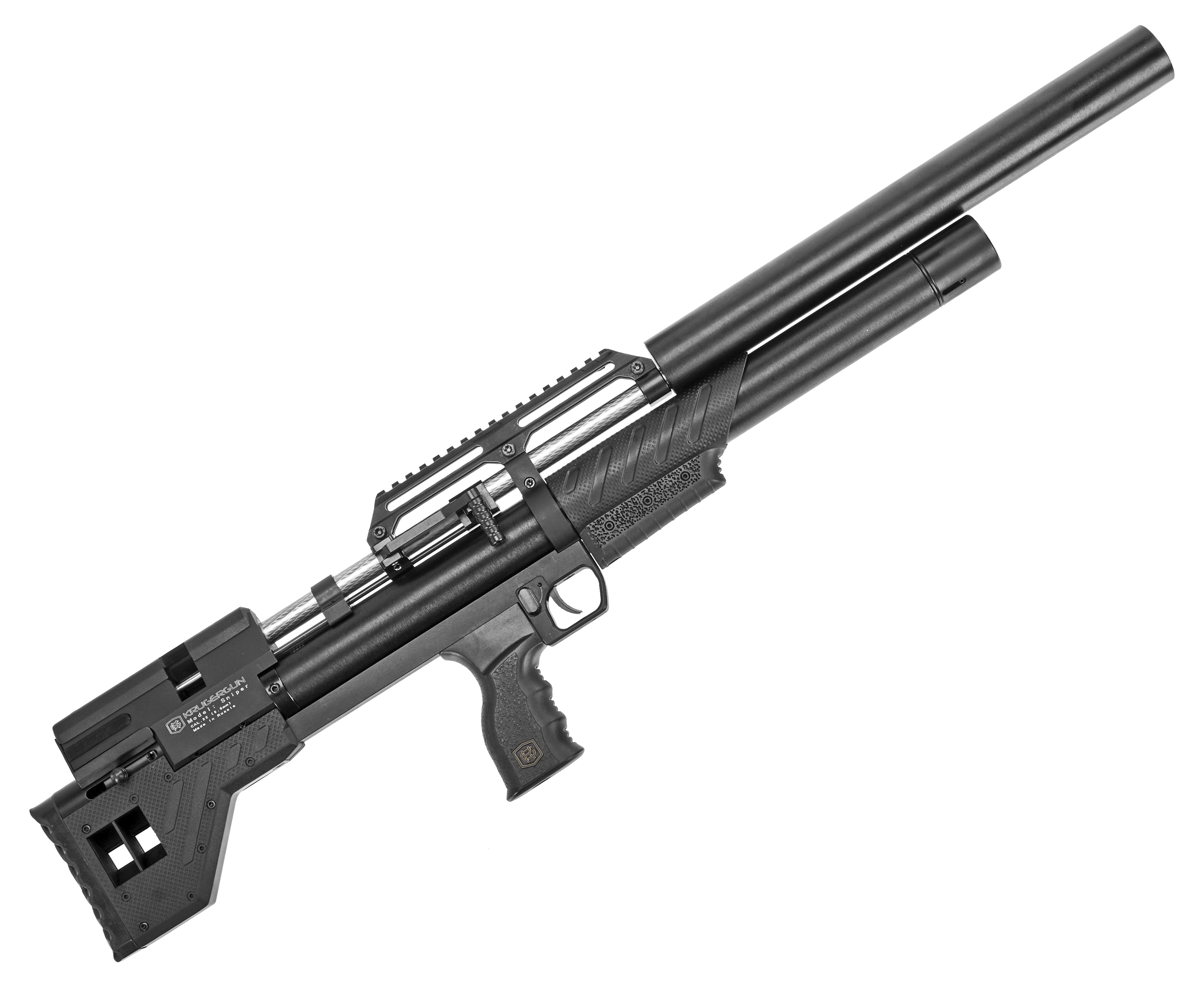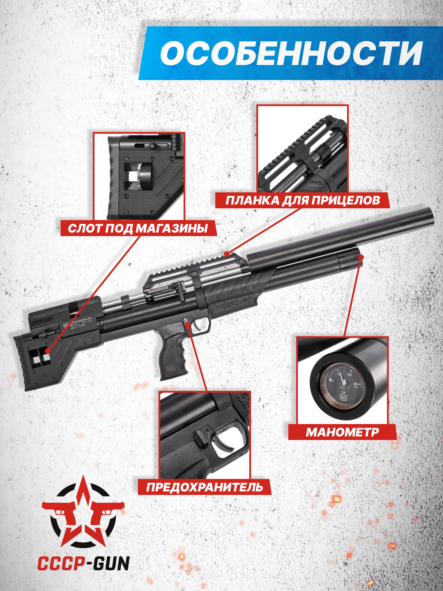 Компания KrugerGun представила рассматриваемую пневматику - винтовку калибра 5.5 миллиметра. Конкретный экземпляр создали для стрелков, ценящих точность длинных стволов в сочетании с компактностью компоновки с задним расположением ударного механизма и полимерной ложей. Оружие классифицируется как многозарядное - боепитание осуществляется с помощью комплектного барабанного магазина, то есть подача следующего заряда происходит автоматически после оттягивания переднего рычага.