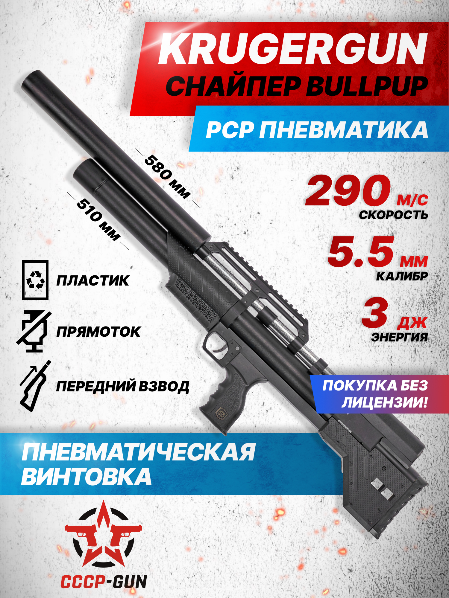 Российский производитель KrugerGun завоевал признание среди владельцев пневматического оружия благодаря выпуску надежных моделей с высокими баллистическими характеристиками. Особенно востребована линейка винтовок серии Снайпер, выполненных по схеме Буллпап. Обширный выбор модификаций внутри серии позволяет каждому стрелку найти оптимальный вариант под индивидуальные задачи.