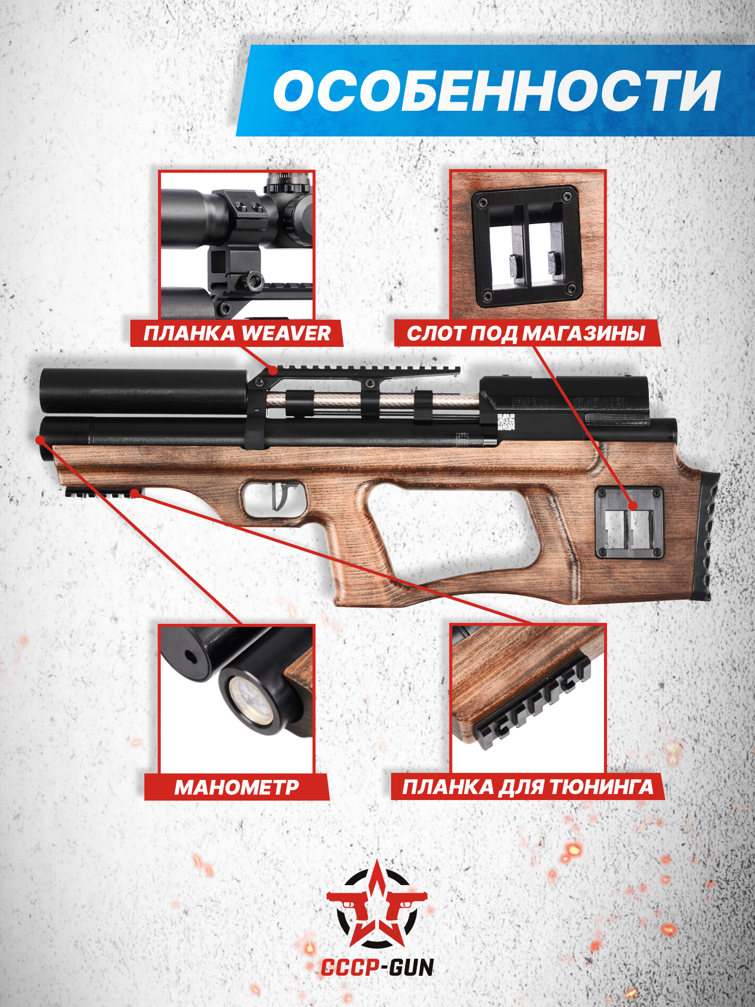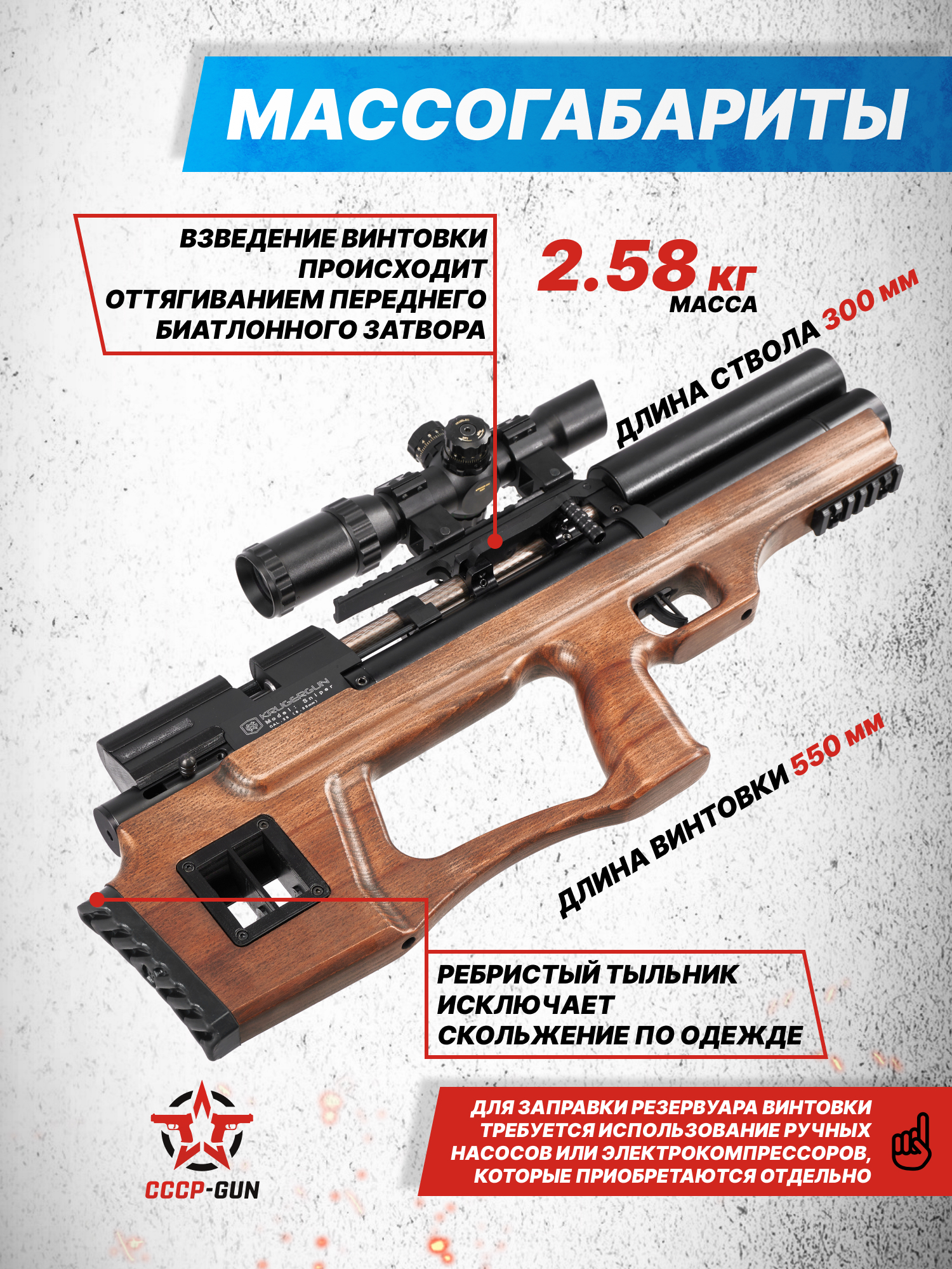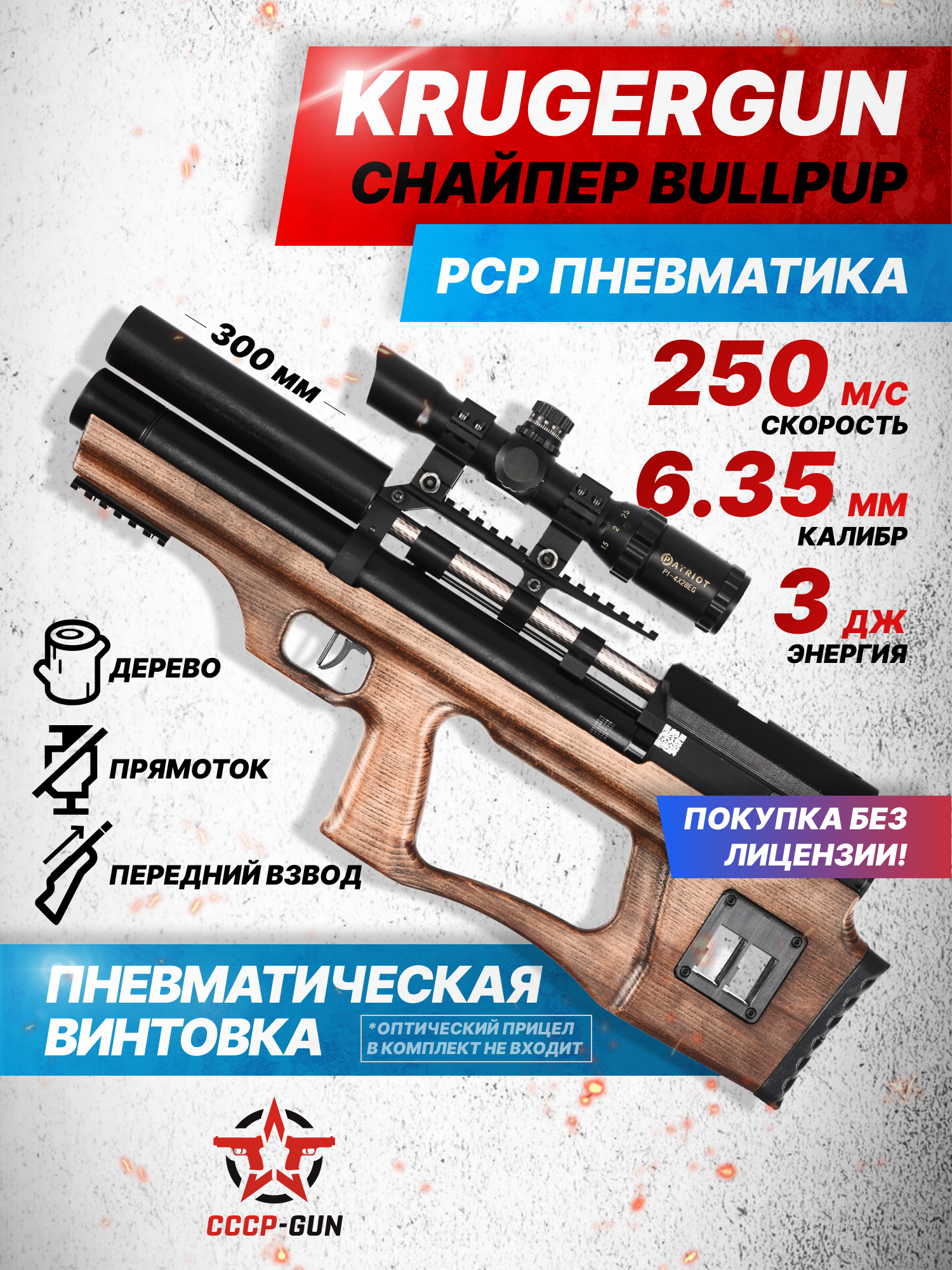 Пневматическая винтовка KrugerGun Снайпер BullPup 5.5 мм (500 мм, редуктор, дерево L, резервуар 510)