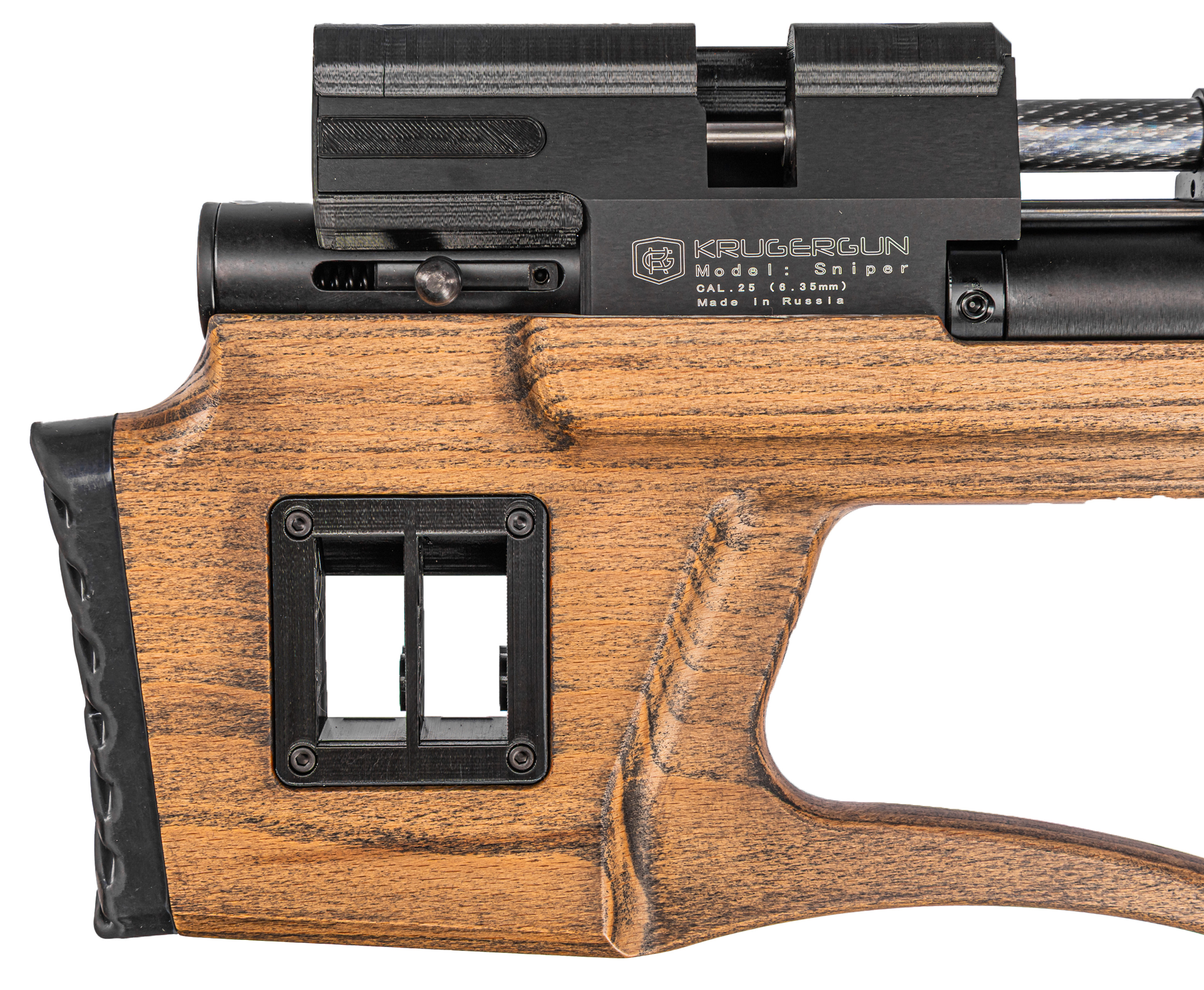 ПСП КрюгерГан Снайпер 6.35 мм относится к классу мощных винтовок, позволяя в момент выстрела разгонять свинцовую воланчиковую пулю до скорости 290-300 метров в секунду. При этом, изготовитель, акцентирует внимание покупателя на том, что для свободной реализации рассматриваемой модели на российском рынке, ее дульная энергия ограничивается тремя Джоулями.