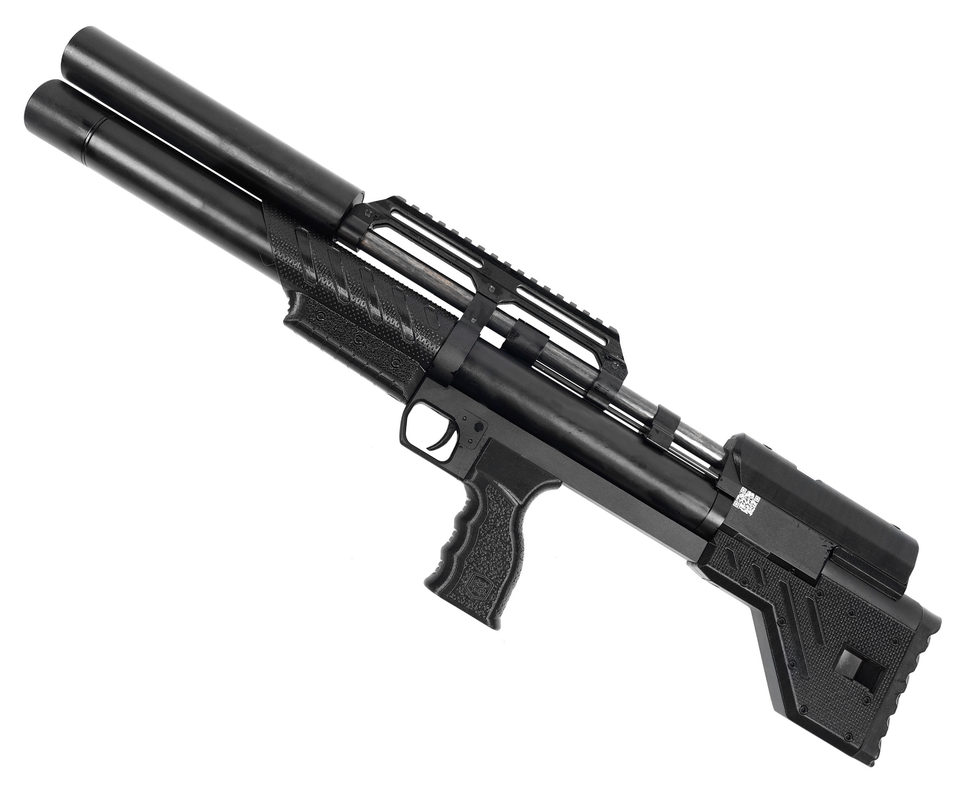 Выстрел из представленной винтовки происходит за счет давления воздуха, высвобождаемого по прямотоку из ресивера объемом 365 кубических сантиметров. Давление внутри этого резервуара, дополненного манометром, нагнетается до отметки в 300 Бар с применением ручного или электрического компрессора, который подсоединяется к емкости благодаря штуцеру из набора с пневматикой. Безопасность работы оружия контролируется надежным флажковым предохранителем, спроектированным с правой стороны корпуса в зоне спускового крючка.