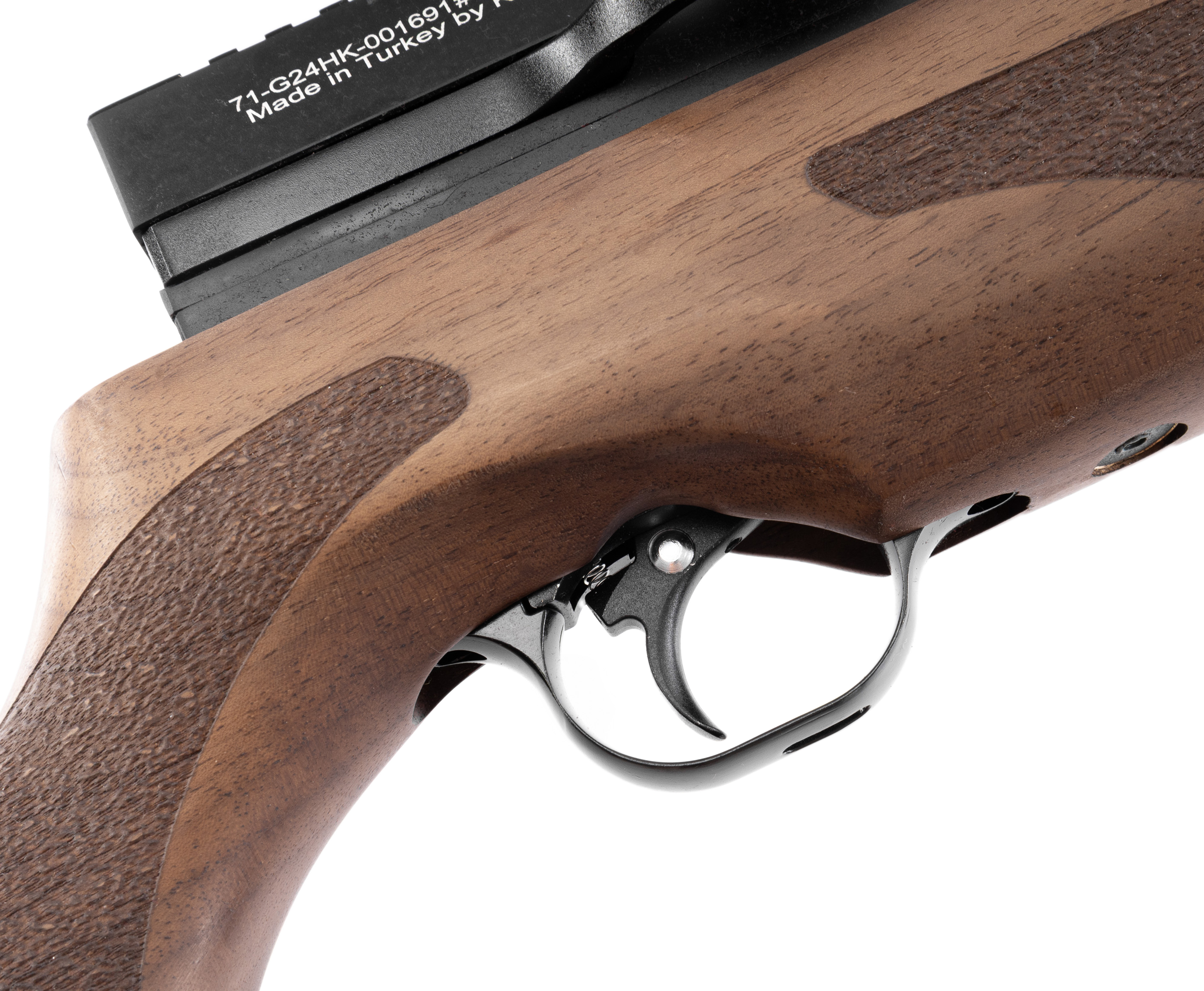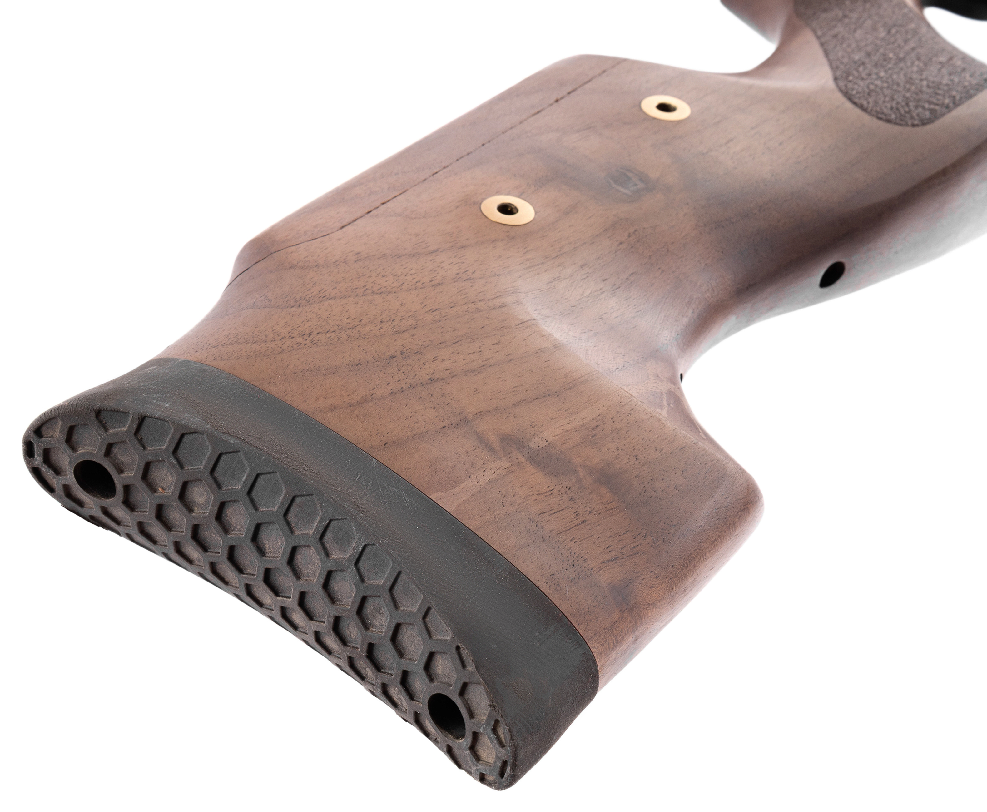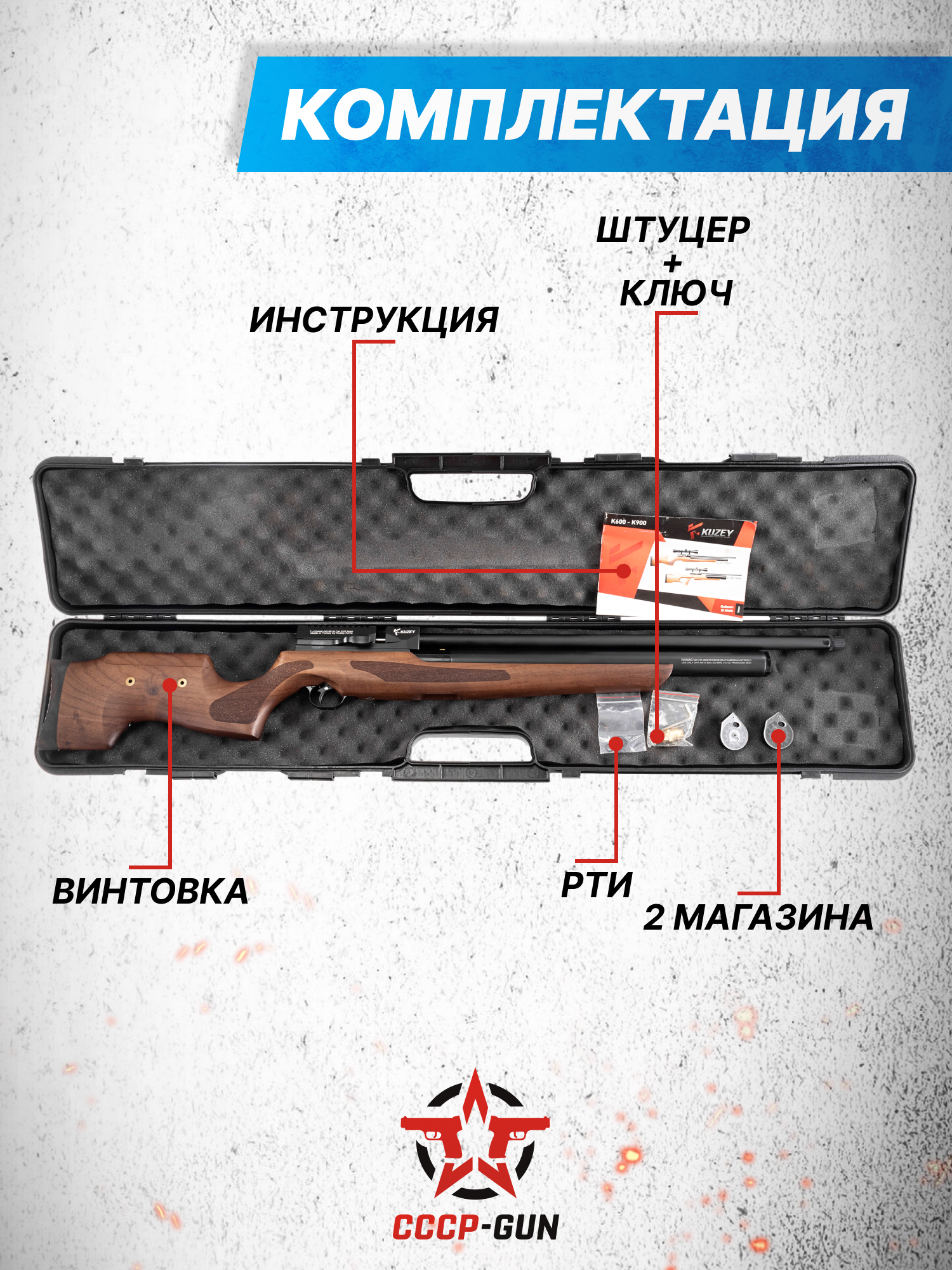 Обозреваемый образец Kuzey K60 5.5 мм сочетает в себе современные элементы оружия с классической ложей из дерева. Текстура орешника помогает ощутить в руках традиционную винтовку, длинна которой равна 106 сантиметрам, а масса 3.87 кг. Для повышения комфорта во время вкладки приклад оборудован регулируемым подщечником и упругим тыльником, помогая сделать соприкосновение с плечом при стрельбе более мягким.
