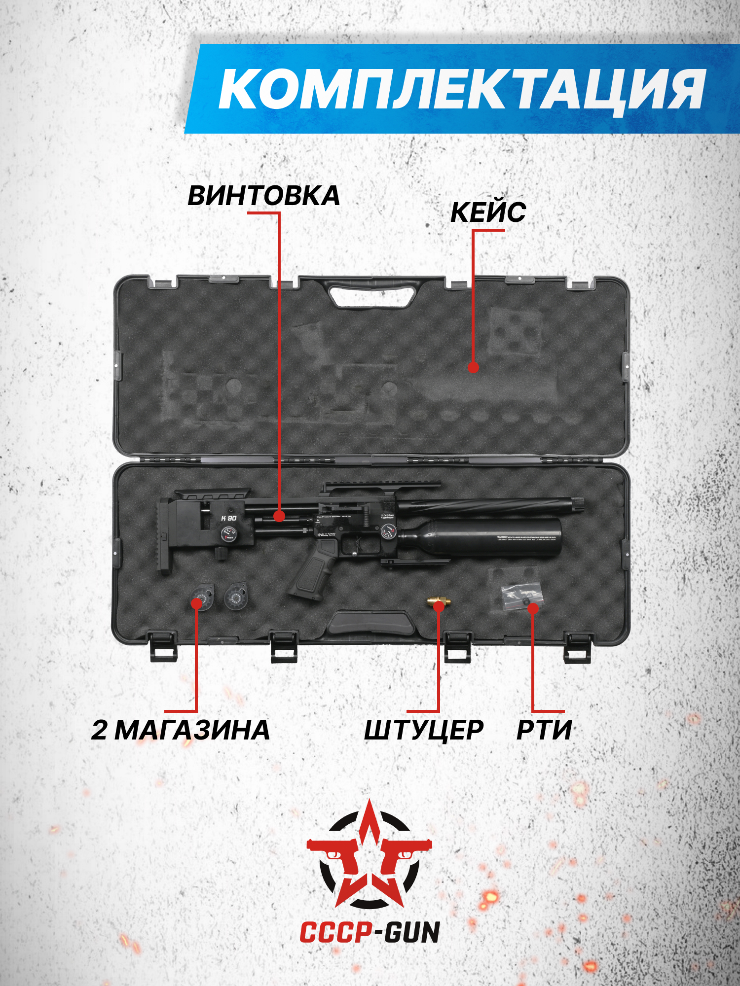 Для стрелка предусмотрена эргономичная пистолетная рукоять из полимера. Приклад оснащен регулируемым подщечником и затыльником, которые позволяют в полной мере подстроить винтовку под параметры владельца. В комплекте также представлен кейс, облегчающий транспортировку оружия к местам стрельб.