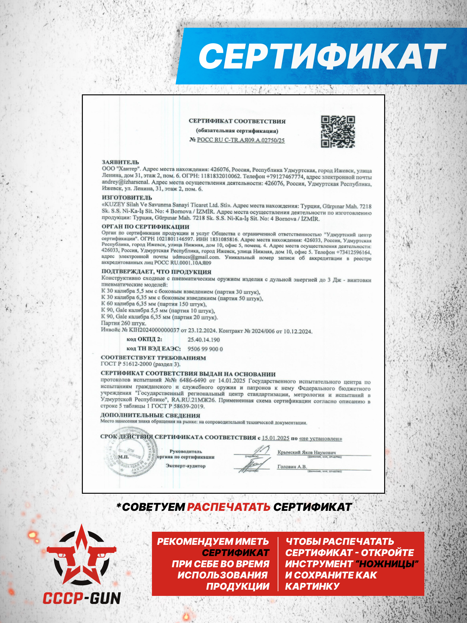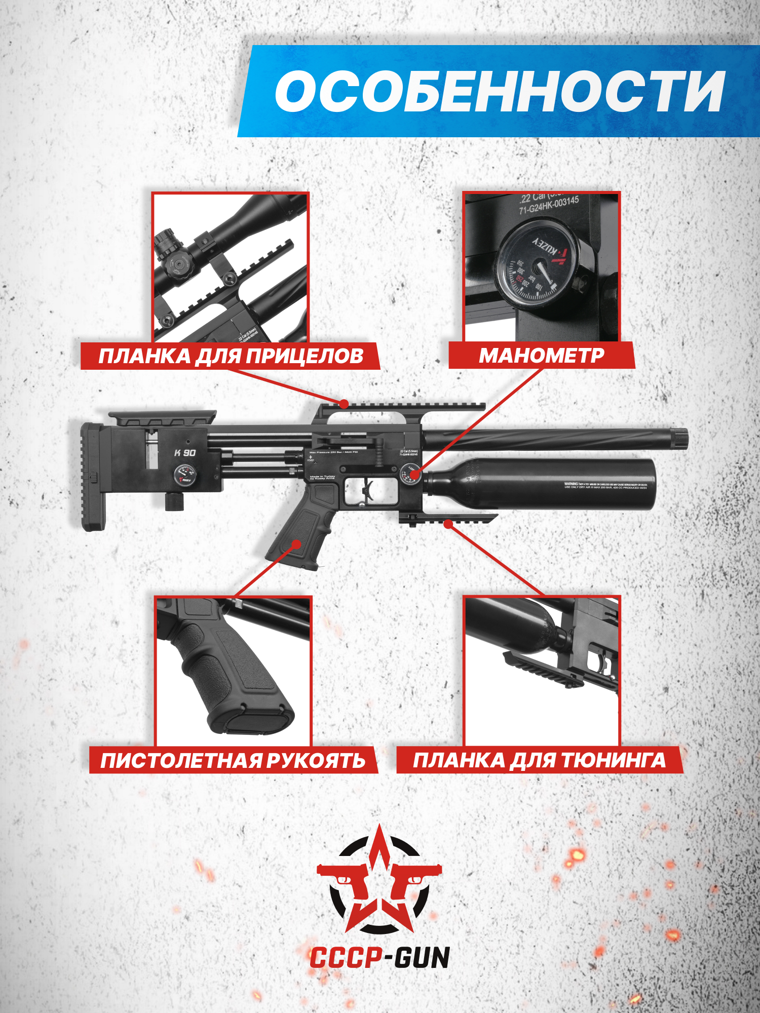 Турецкий производитель Kuzey известен в сфере пневматического оружия благодаря выпуску надежных и технологичных моделей с футуристичным дизайном. Продукция завода сочетает в себе практичность, аккуратную сборку и современные инженерные решения. Винтовка K90 Gale калибра 6.35 мм - наглядный пример подхода компании к изготовлению PCP платформ.