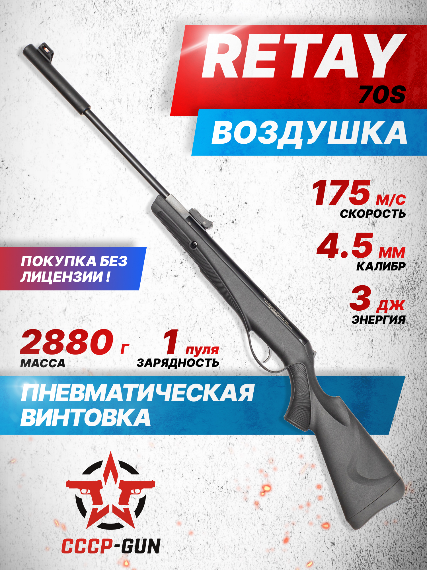 Пневматическая винтовка Retay 70S Black - это бюджетный и надежный экземпляр, который благодаря своей простой конструкции может стать первым оружием для тренировки в стрелковых дисциплинах. Полные габариты изделия составляют 1020 миллиметров при весе в 2880 грамм, что позволяет держать пневматику на весу продолжительное время не испытывая трудности.
