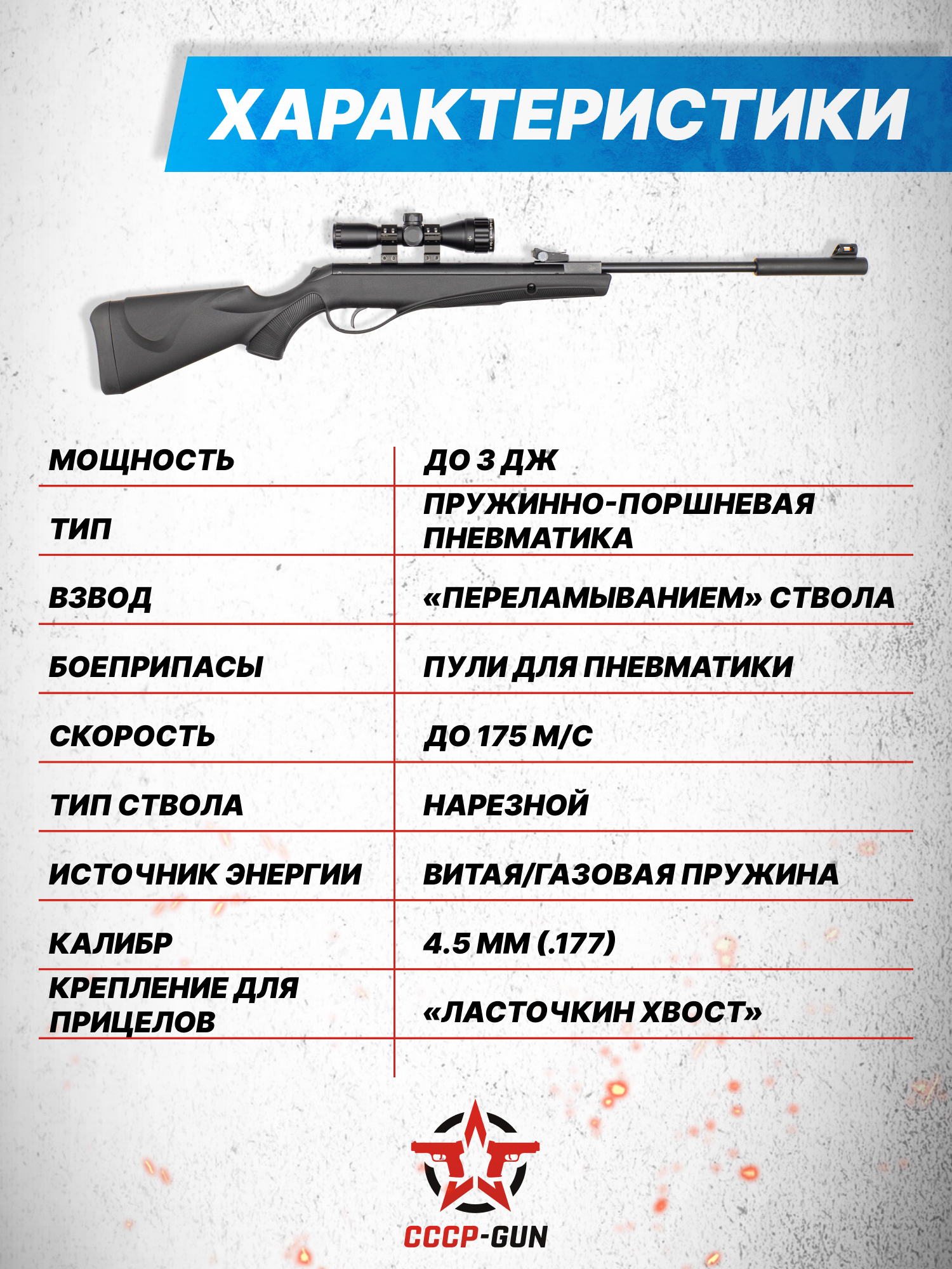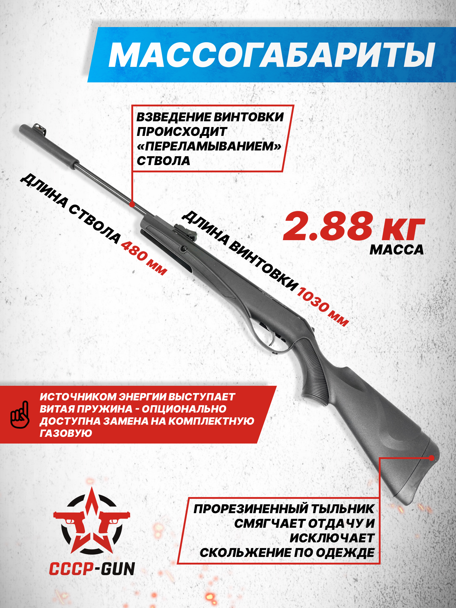 Внимание! Данная модель поставляется в разрешенной мощности для свободного приобретения на территории Российской Федерации. При этом в модели имеется возможность увеличения мощности путем замены части деталей или настройки конструкции, однако не стоит забывать о Федеральном законе «Об оружии» № 150 - ФЗ. В случае необходимости, опираясь на данный закон и руководствуясь им, возможно, потребуется получить разрешение от ЛЛР ГУ МВД России после вмешательства в конструкцию.