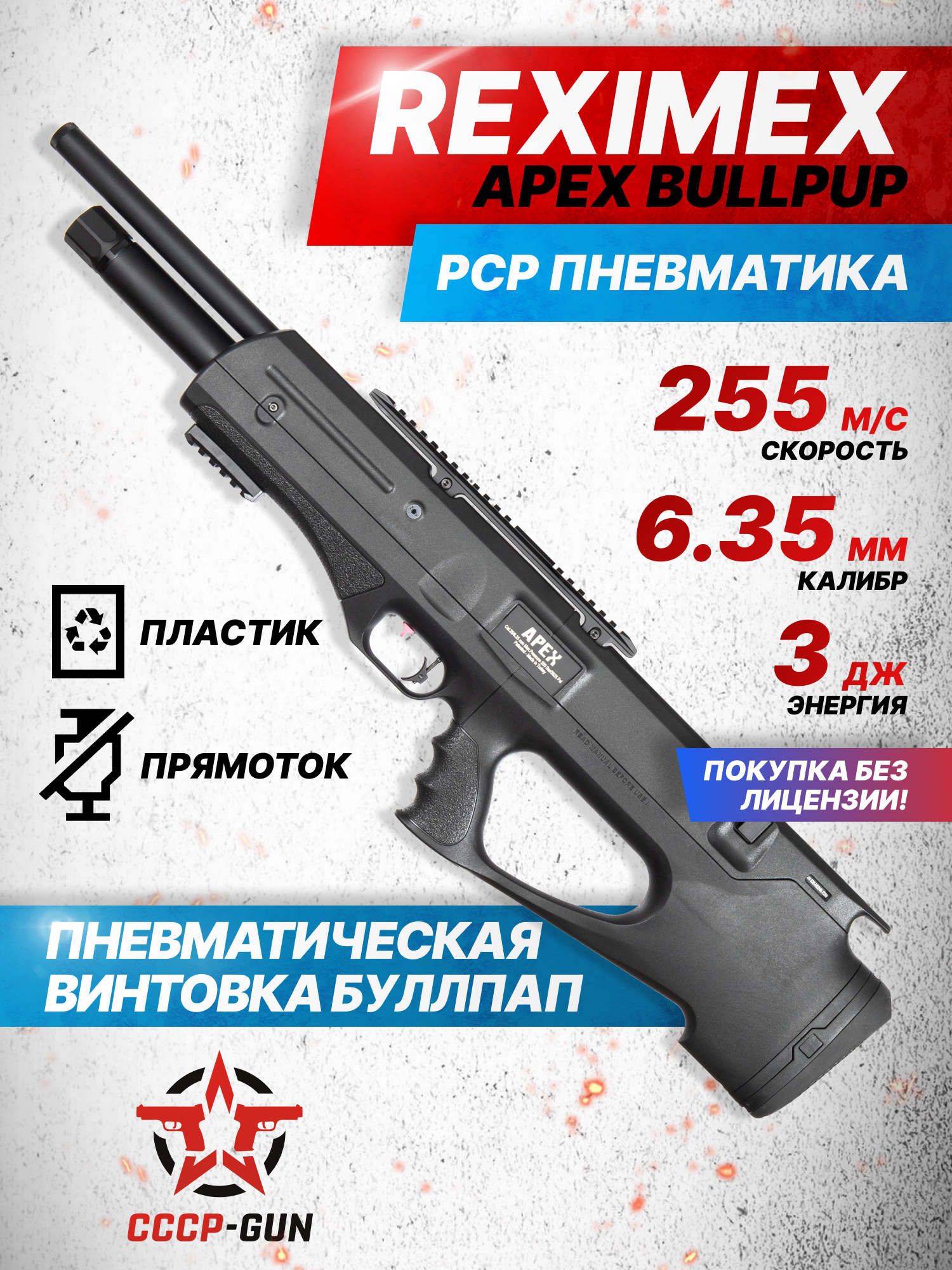 В Россию винтовка Рексимекс Апекс поступает с ограничением показателя дульной энергии на отметке в 3 Джоуля, поэтому для покупки пневматики пользователю понадобится только паспорт, без оформления оружейной лицензии. Благодаря этому винтовку легко смогут приобрести начинающие спортсмены или любители развлекательной стрельбы, которые хотят приобщаться к оружейной тематике. Для опытных пользователей стоит отметить, что после усиления скорость полета снарядов, выпускаемых из рассматриваемой модели, увеличивается до 255 метров в секунду.