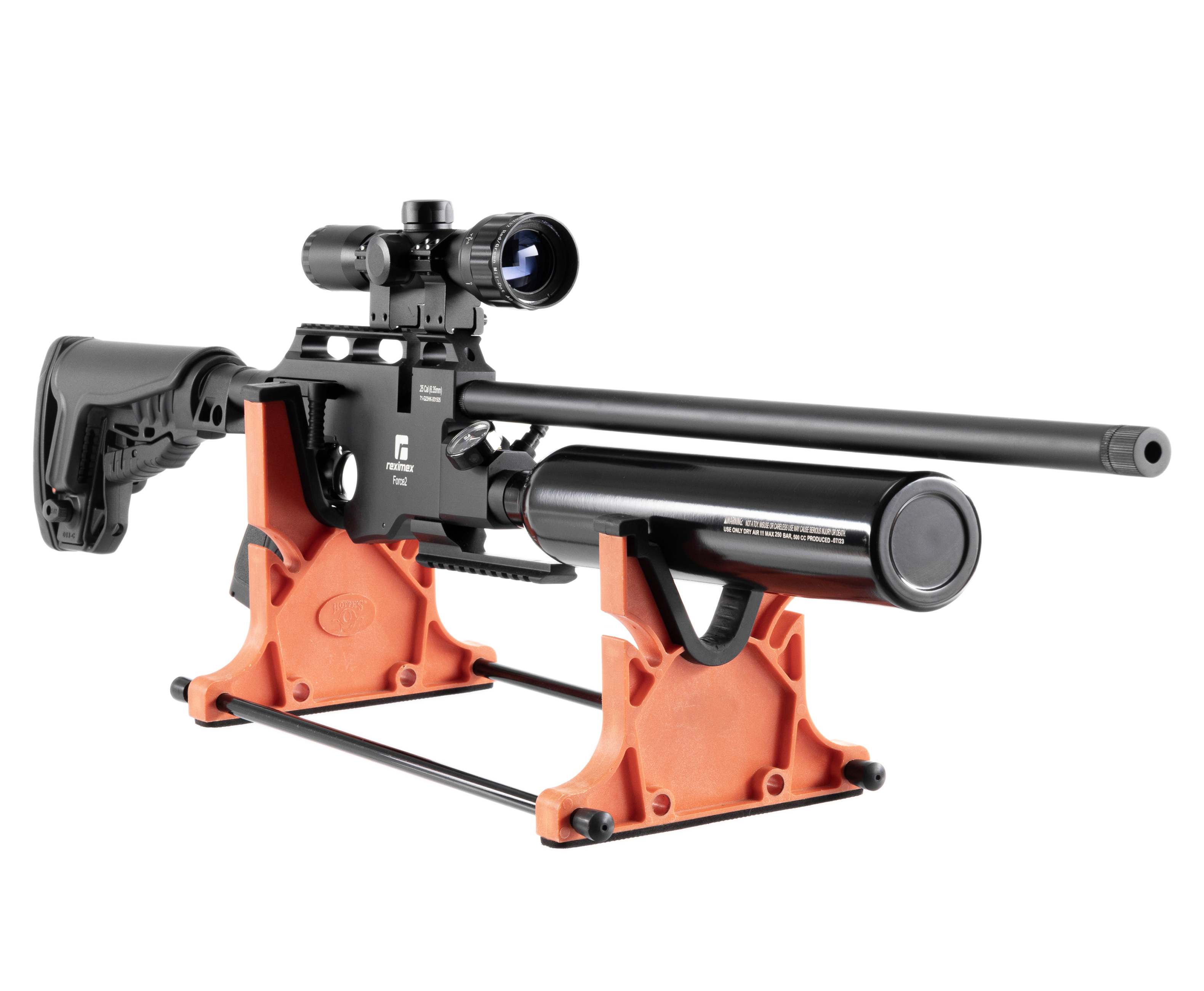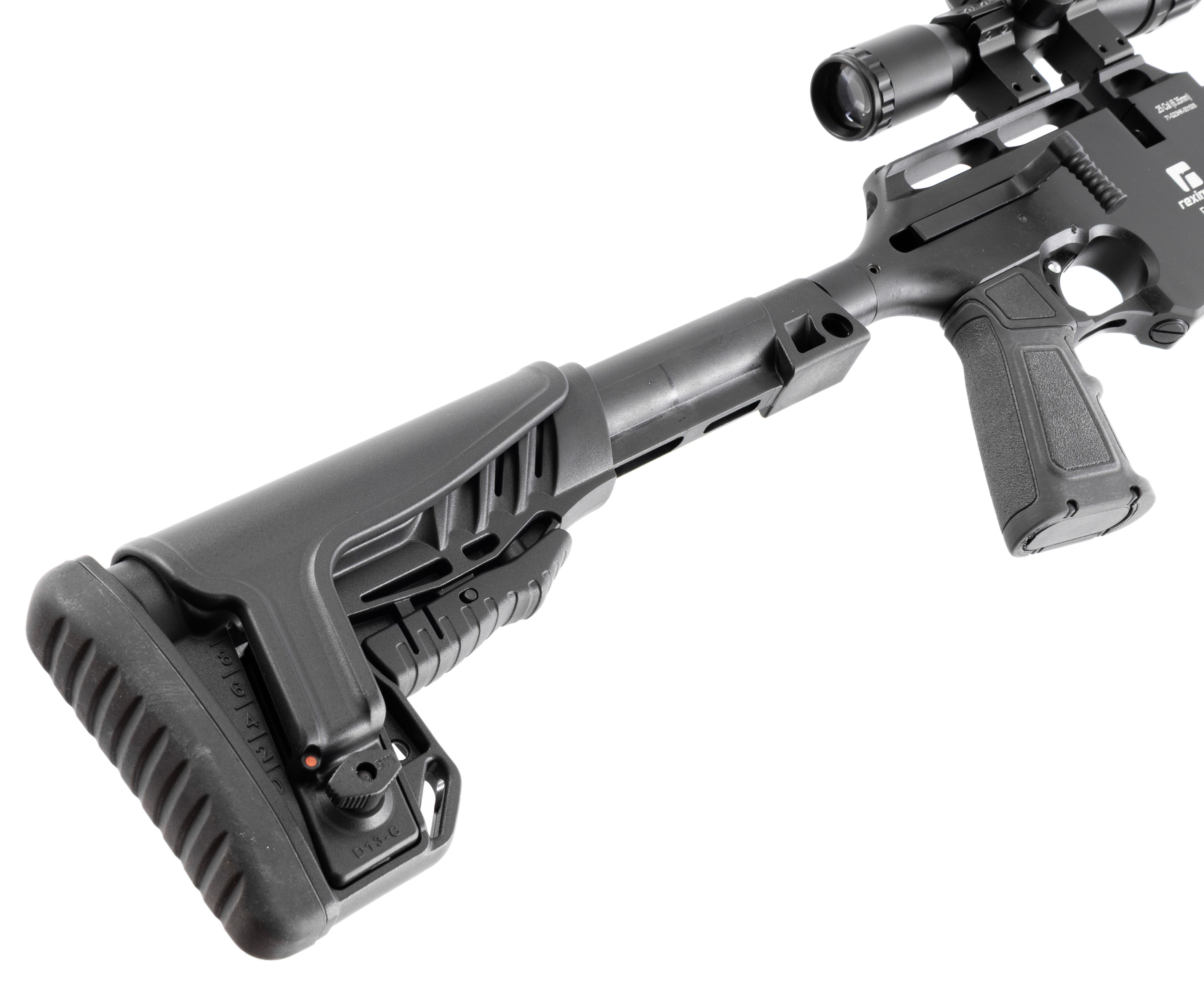 Рассматриваемая модель весит 3370 грамм при полном размере в 970 миллиметров. Классическая компоновка винтовки с такими габаритами подходит для профессиональных стрелков, которые привыкли ощущать вес оружия. Для повышения комфорта при обращении с обозреваемым изделием, компания Reximex штатно оснастила пневматику телескопическим прикладом с прорезиненным тыльником и пистолетной рукоятью.