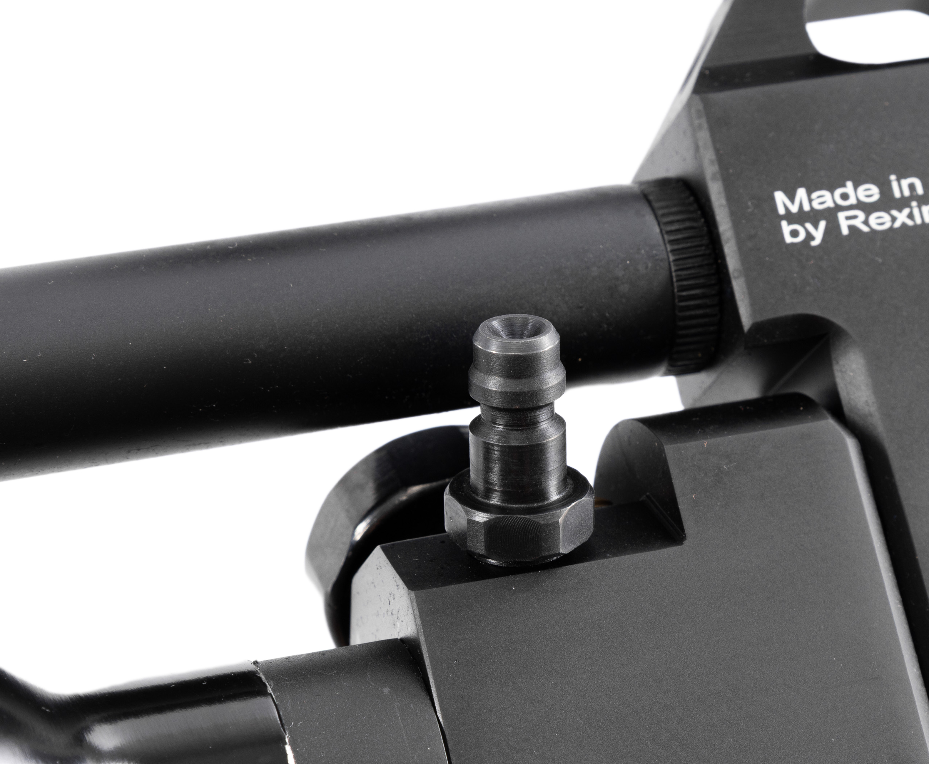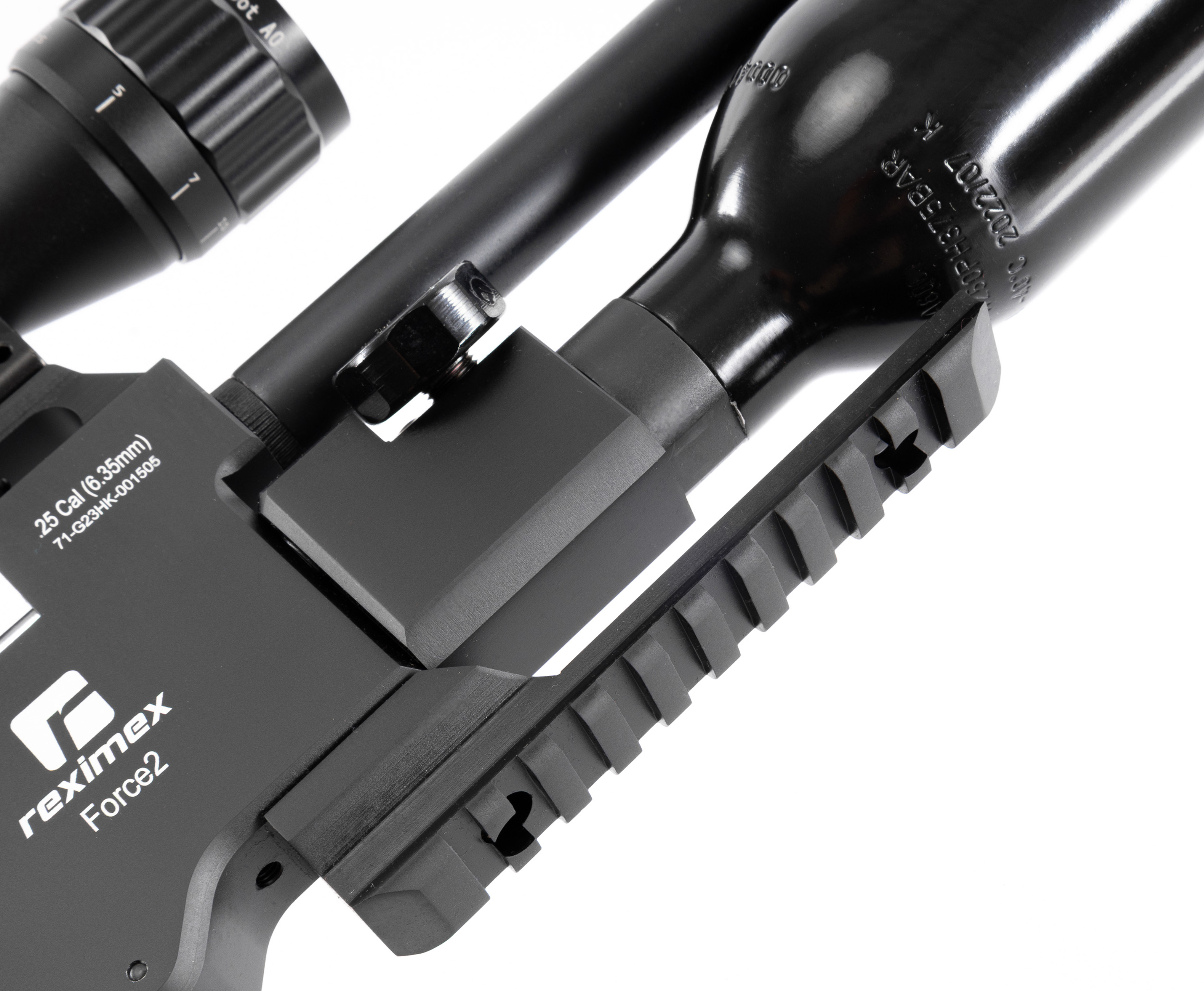 Рассматриваемая турецкая пневматика Reximex Force 2 6.35 мм отличается от предыдущих моделей бренда усовершенствованным ресивером в форме колбы. Вместимость такого штатного резервуара составляет 500 кубических сантиметров сжатого воздуха. Производитель рекомендует не превышать отметку давления в 250 бар для корректной работы воздушки и сохранения ресурса ее работы. В целях контроля этого важного показателя изделие оснащено манометром.