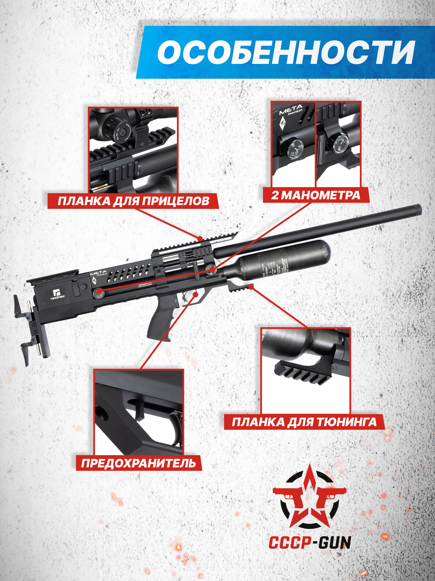 Reximex Meta Premium подразумевает применение в качестве прицельных приспособлений коллиматоров или оптики, которые фиксируются на выносной направляющей Weaver 22 мм. Для монтажа тюнинга и специальных устройств на корпусе винтовки предусмотрены сразу три планки Picatinny. Также, чтобы пользователю было комфортнее работать с моделью конструкторы добавили пистолетную рукоять и особую насадку затыльника с детальной регулировкой для подстройки под анатомию стрелка.
