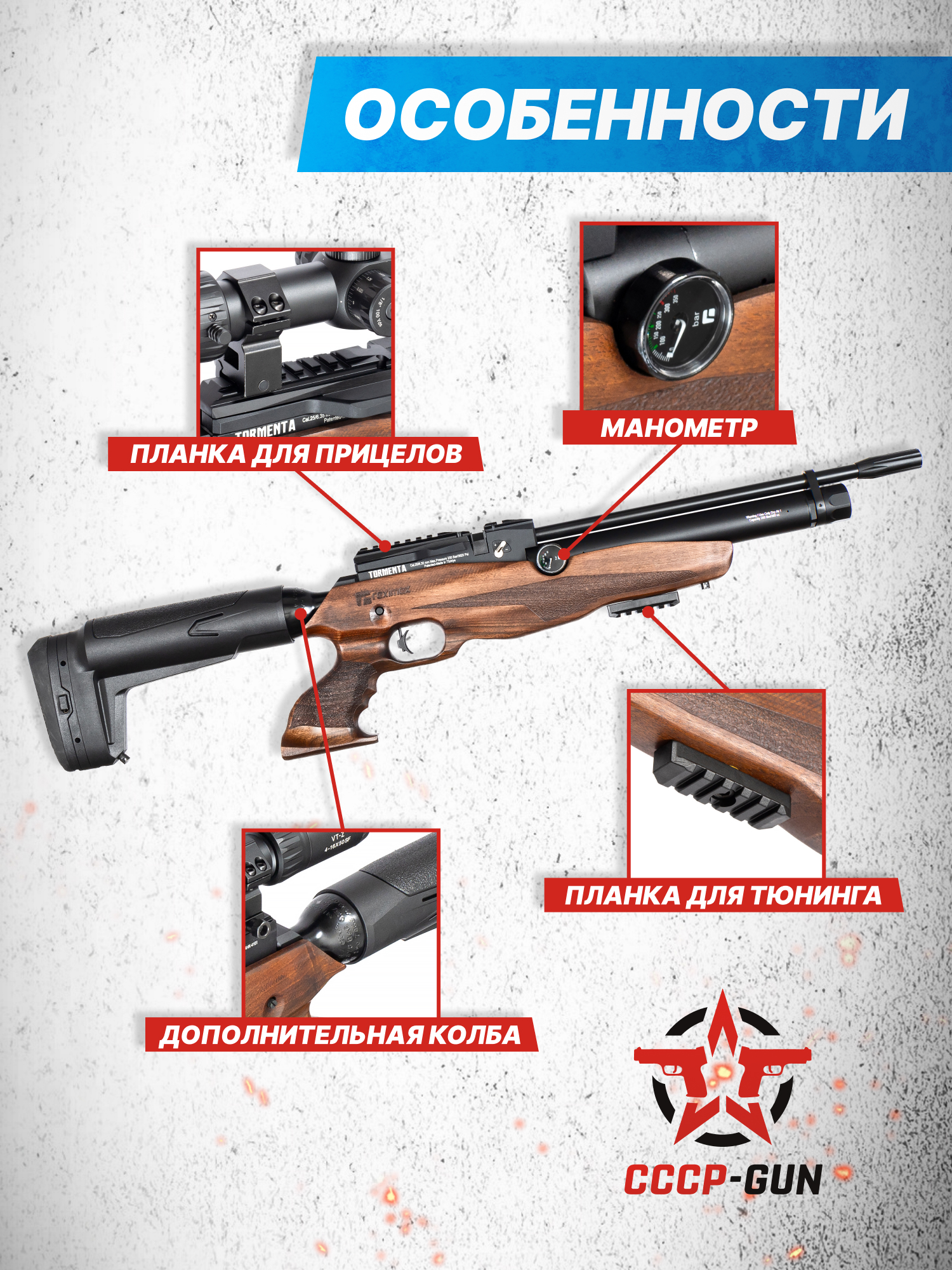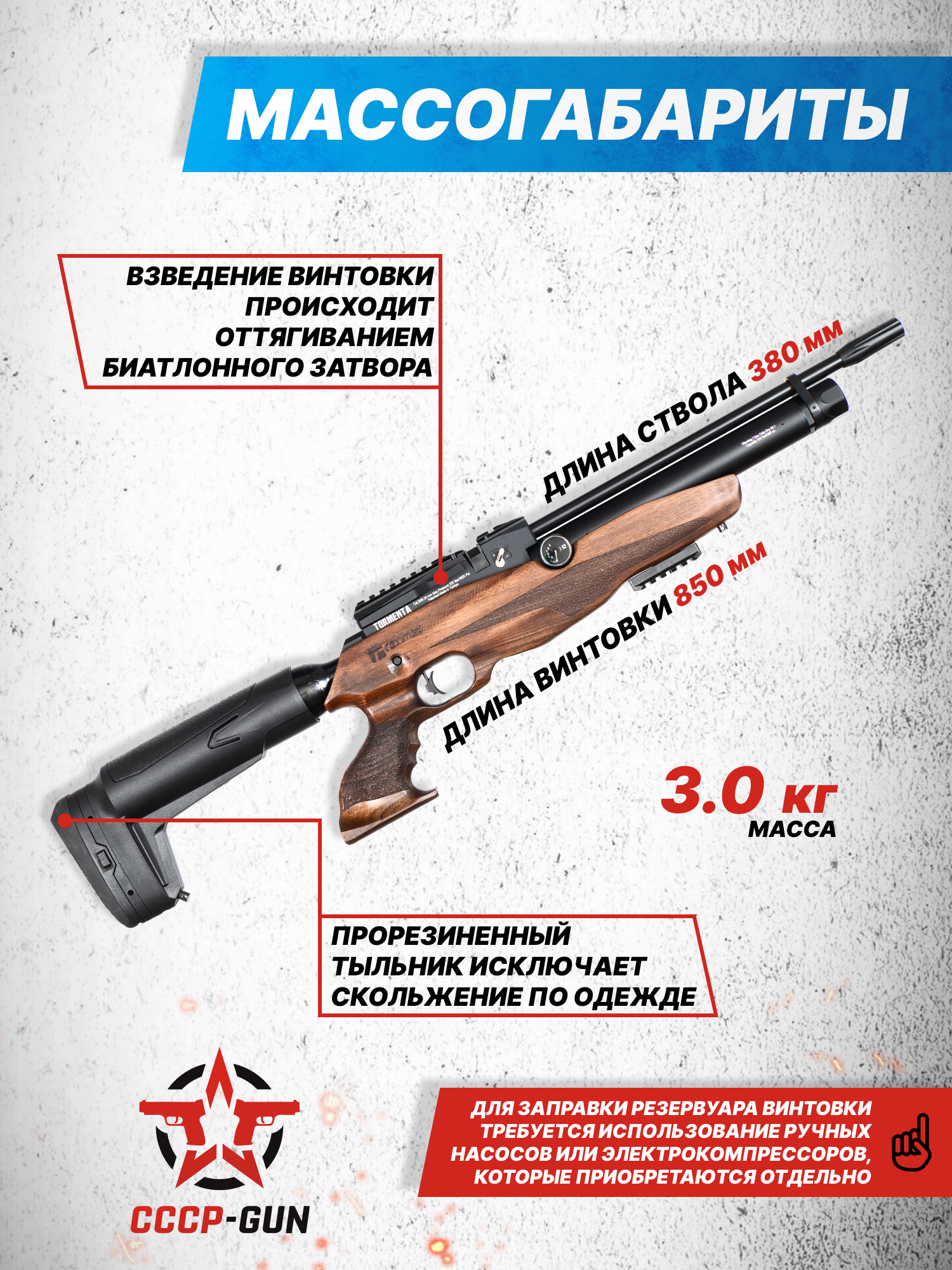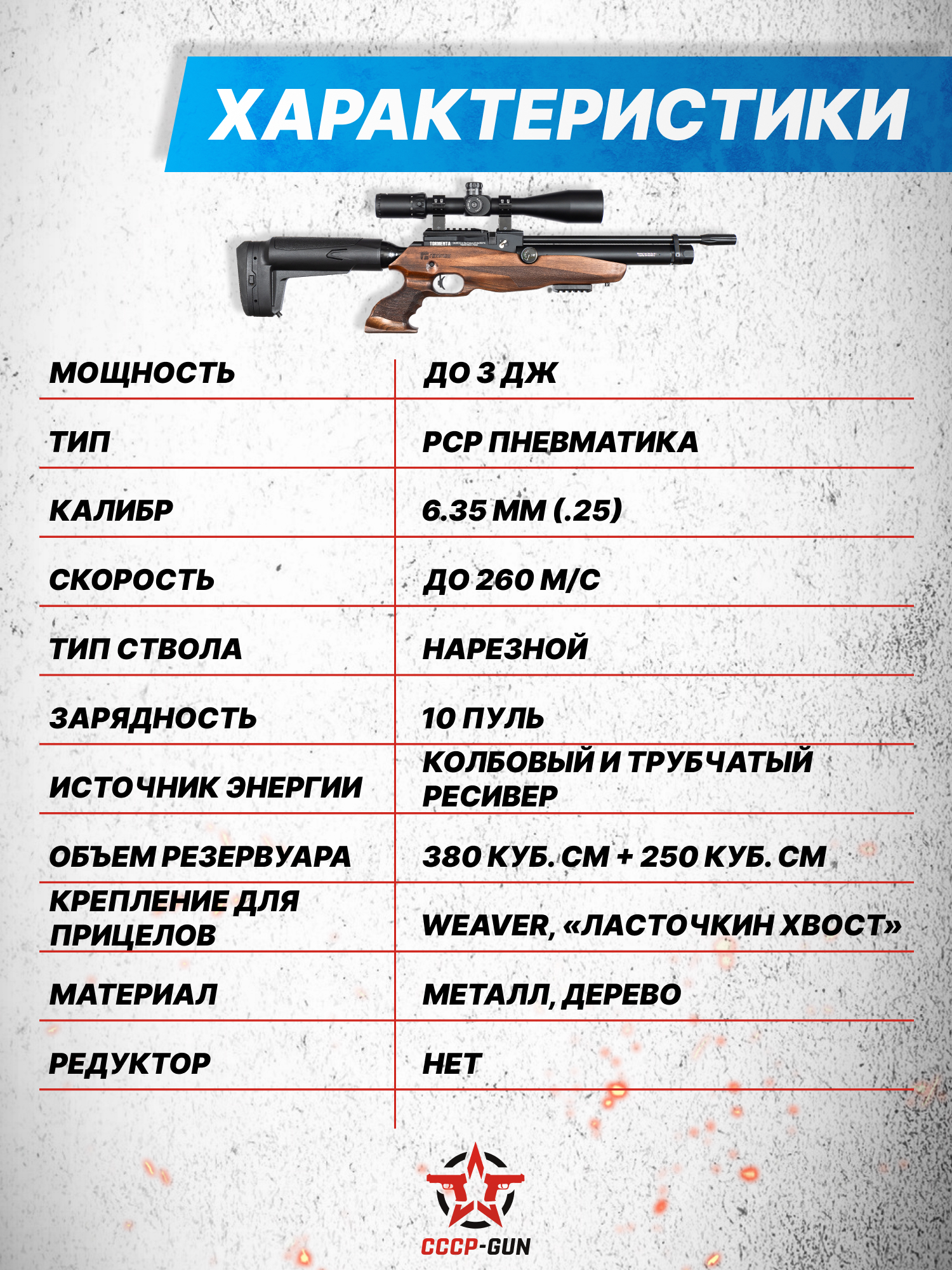 Внимание! Данная модель поставляется в разрешенной мощности для свободного приобретения на территории Российской Федерации. При этом в модели имеется возможность увеличения мощности путем замены части деталей или настройки конструкции, однако не стоит забывать о Федеральном законе «Об оружии» № 150 - ФЗ. В случае необходимости, опираясь на данный закон и руководствуясь им, возможно, потребуется получить разрешение от ЛЛР ГУ МВД России после вмешательства в конструкцию.