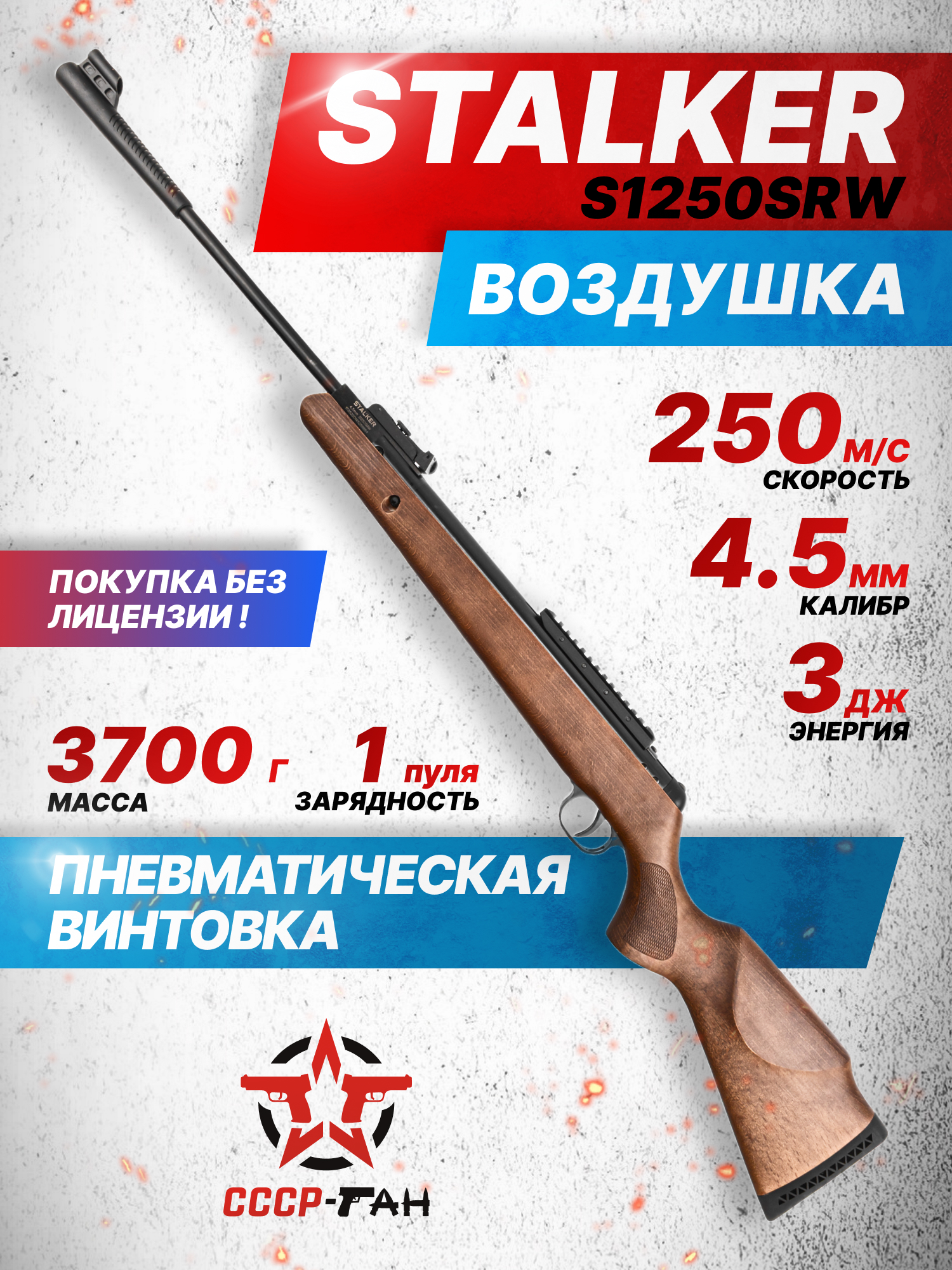 Высвобождаемый поток воздуха после нажатия на триггер устремляется в канал бланка, придавая метательному элементу ускорение до 350 м в сек - при этом важно отметить, что Stalker пневматика поставляется на рынок ослабленной до 3 Дж. Такой показатель дульной энергии удовлетворяет актуальным требованиям законодательства, позволяя любому лицу старше 18 лет свободно приобретать пневматическое оружие без оформления документов.