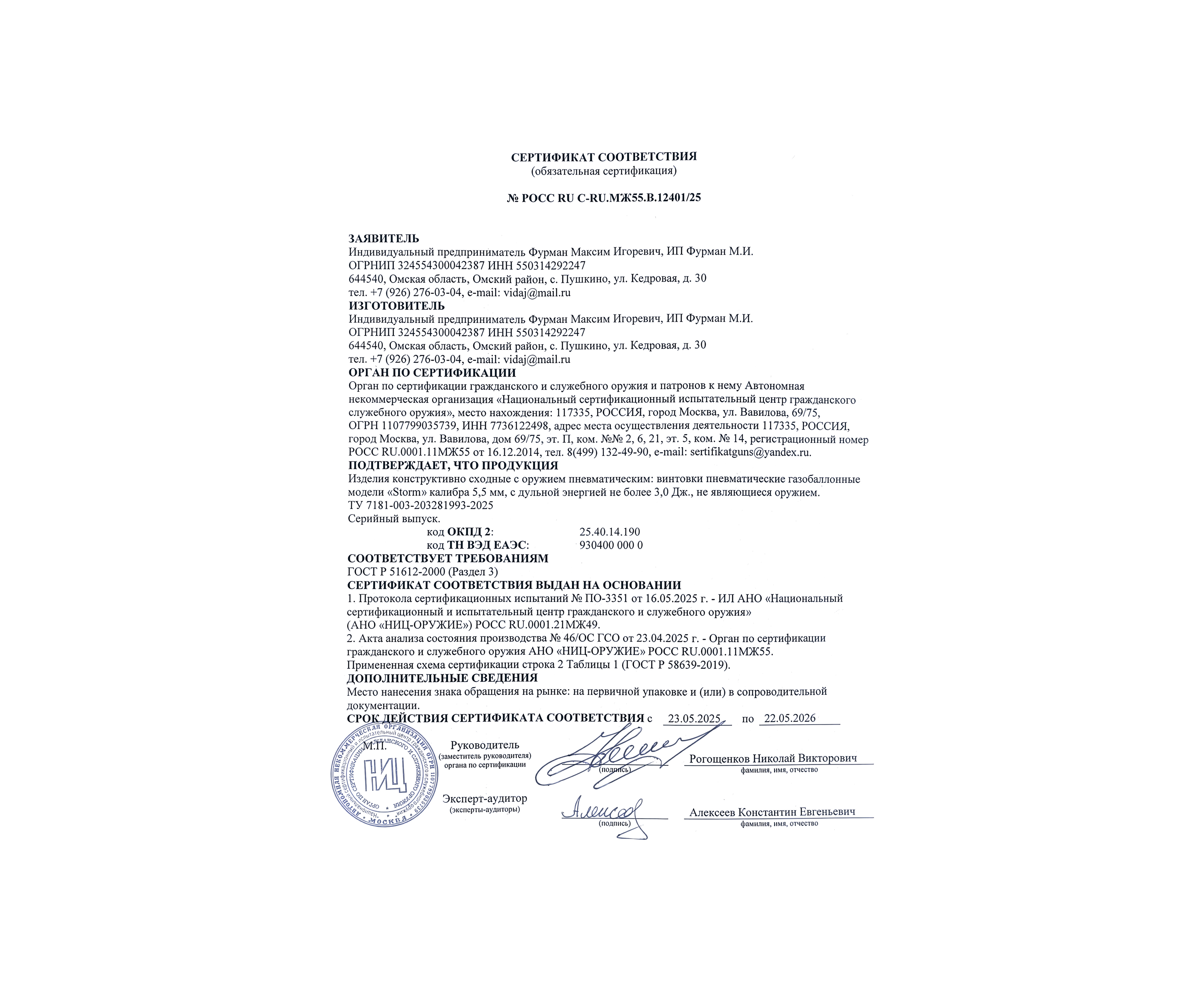Изготовлен бланк из высокопрочной стали и отличается повышенным ресурсом надежности. Помимо этого, он лишен сужения на дульном срезе - благодаря отсутствию чока формируется возможность применять свинцовые боеприпасы полнотелого типа, чья масса обеспечивает повышенное воздействие на мишень.