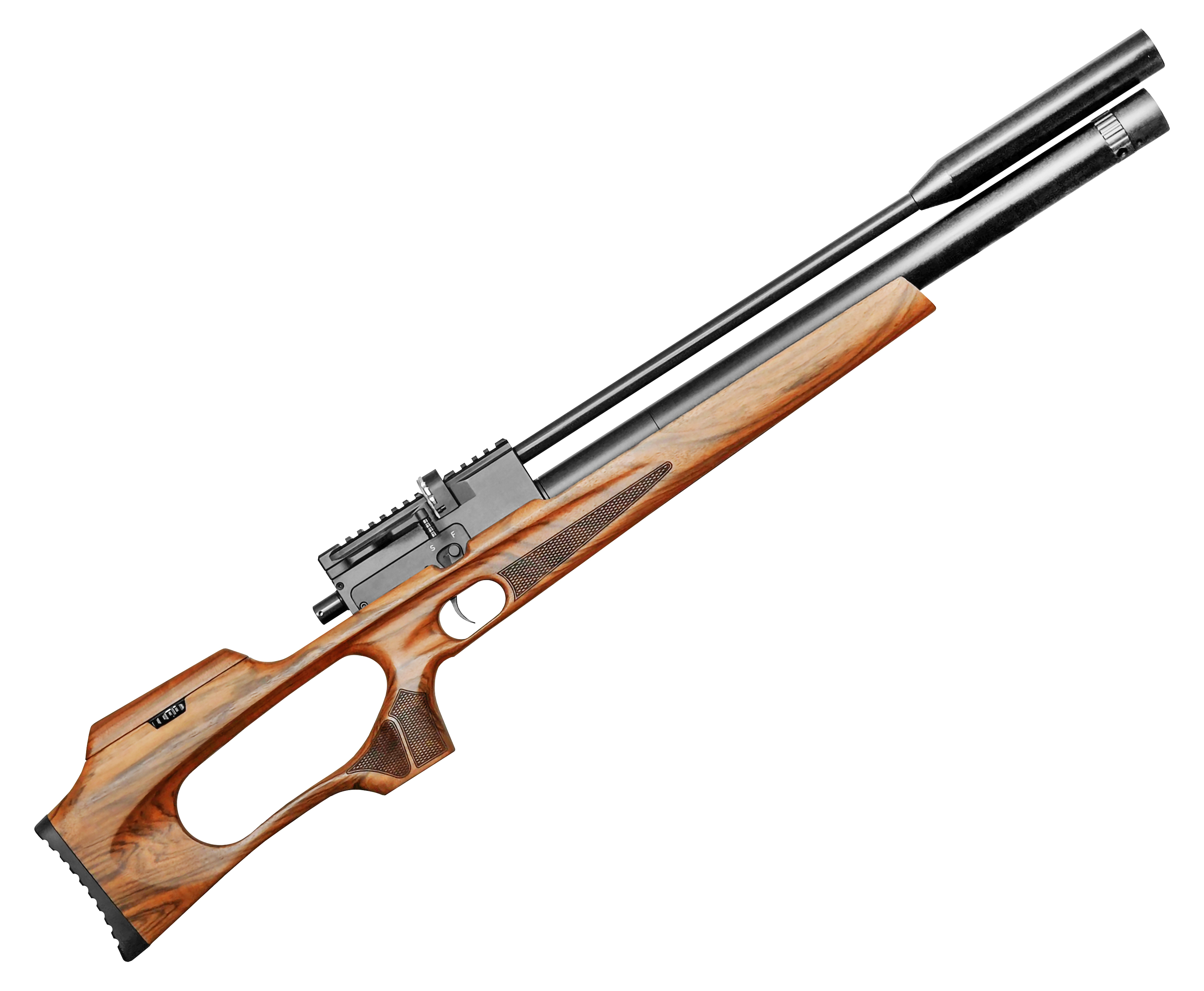 Винтовка PCP Storm 6.35 мм обеспечивает удобство обращения, так как в конструкции присутствует бланк длиной 47 сантиметров, что позволило сократить общие габариты до 1020 мм - стволы для конкретной серии изготавливаются без дульного сужения, что предоставляет стрелку возможность работать с полнотелыми боеприпасами. Дополнительно ствольный блок предусматривает саундмодератор, использование которого делает работу пневматики практически неслышной.