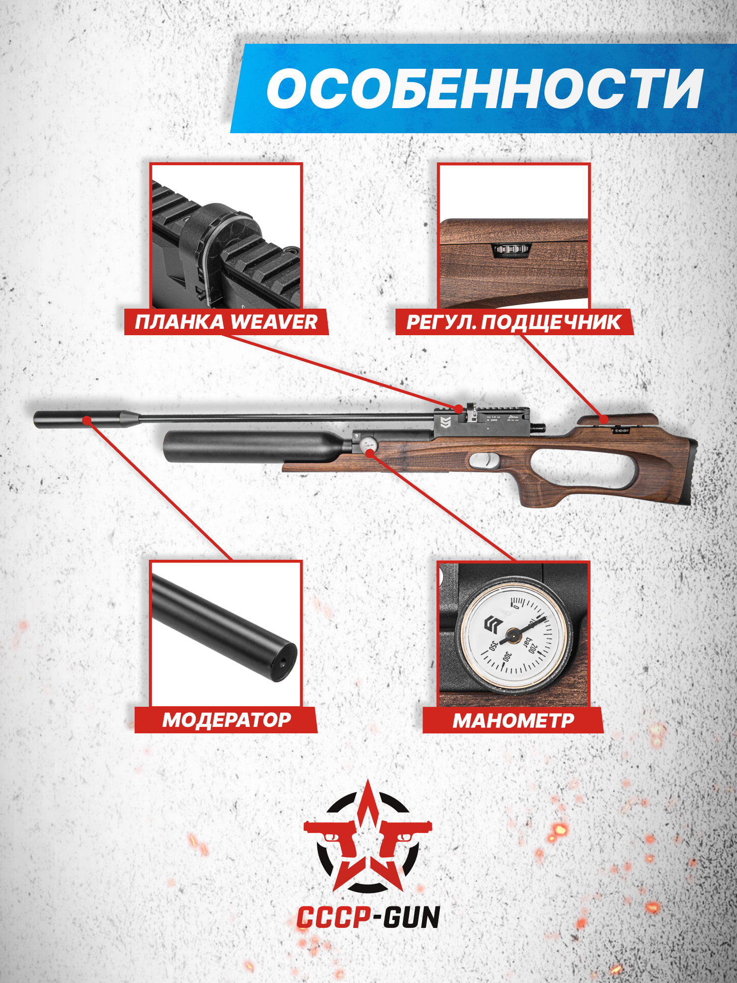 Внимание! Данная модель поставляется в разрешенной мощности для свободного приобретения на территории Российской Федерации. При этом в модели имеется возможность увеличения мощности путем замены части деталей или настройки конструкции, однако не стоит забывать о Федеральном законе «Об оружии» № 150 - ФЗ. В случае необходимости, опираясь на данный закон и руководствуясь им, возможно, потребуется получить разрешение от ЛЛР ГУ МВД России после вмешательства в конструкцию.