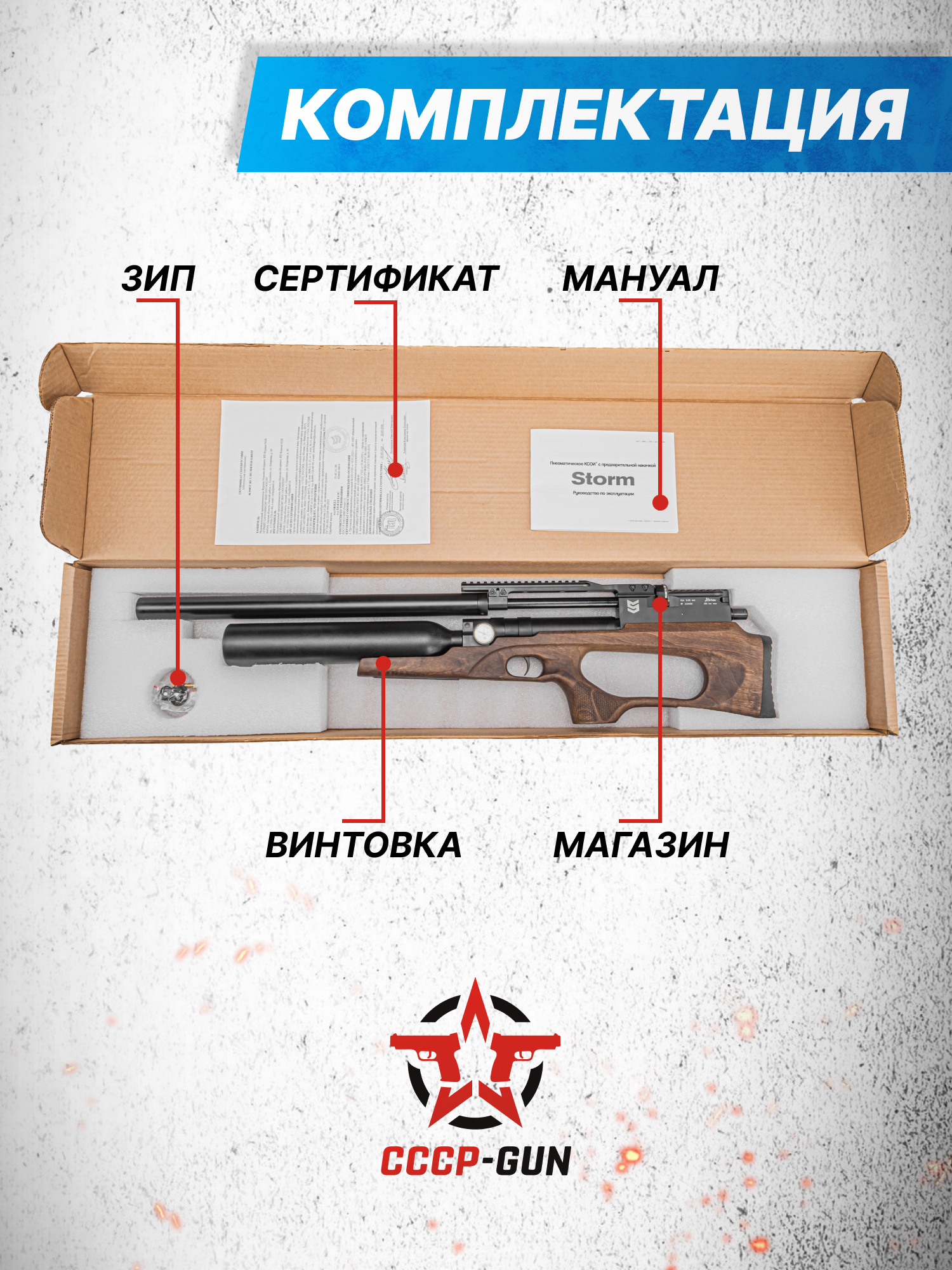 Российский рынок насыщен всевозможной пневматикой - начиная классическими пружинно-поршневыми винтовками и заканчивая образцами PCP, функционирующими с помощью сжатого воздуха. Подобные изделия можно найти в товарном ряду предприятия Storm. Компания предлагает потребителям разнообразные варианты модификаций, которые отличаются компоновками и возможностью работы с полнотелыми пулями.