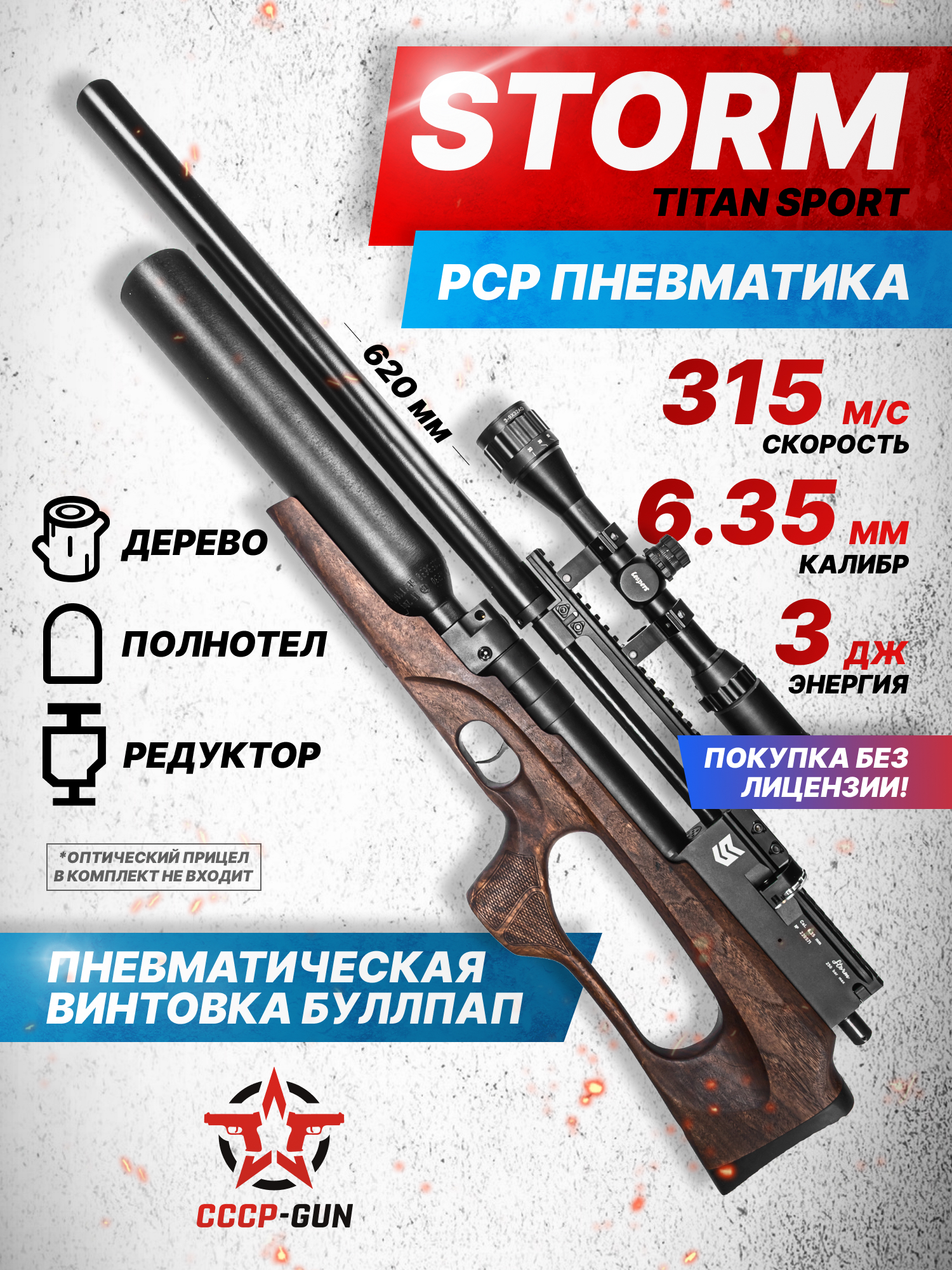 При проектировании рассматриваемой платформы закладывался потенциал повышения мощности - конструкция способна разгонять пульки до 315 метров в сек. Следовательно, возможностей пневматики достаточно для стрельбы полнотелом. Но, в то же время винтовку собирают таким образом, чтобы изделие не смогло выйти за планку 3 Дж. Указанный параметр выводит его из категории оружия с точки зрения закона, в соответствии с чем получение разрешения не предусматривается.