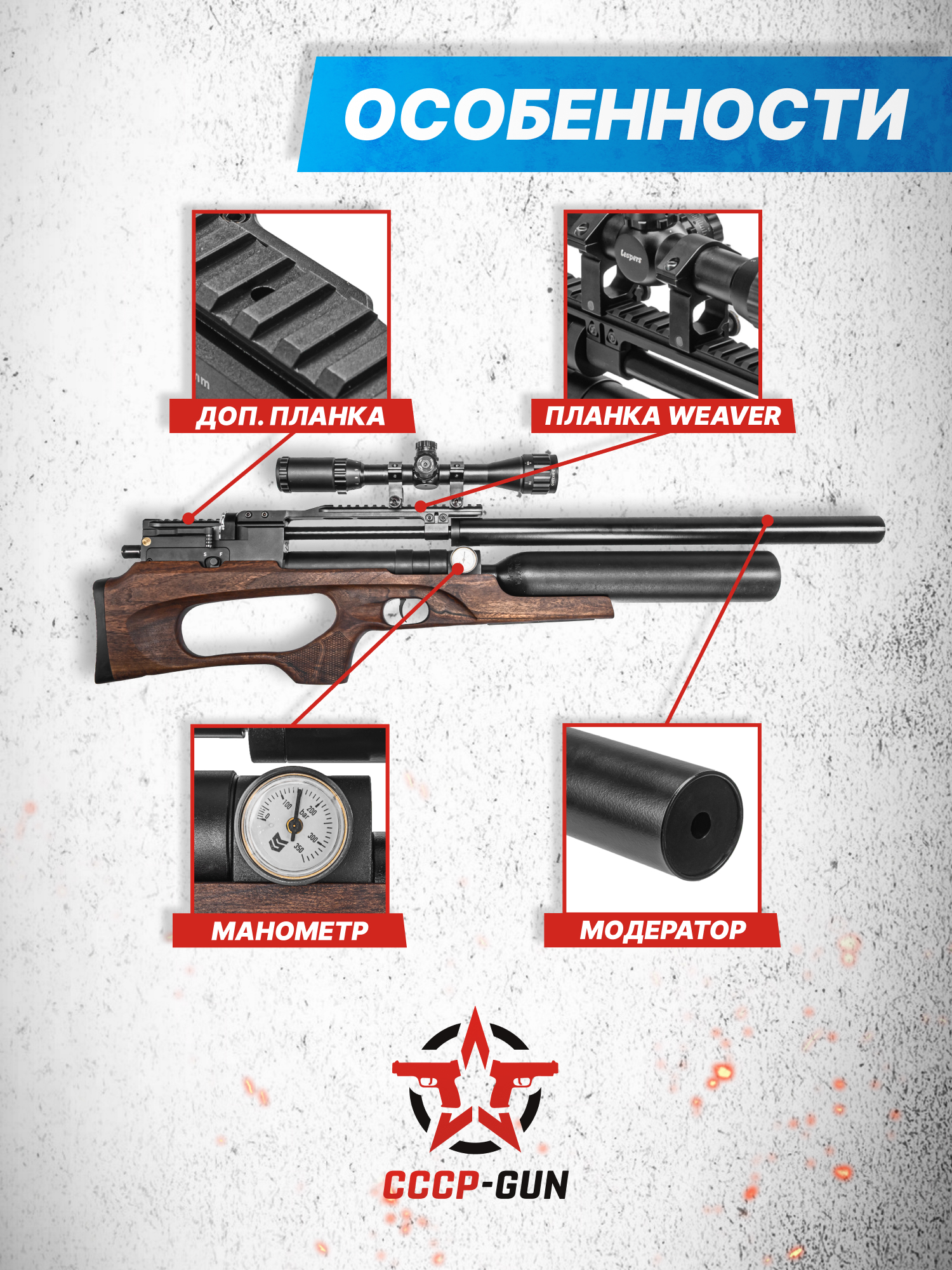 Внимание! Данная модель поставляется в разрешенной мощности для свободного приобретения на территории Российской Федерации. При этом в модели имеется возможность увеличения мощности путем замены части деталей или настройки конструкции, однако не стоит забывать о Федеральном законе «Об оружии» № 150 - ФЗ. В случае необходимости, опираясь на данный закон и руководствуясь им, возможно, потребуется получить разрешение от ЛЛР ГУ МВД России после вмешательства в конструкцию.
