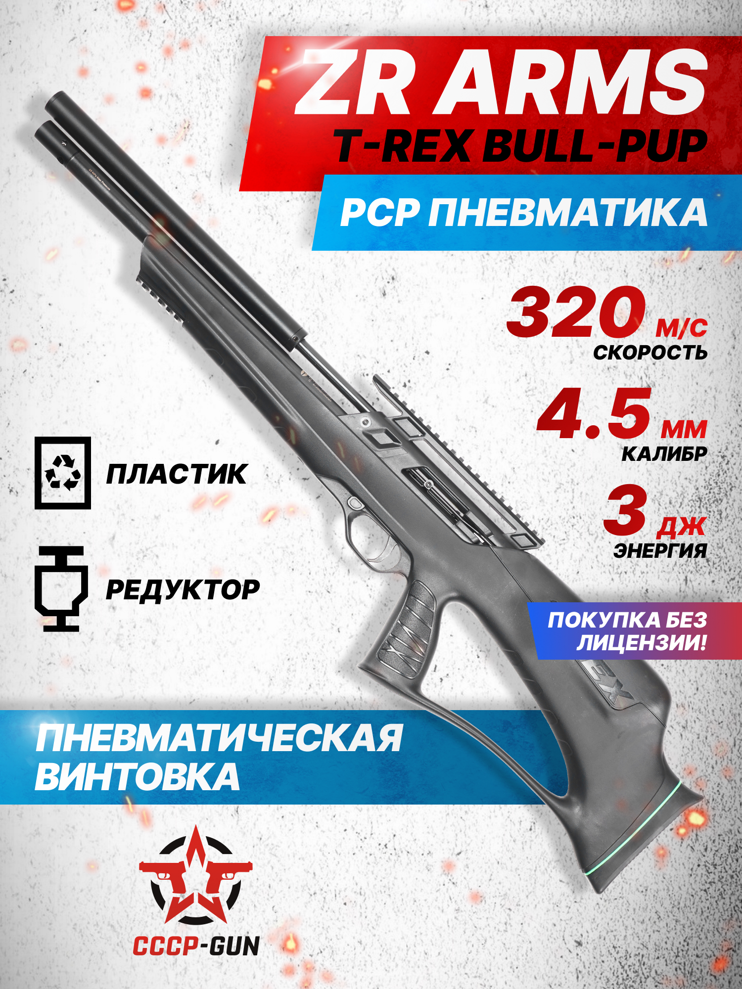 Пневматическая винтовка ZR Arms T-Rex Bull-pup 4.5 мм (пластик, ПСП)