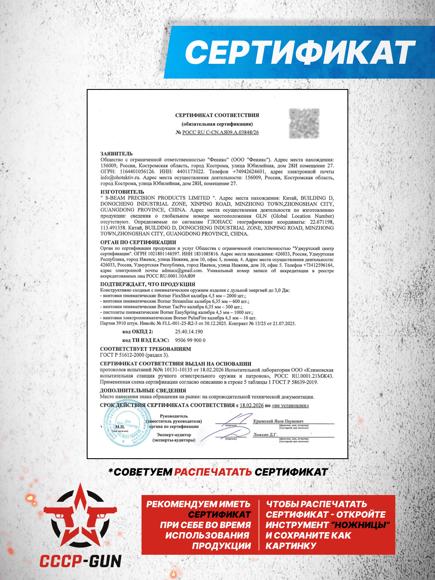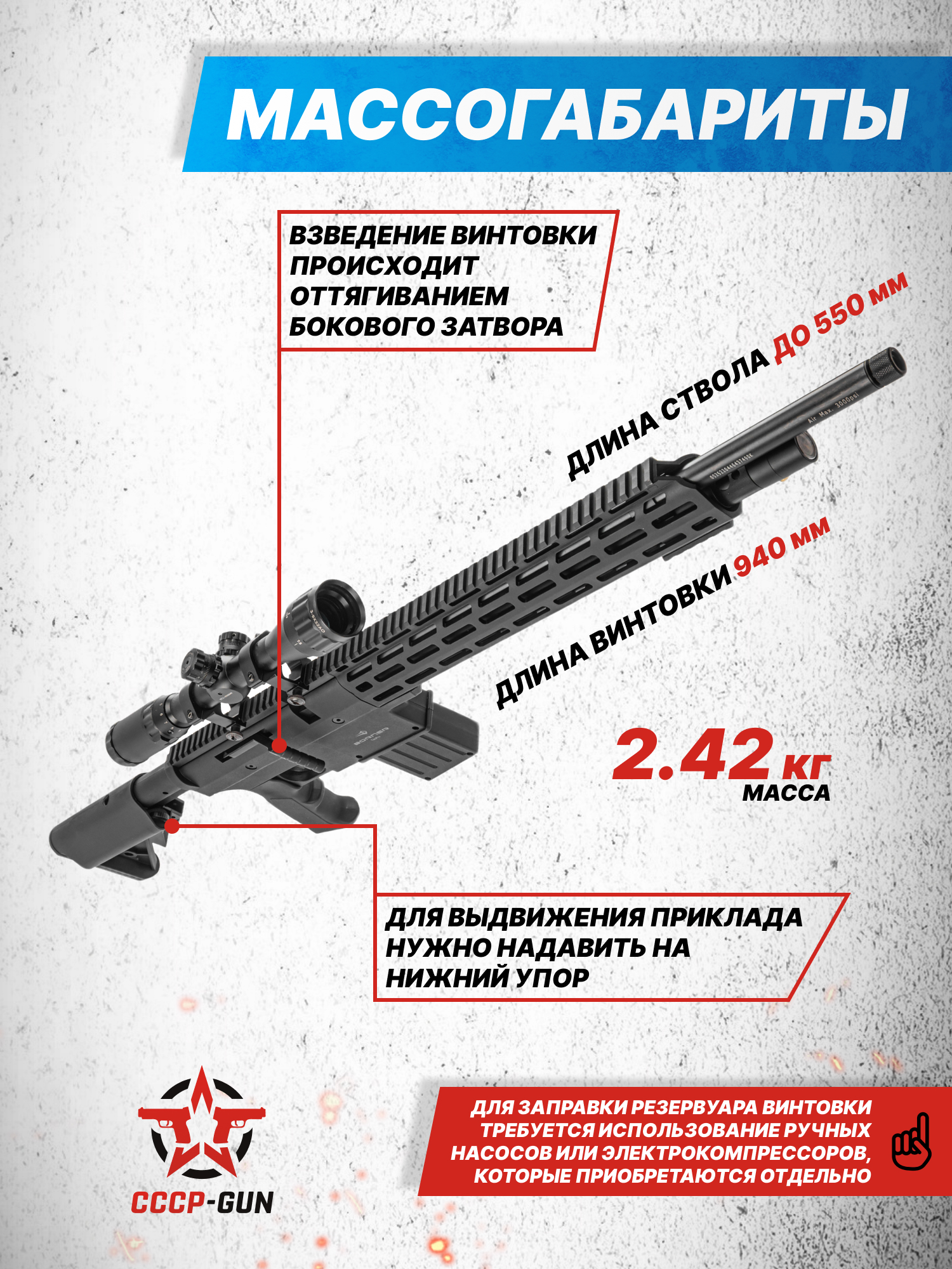 В теории возможностей винтовки достаточно для того, чтобы она могла развивать скорость до 250 метров в сек, но в версии для российского рынка выполнили ограничение дульной энергии - последняя составит менее 3 Дж. Это сделало рассматриваемый карабин доступным для приобретения совершеннолетними гражданами без необходимости лицензирования.