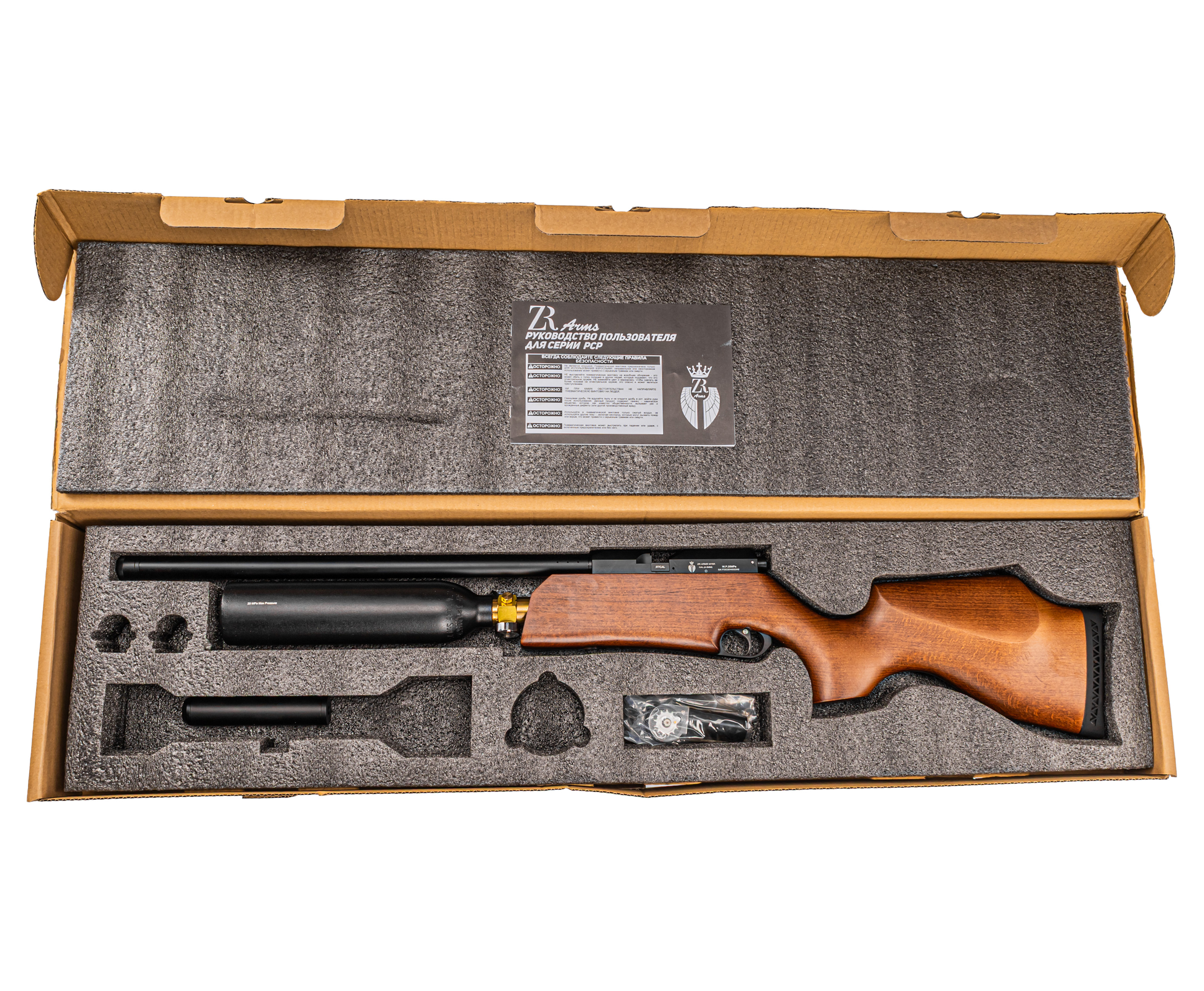 Какими бы выдающимися не были характеристики оружия ПСП типа его автономность будет зависеть от того количества воздуха, которое позволяет запасти резервуар. Наиболее успешными в этом плане считаются платформы с колбовым ресивером, вмещающим в 1.5-2 раза больше газа, чем стандартные линейные баллоны. О наличии такой пневматики в собственном ассортименте позаботилось предприятие ZR Arms.