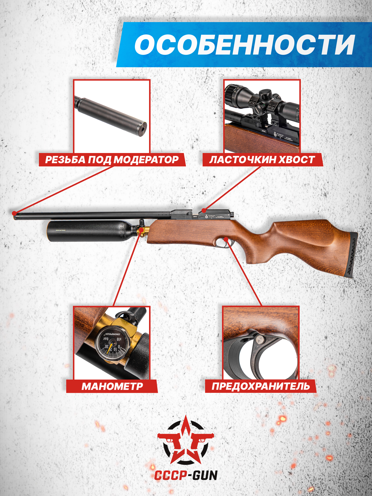 Внимание! Данная модель поставляется в разрешенной мощности для свободного приобретения на территории Российской Федерации. При этом в модели имеется возможность увеличения мощности путем замены части деталей или настройки конструкции, однако не стоит забывать о Федеральном законе «Об оружии» № 150 - ФЗ. В случае необходимости, опираясь на данный закон и руководствуясь им, возможно, потребуется получить разрешение от ЛЛР ГУ МВД России после вмешательства в конструкцию.