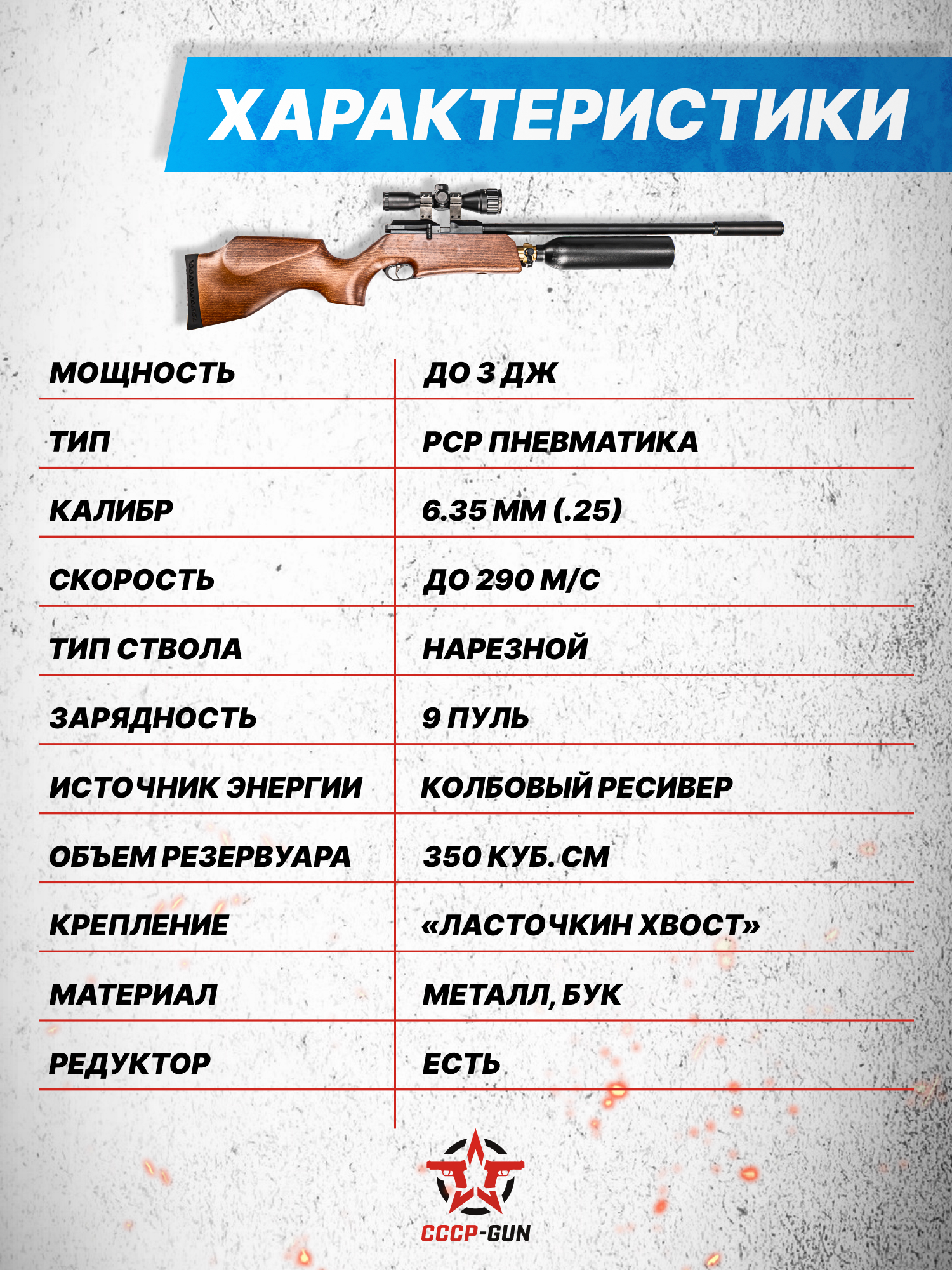 Выпускаемые заряды способны достигать скорости до 290 метров в секунду. Однако, на рынок РФ представленная пневматическая винтовка PCP 6.35 мм ЗР Армс поступает с дульной энергией, соответствующей установленному законом пределу до 3 Дж. На этом фоне для приобретения не требуется оформлять специального разрешения - достаточно достигнуть совершеннолетнего возраста.