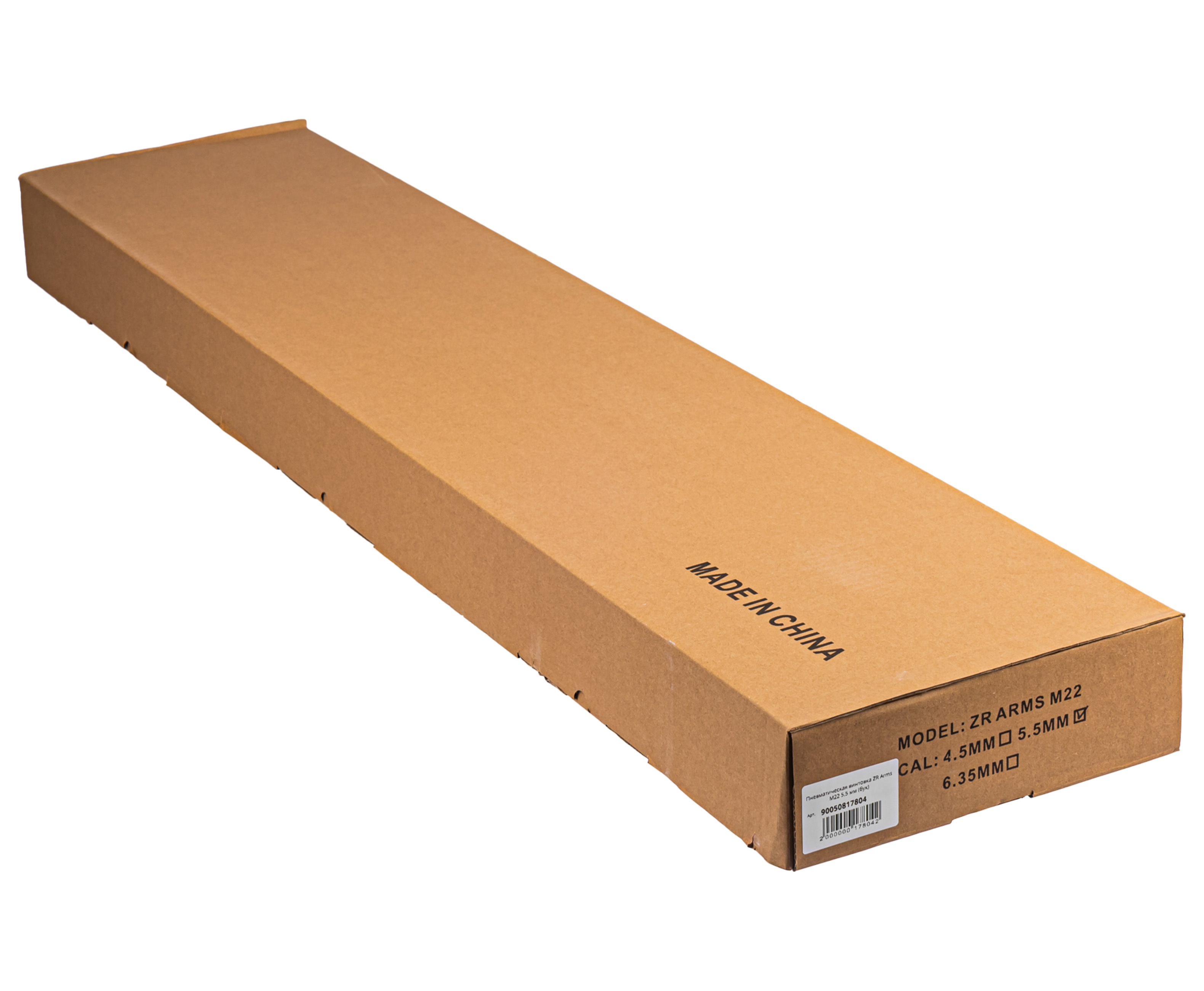 Обозреваемый экземпляр калибра 5.5 миллиметра от компании ЗР Армс применяет свинцовые пули, поскольку внутренний канал ствола нарезной. В рассматриваемом варианте изготовления металлический бланк достиг длины 550 миллиметров, когда тем временем полный размер модели составил 1115 миллиметров.