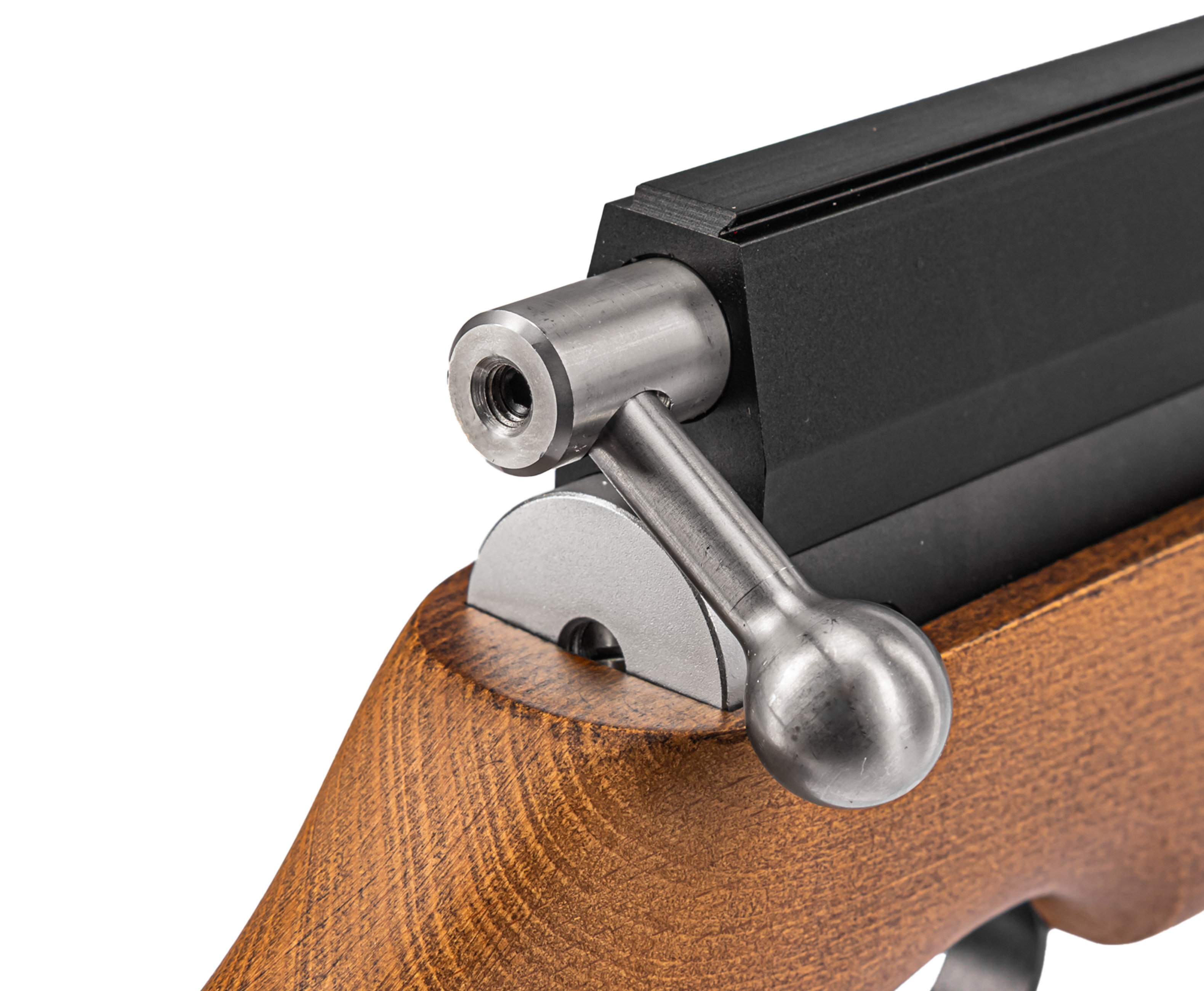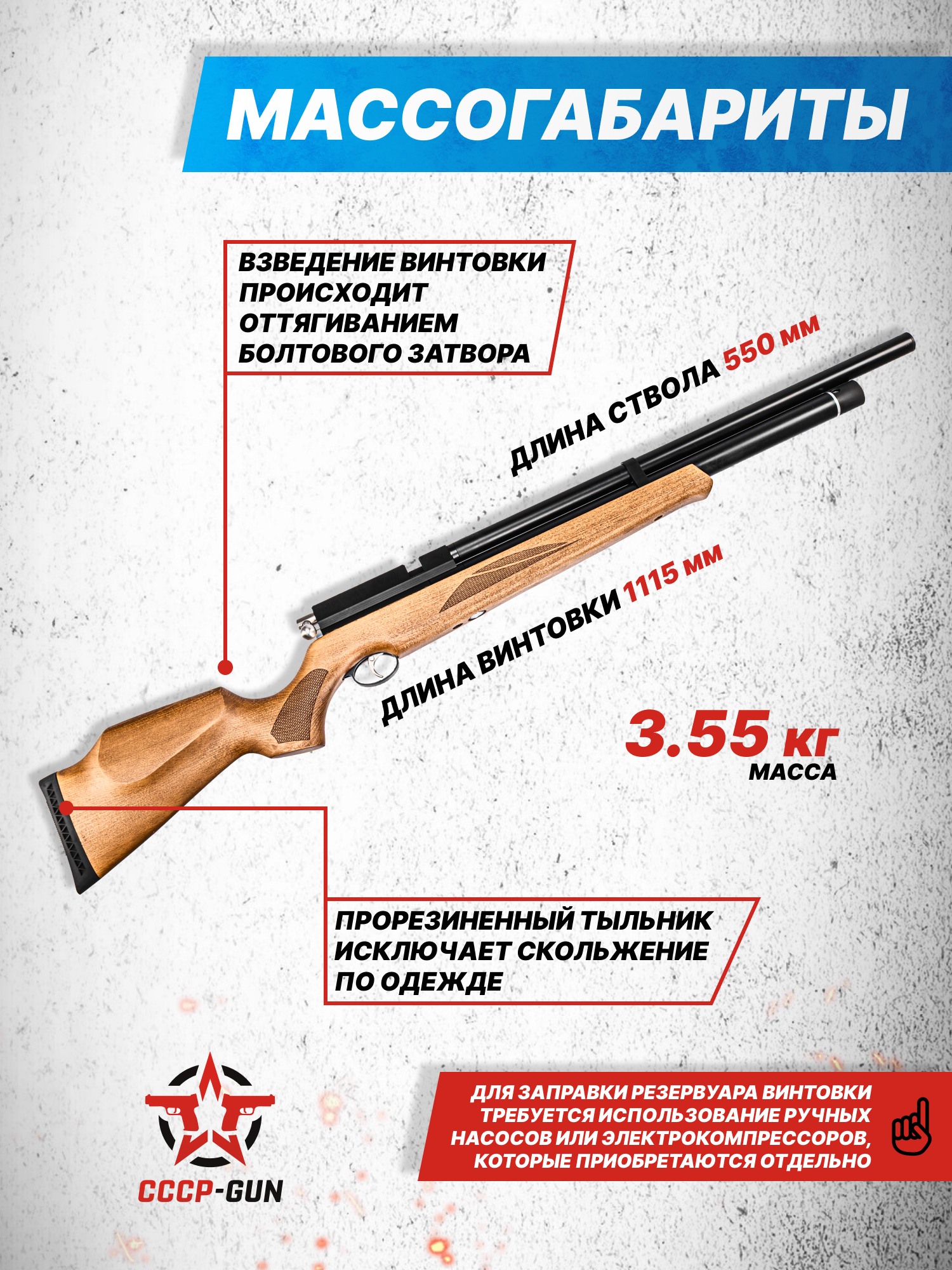 РСР винтовка 5.5 изделие предусматривает многозарядный принцип действия - магазин барабанного типа на 11 мест устанавливается в области ствольной коробки. Для взвода оружия требуется оттянуть продольно-скользящий затвор. Важно выделить, что в этот момент накопитель будет автоматически совершать вращение для подачи последующего заряда.