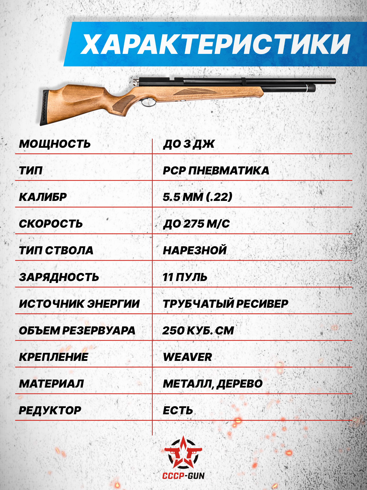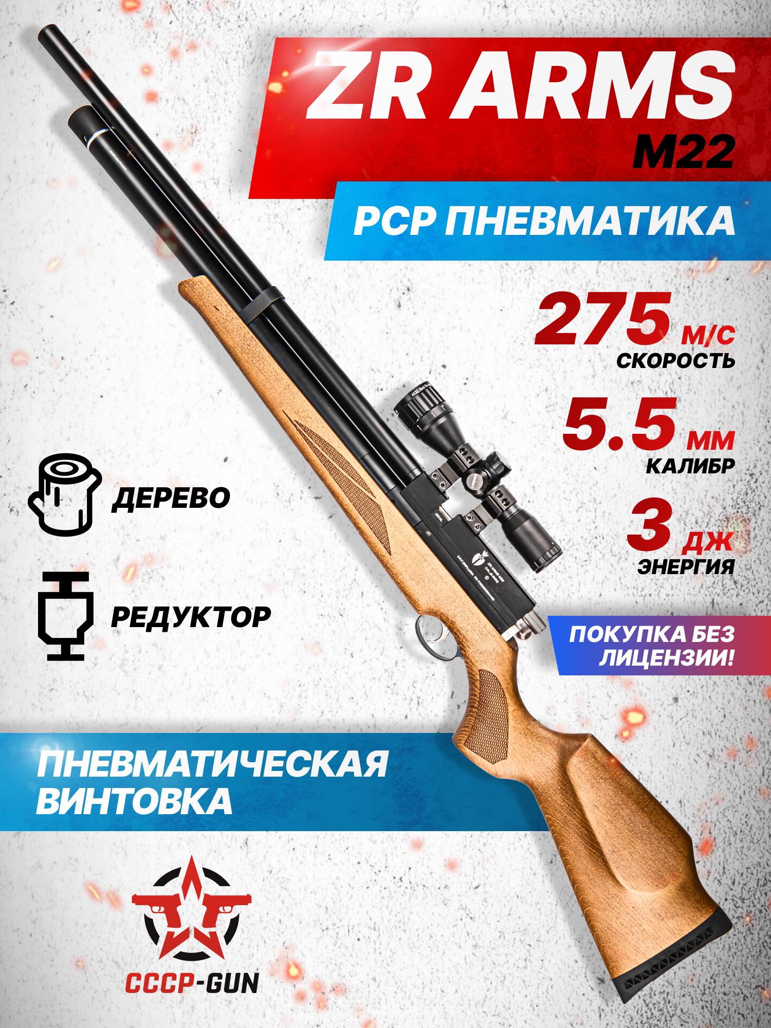 Образец серии M22 представляет собой пневматику классического внешнего вида, инженерную концепцию которой совершенствовали в направлении повышения скоростного показателя полета снаряда. В результате этот параметр достиг 275 метров в секунду. Однако в случае с российским рынком модель предусматривает ограничение дульной энергии до 3 Дж, из-за чего совершеннолетние пользователи могут приобрести эту винтовку без лицензии.