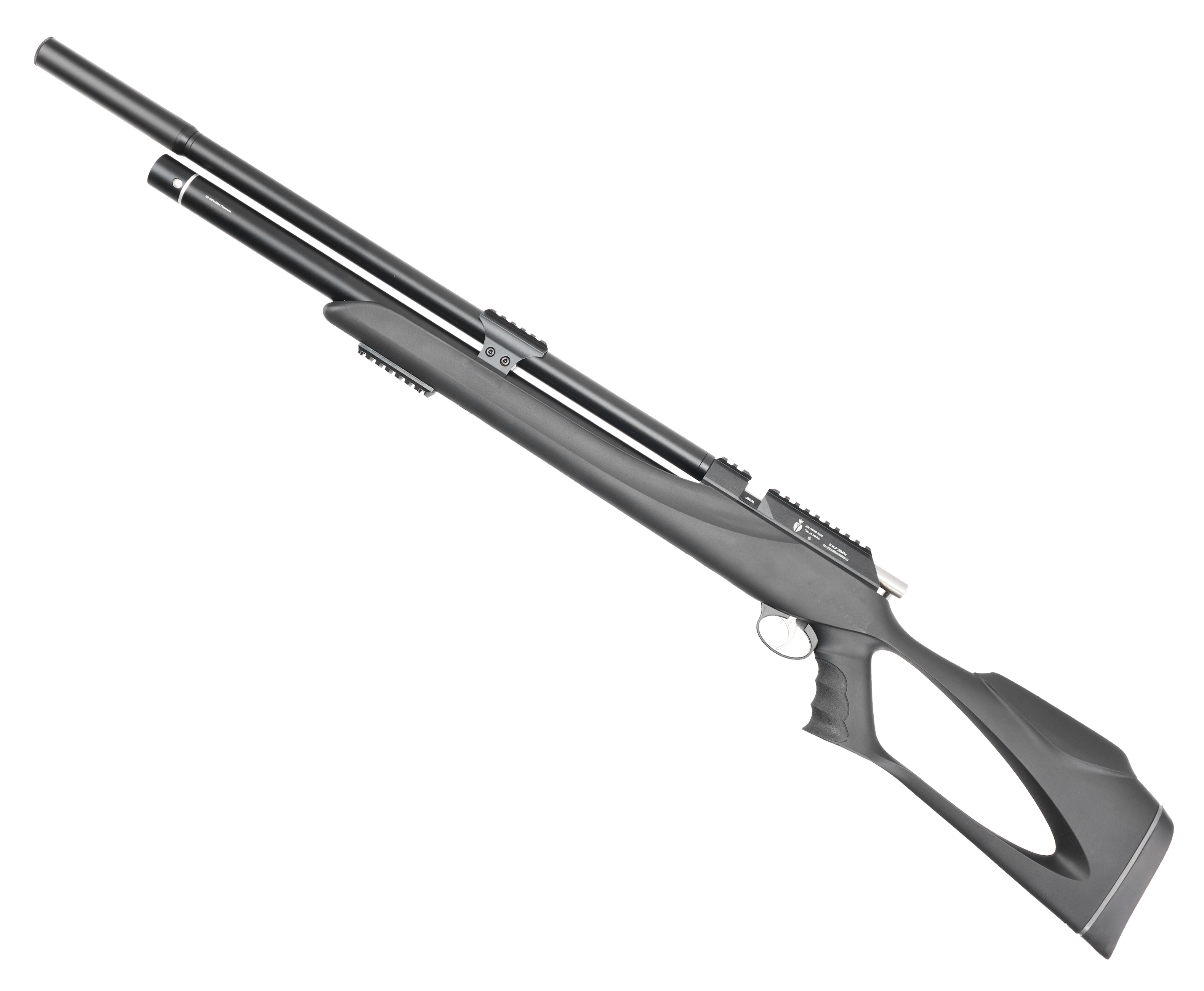 В качестве источника энергии рассматриваемый экземпляр задействует ресивер трубчатого вида объемом 245 куб. см. Воздух из этого резервуара дозировано высвобождается равными порциями благодаря встроенному редуктору, что помогает увеличить число выстрелов с одинаковой мощностью. Заправляется емкость до показателя давления в 250 Бар на интегрированном в винтовку манометре, а в качестве устройства накачки рекомендуется использовать электрический компрессор.